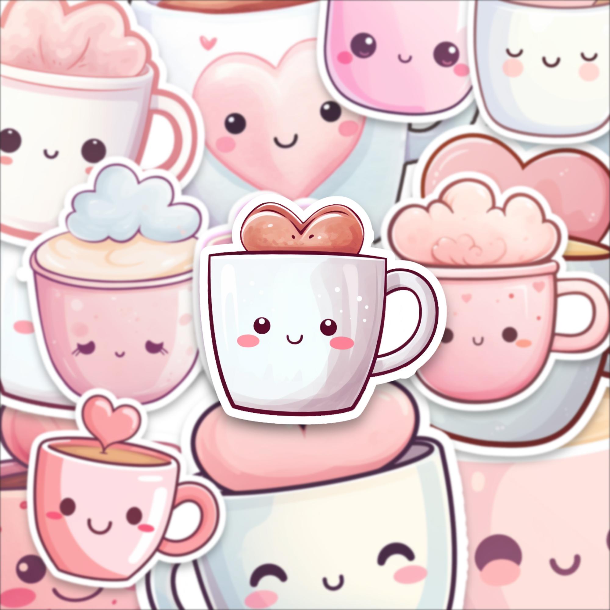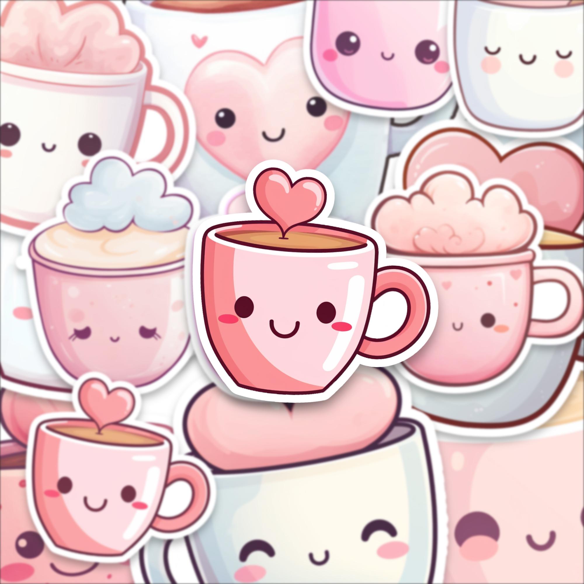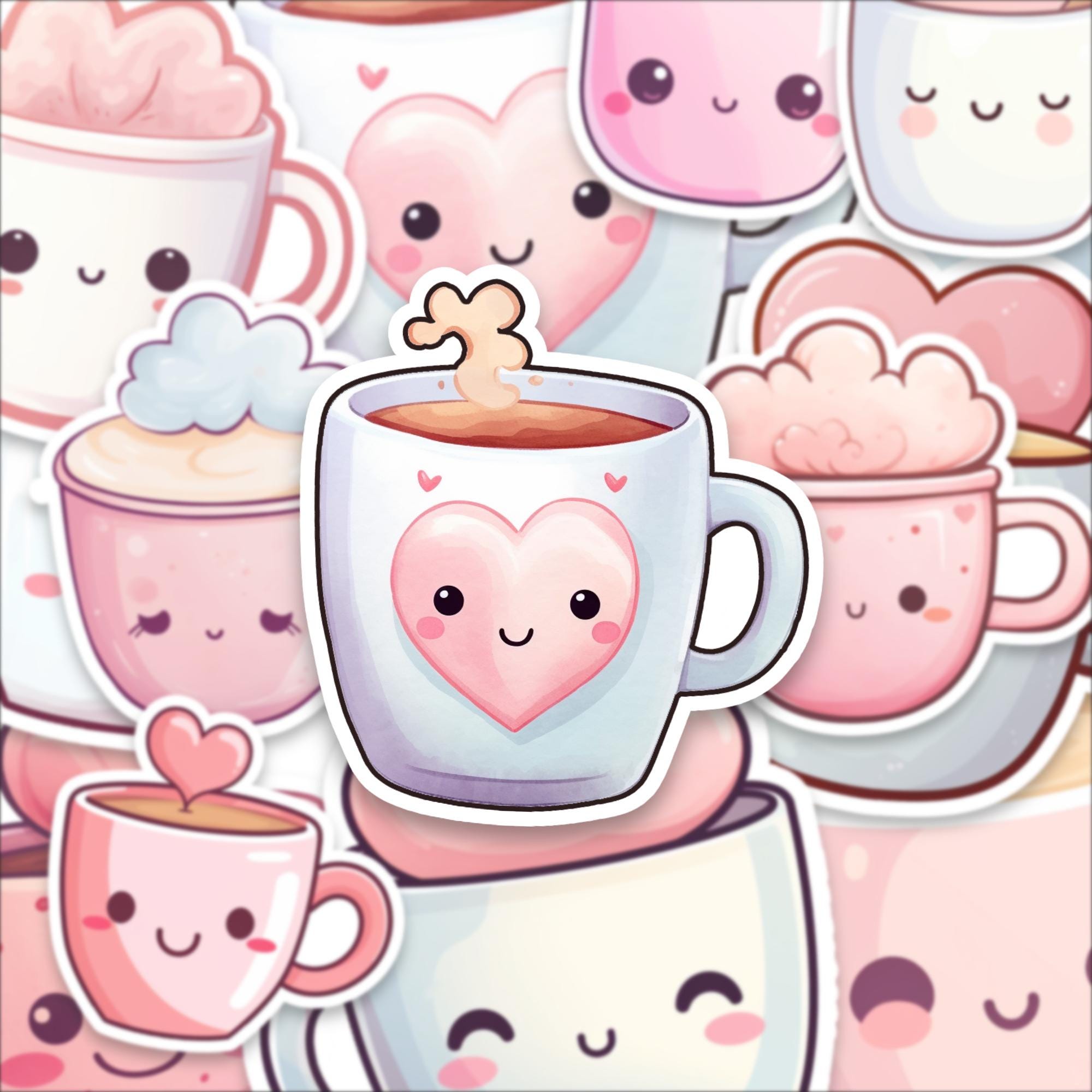 Immerse yourself in the charm of these 15-Pack Kawaii Watercolour Coffee Cup Vinyl Stickers! Each sticker's vibrant design combines the whimsy of kawaii art with the beauty of watercolour, resulting in an accessory that is as attractive as it is versatile.