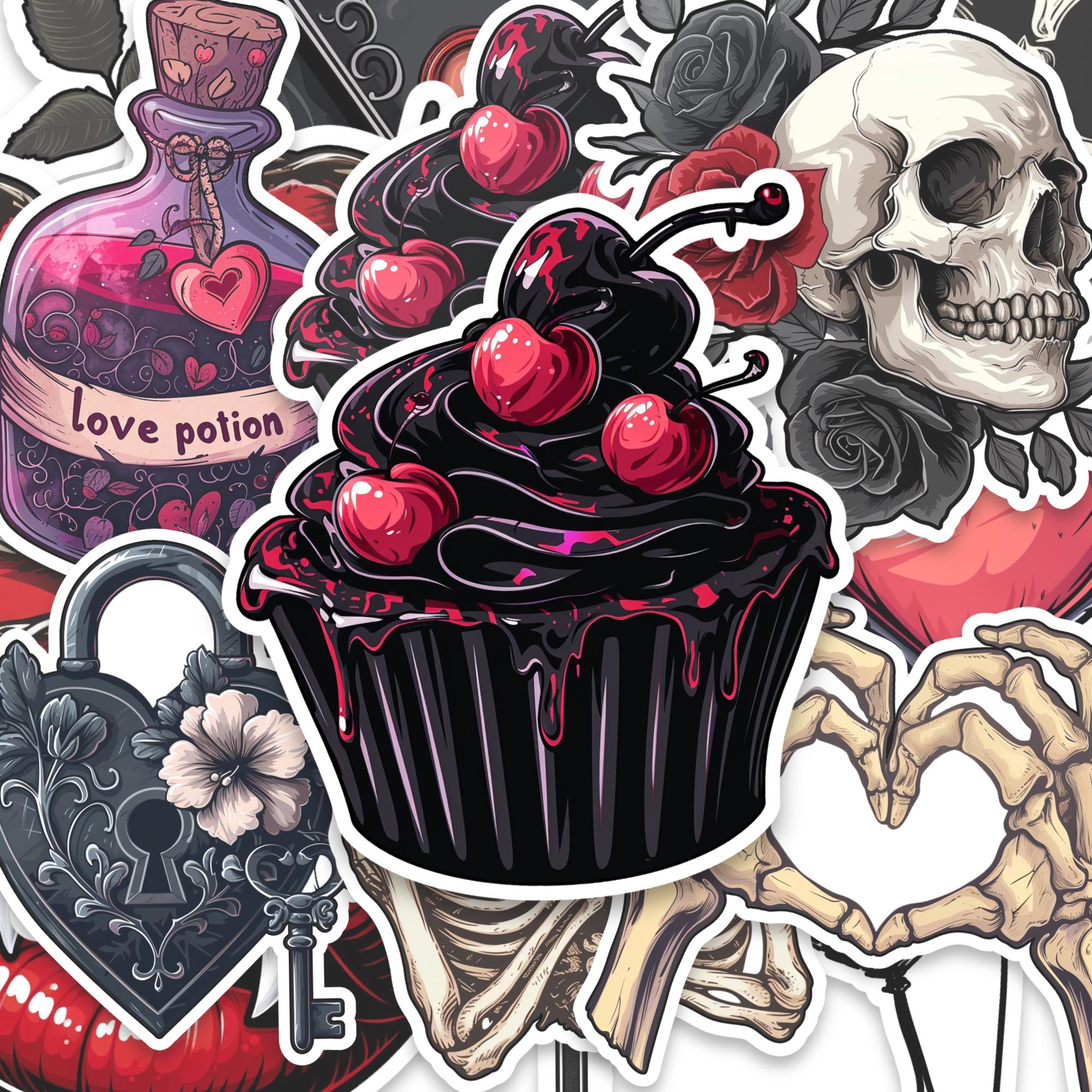 Whether you're looking to personalize your belongings or searching for a distinctive gift, these stickers are ideal for anyone who adores the gothic or emo aesthetic. The pack includes a variety of sizes and designs, offering versatility and a wide range of creative possibilities. Made with high-quality materials, these stickers are durable, easy to apply, and leave no residue when removed.