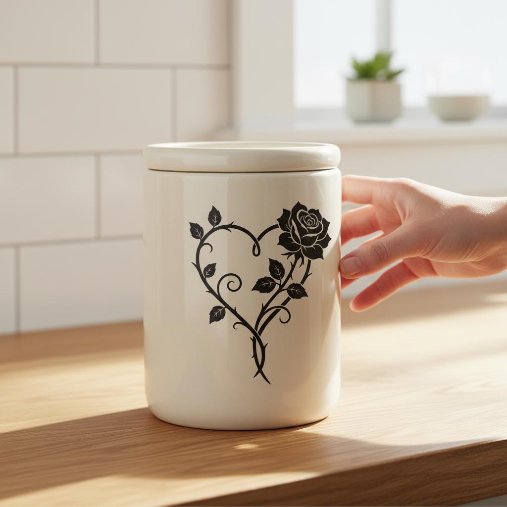 Express your style with this rose heart vinyl decal – a romantic twist of vine and bloom forming a timeless heart. Available in multiple vibrant colors, this gothic-inspired floral design adds emotion and elegance to any surface — from your journal to your car window.