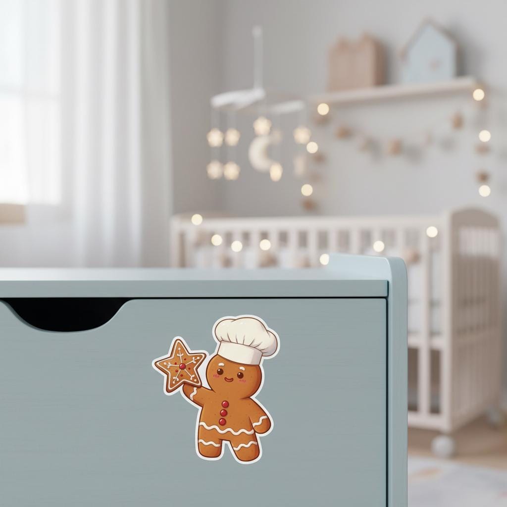 Meet your new favorite holiday helper! This adorable Gingerbread Star Baker is bursting with cheer, ready to sprinkle a little extra joy onto your everyday items. With his crisp chef's hat and perfectly decorated star cookie, he's a sweet reminder of festive baking and cozy moments.