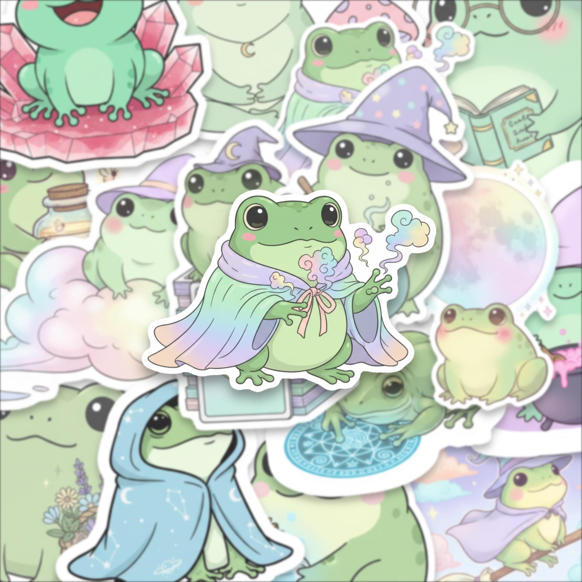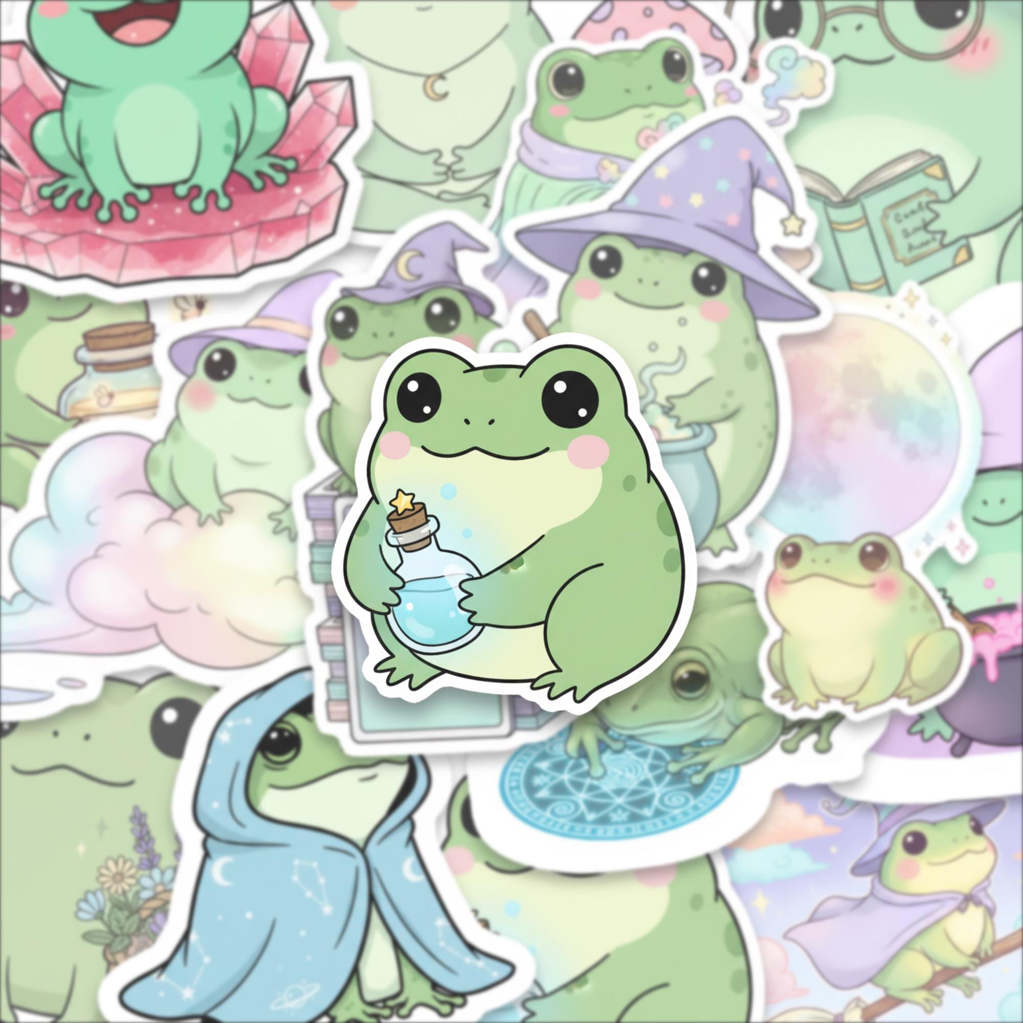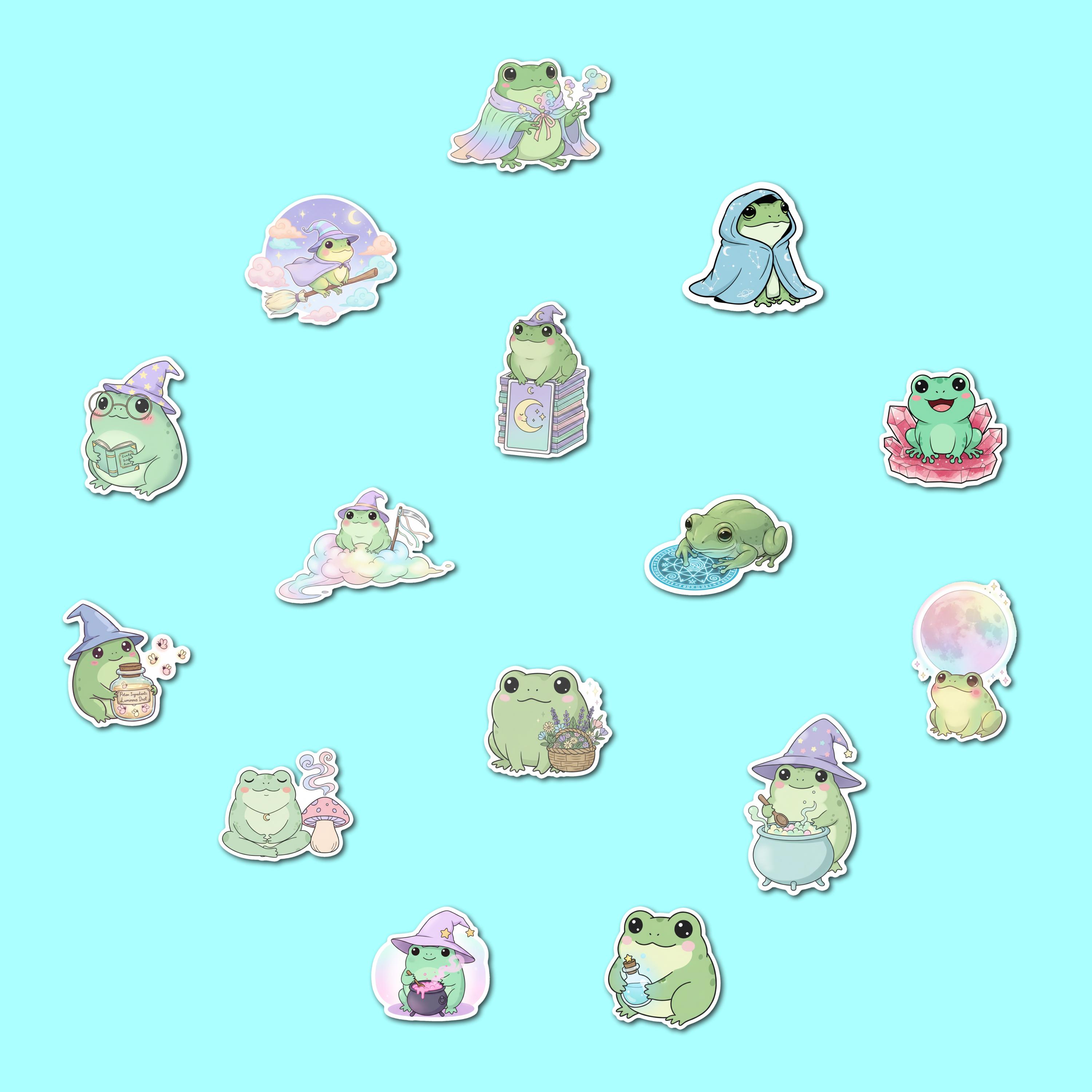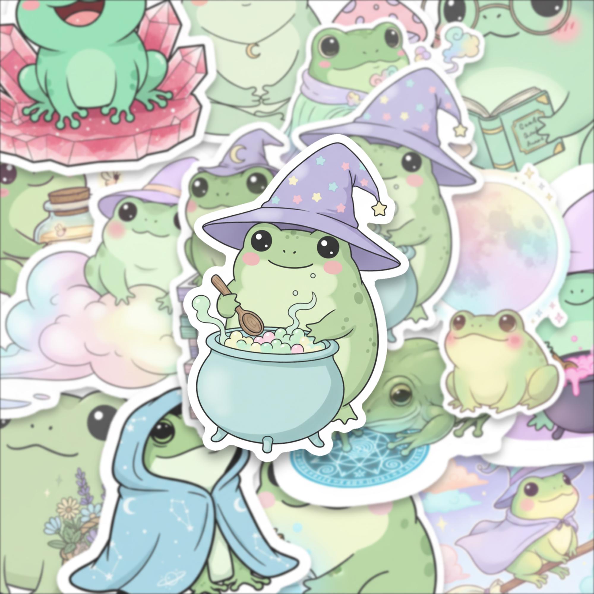 Bring joy, whimsy, and a sprinkle of magic to your everyday with this Witchy Frog Sticker Pack, featuring 15 adorable spell-casting frogs in dreamy pastel scenes. These kawaii-style amphibians are perfect for journals, laptop decor, water bottles, and enchanted gift-giving.