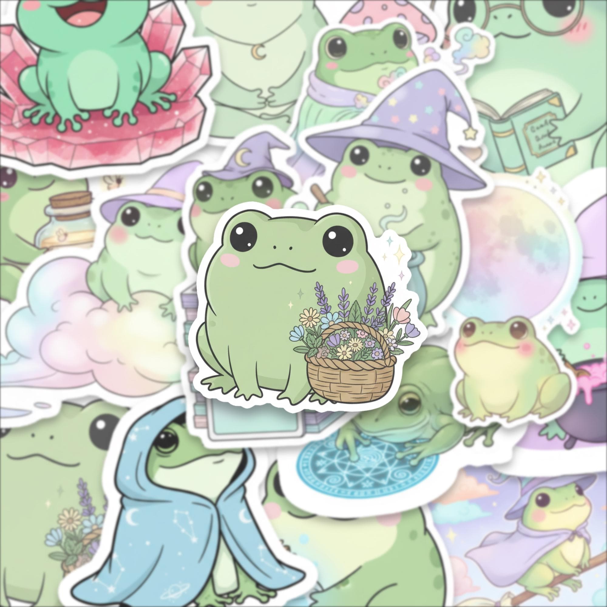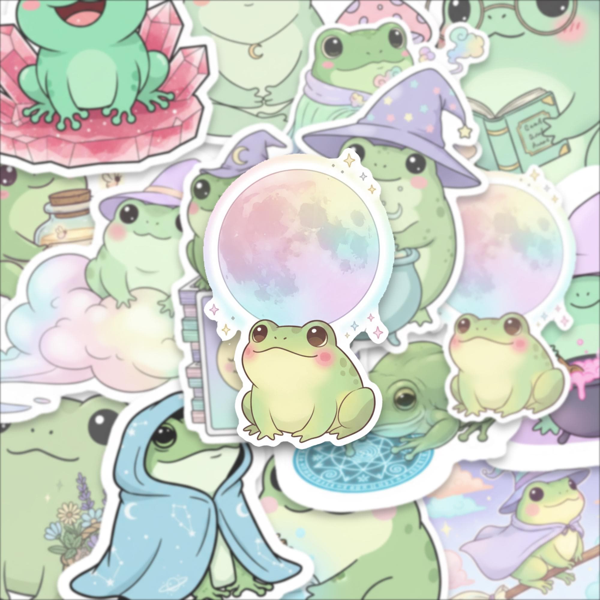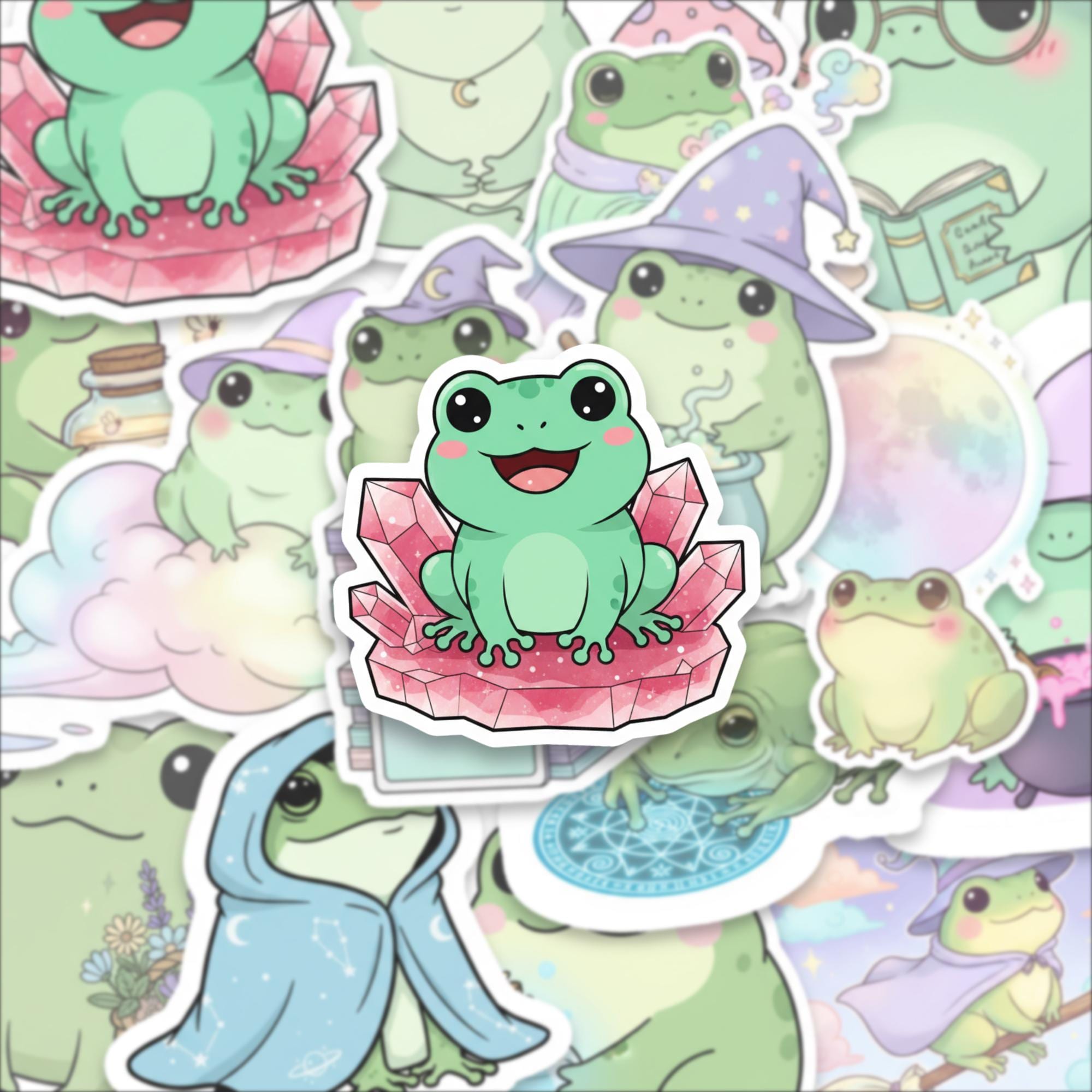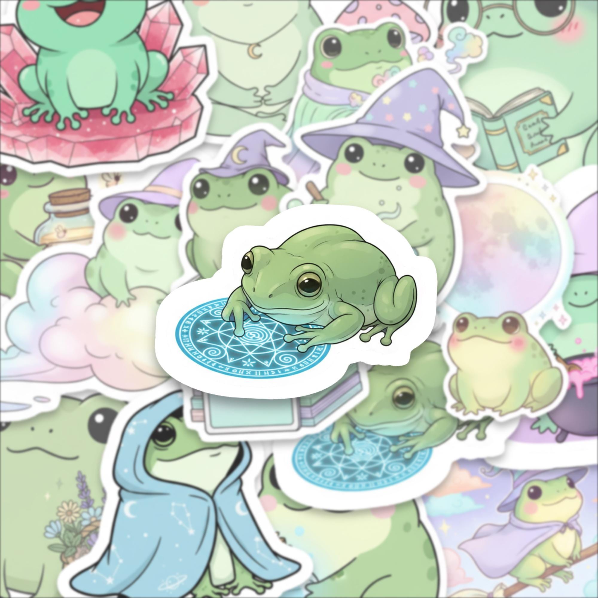 Bring joy, whimsy, and a sprinkle of magic to your everyday with this Witchy Frog Sticker Pack, featuring 15 adorable spell-casting frogs in dreamy pastel scenes. These kawaii-style amphibians are perfect for journals, laptop decor, water bottles, and enchanted gift-giving.