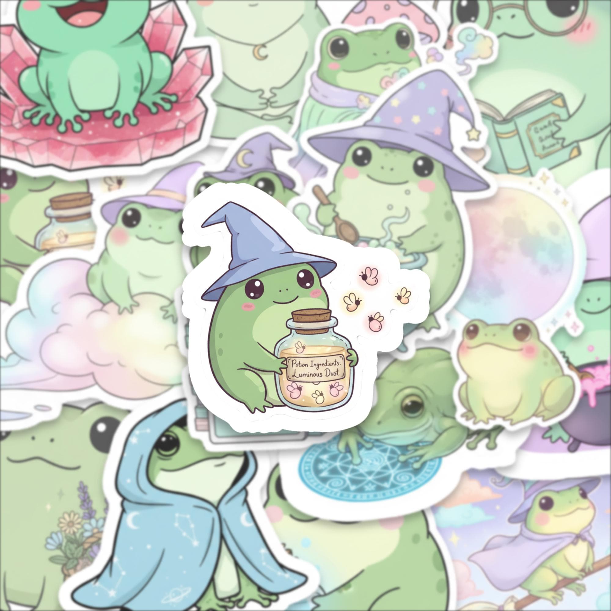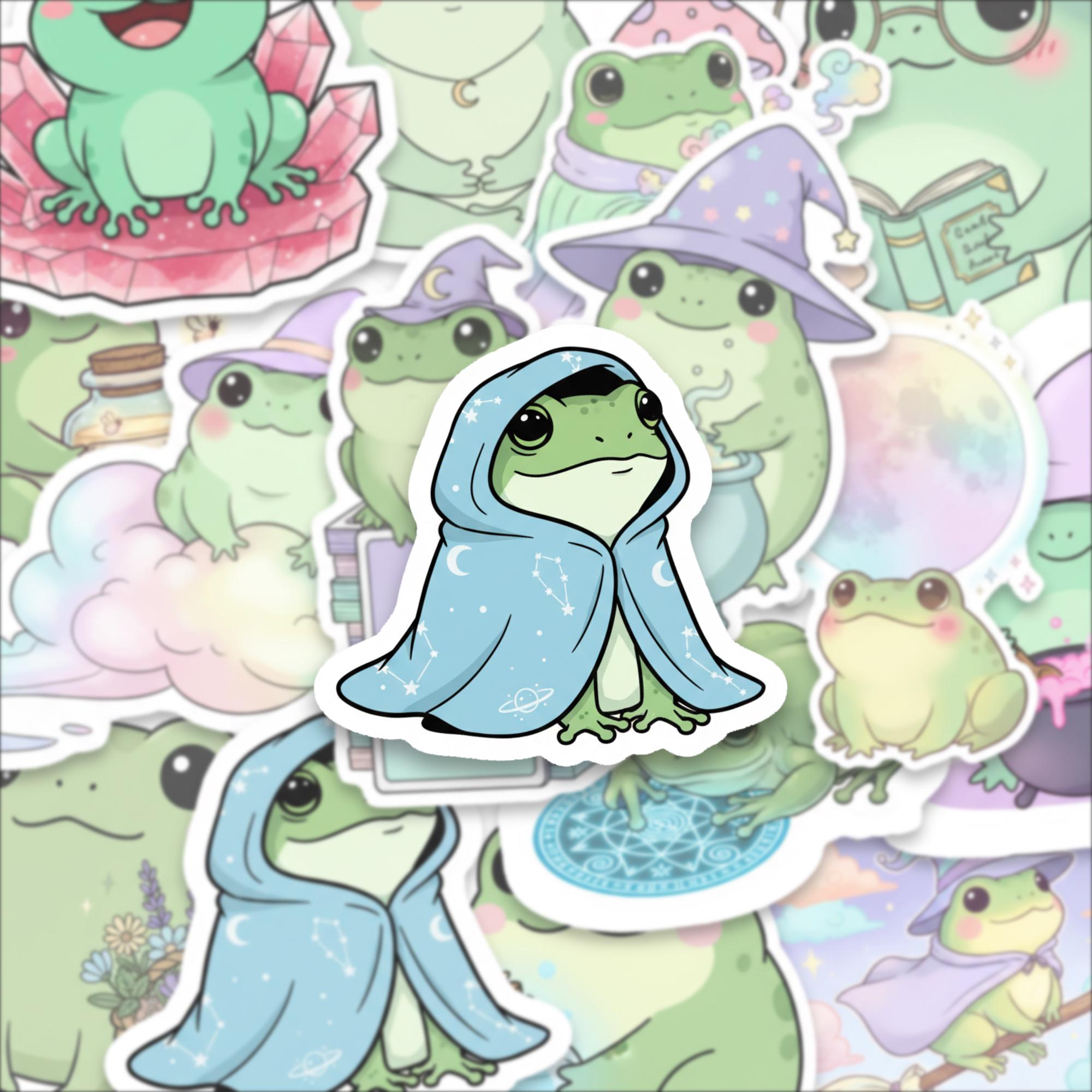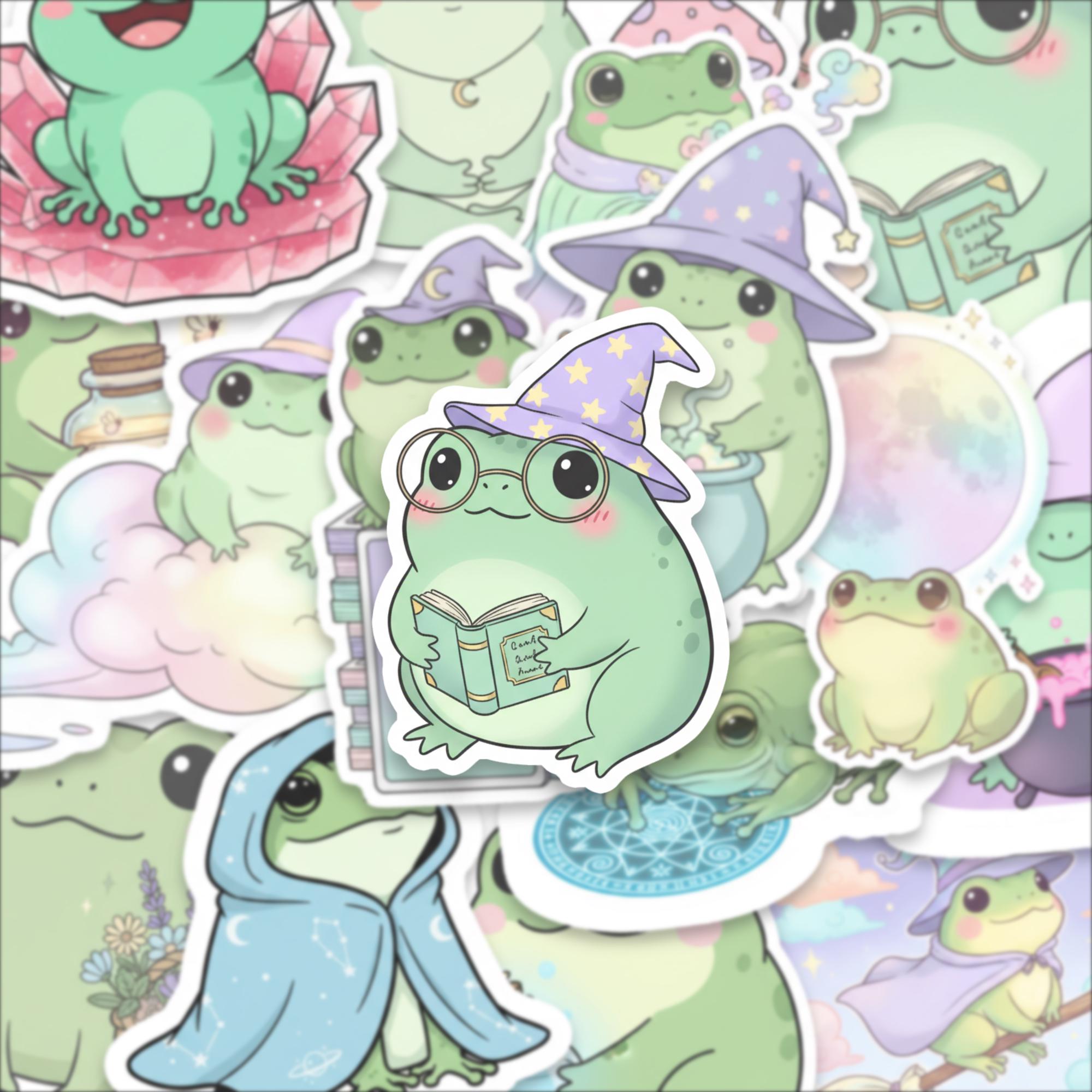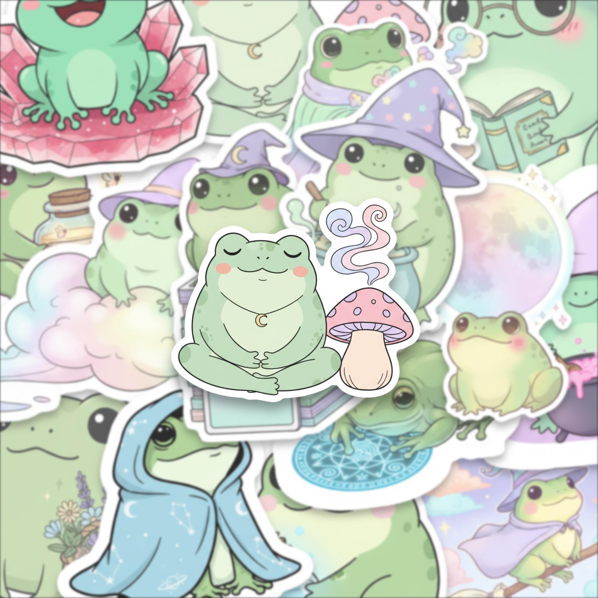 Each frog has its own personality — whether it's a bookish wizard frog or a crystal meditating toad — this set is pure serotonin in sticker form. Printed on high-quality, waterproof vinyl, they’re durable, vibrant, and ready to spark smiles.