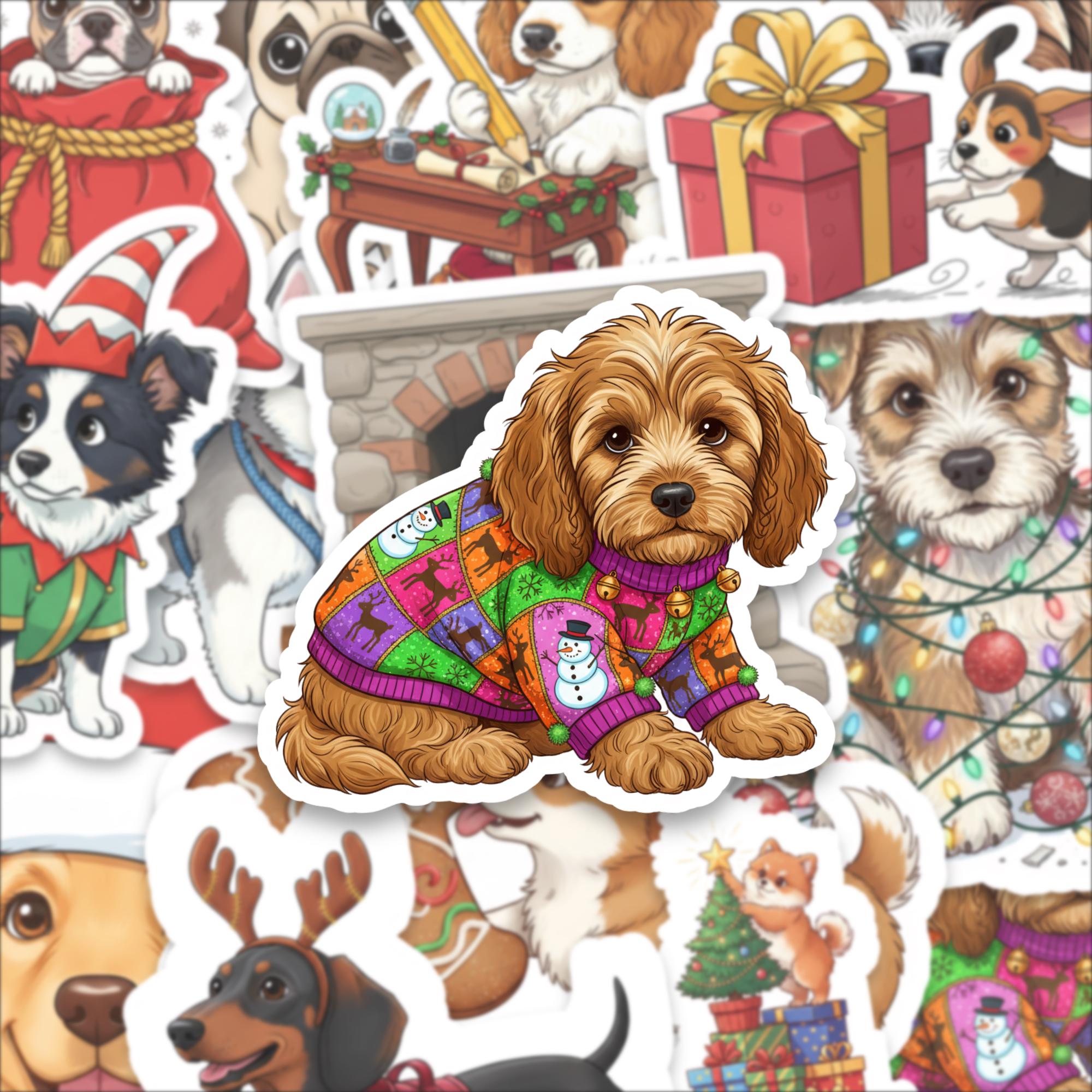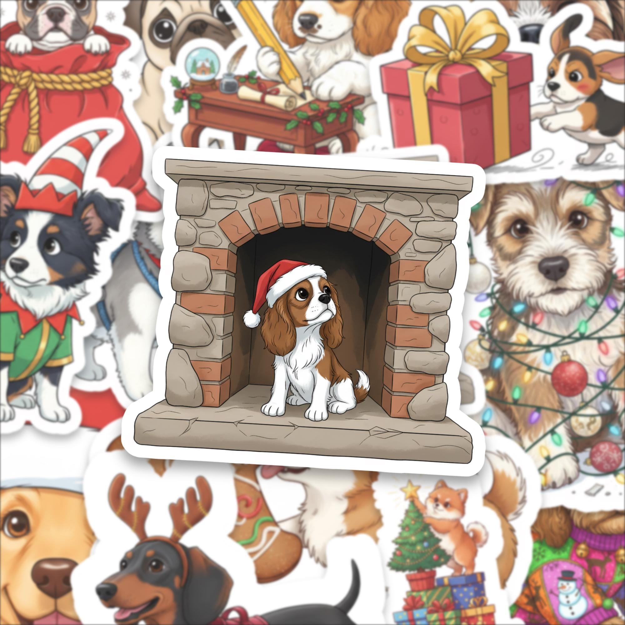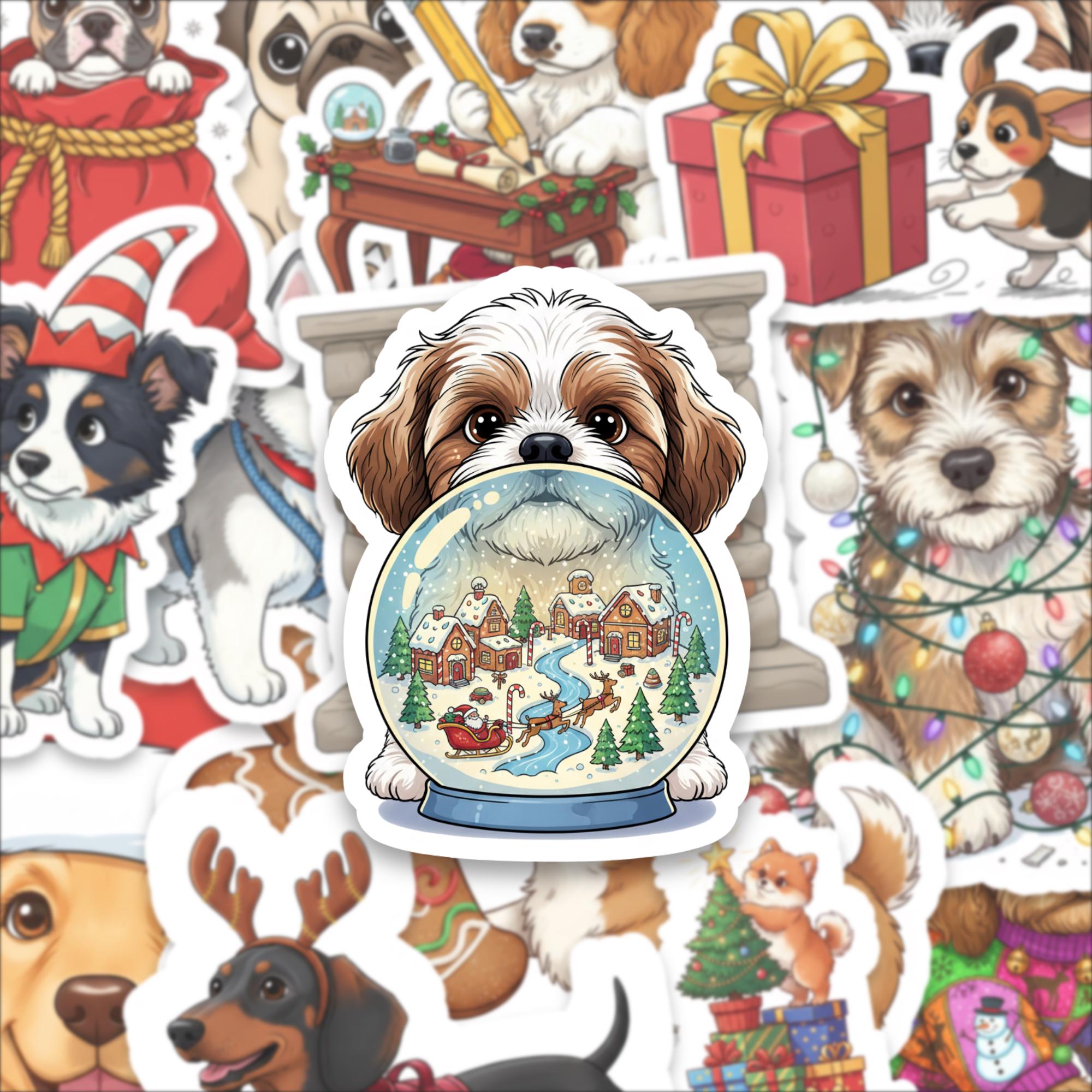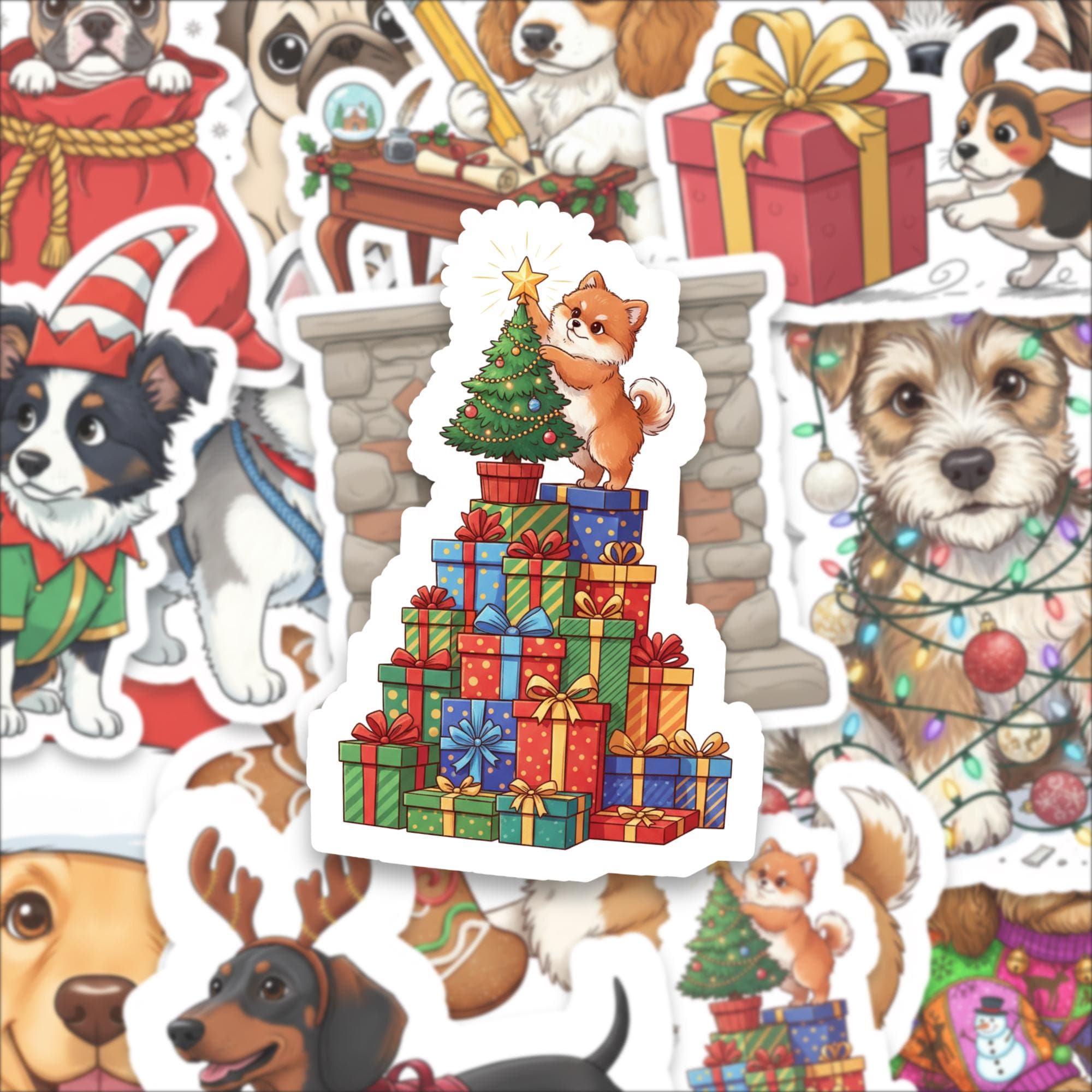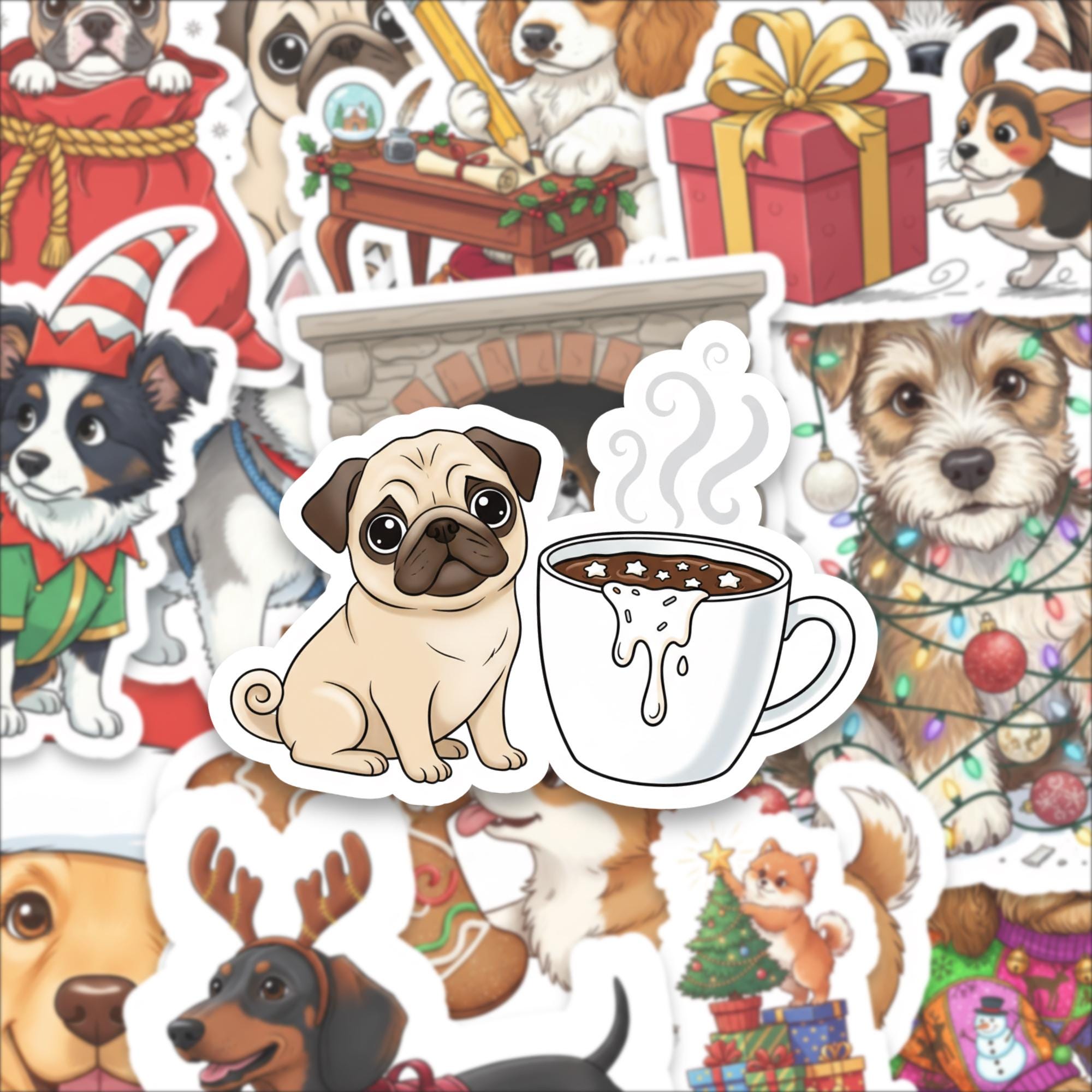Bring home pure holiday joy with this Christmas dog sticker pack — a charming 15-piece collection of illustrated puppy stickers designed to brighten planners, gifts, journals, laptops, and festive décor. Each dog is captured in adorable holiday scenes, from twinkling lights to cozy fireplaces, wrapping presents, baking cookies, and celebrating the magic of the season.