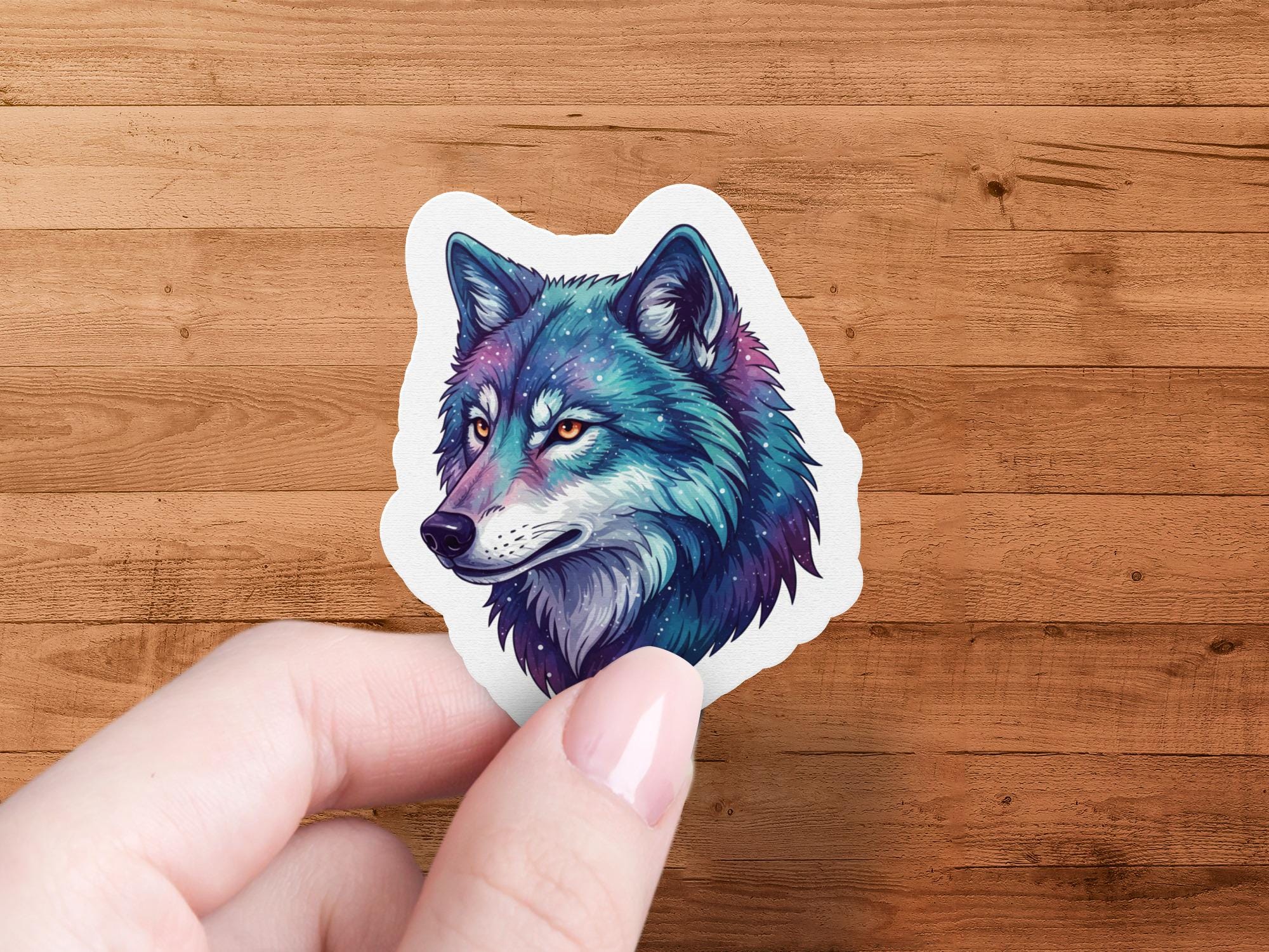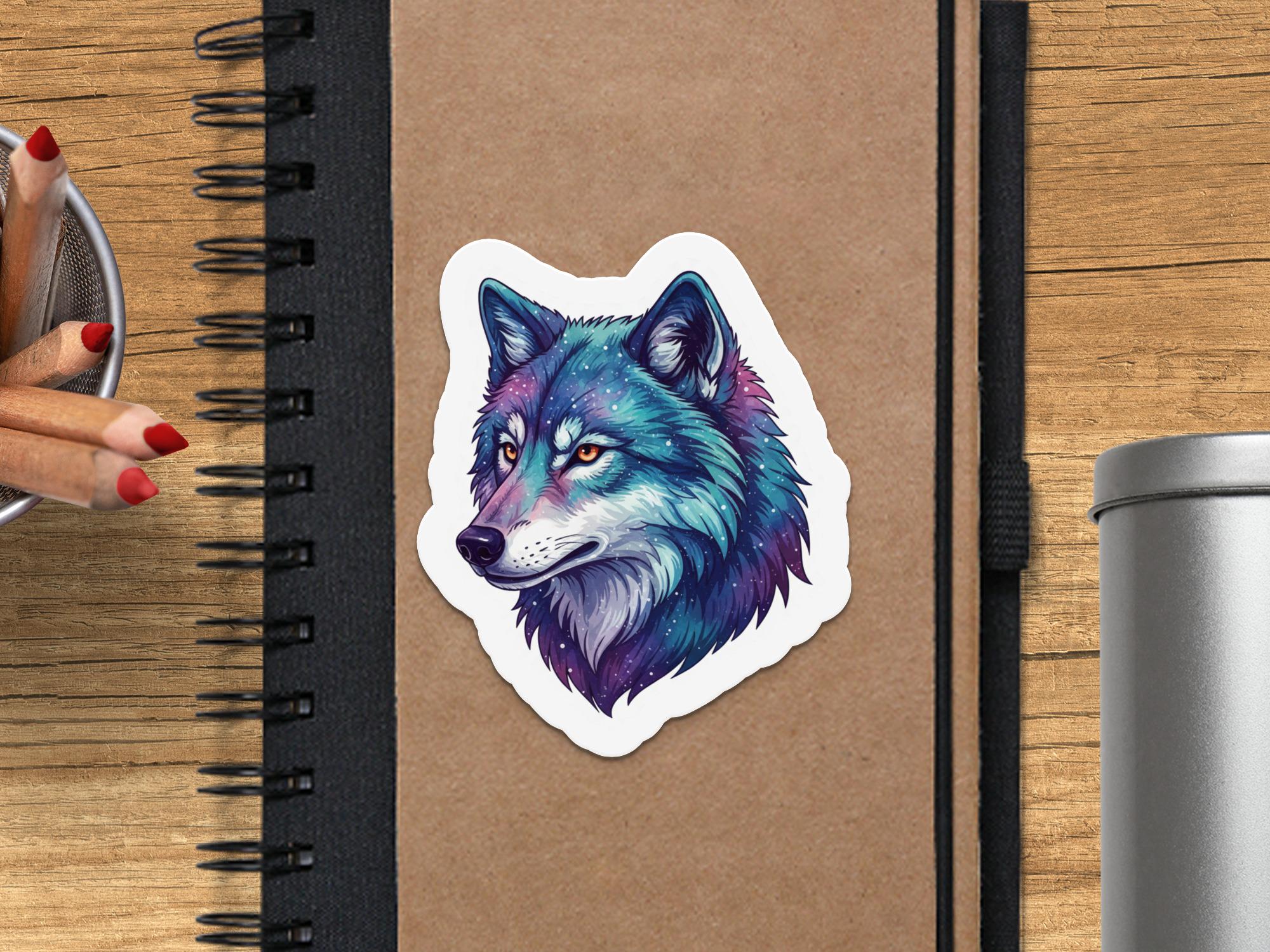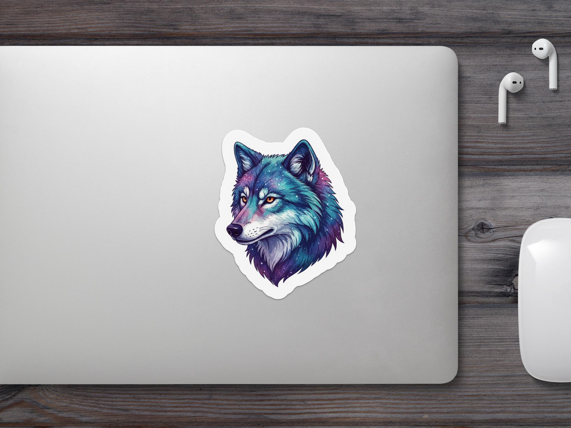 Add a touch of cosmic wonder to your belongings with this stunning Galaxy Wolf Sticker. Featuring a majestic wolf head filled with stars and nebulae, this sticker is perfect for anyone who loves animals, space, or fantasy art. It's a great way to personalize your laptop, water bottle, phone case, or any other smooth surface.
