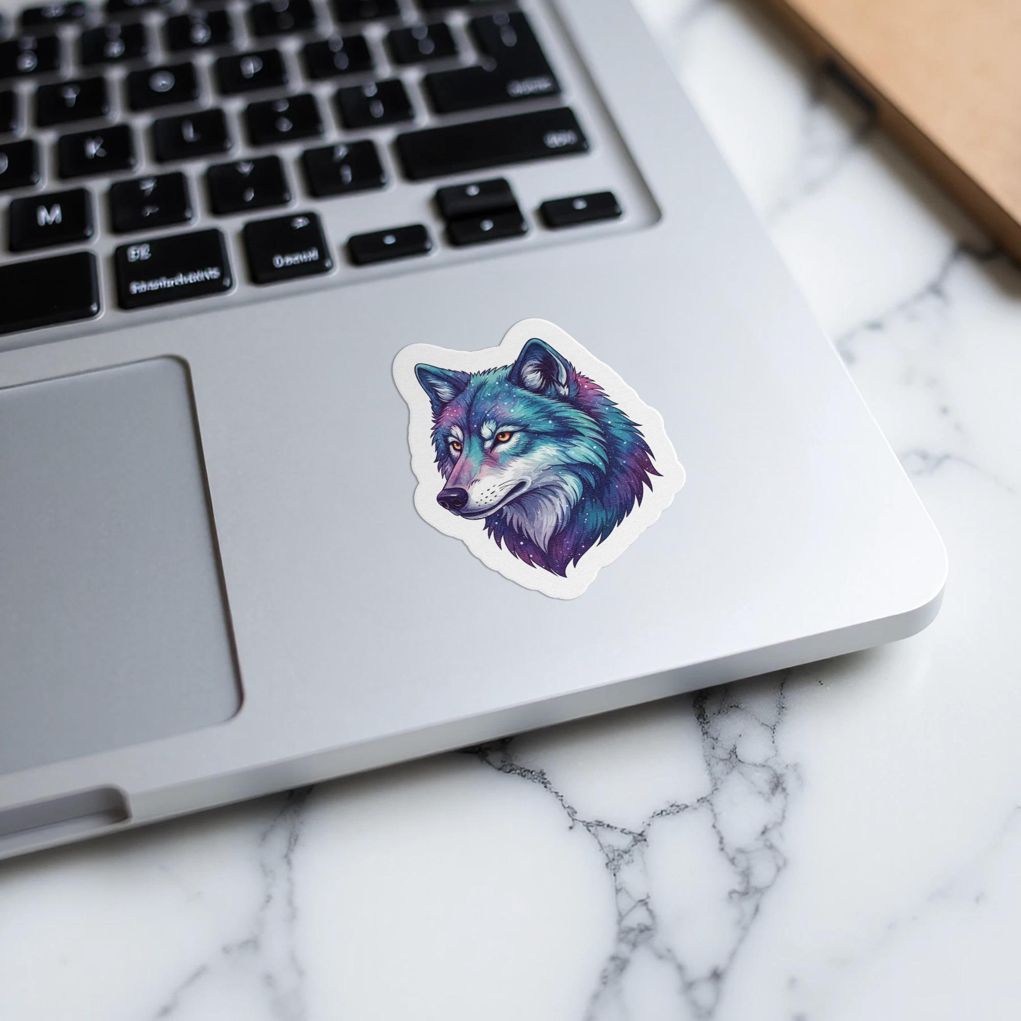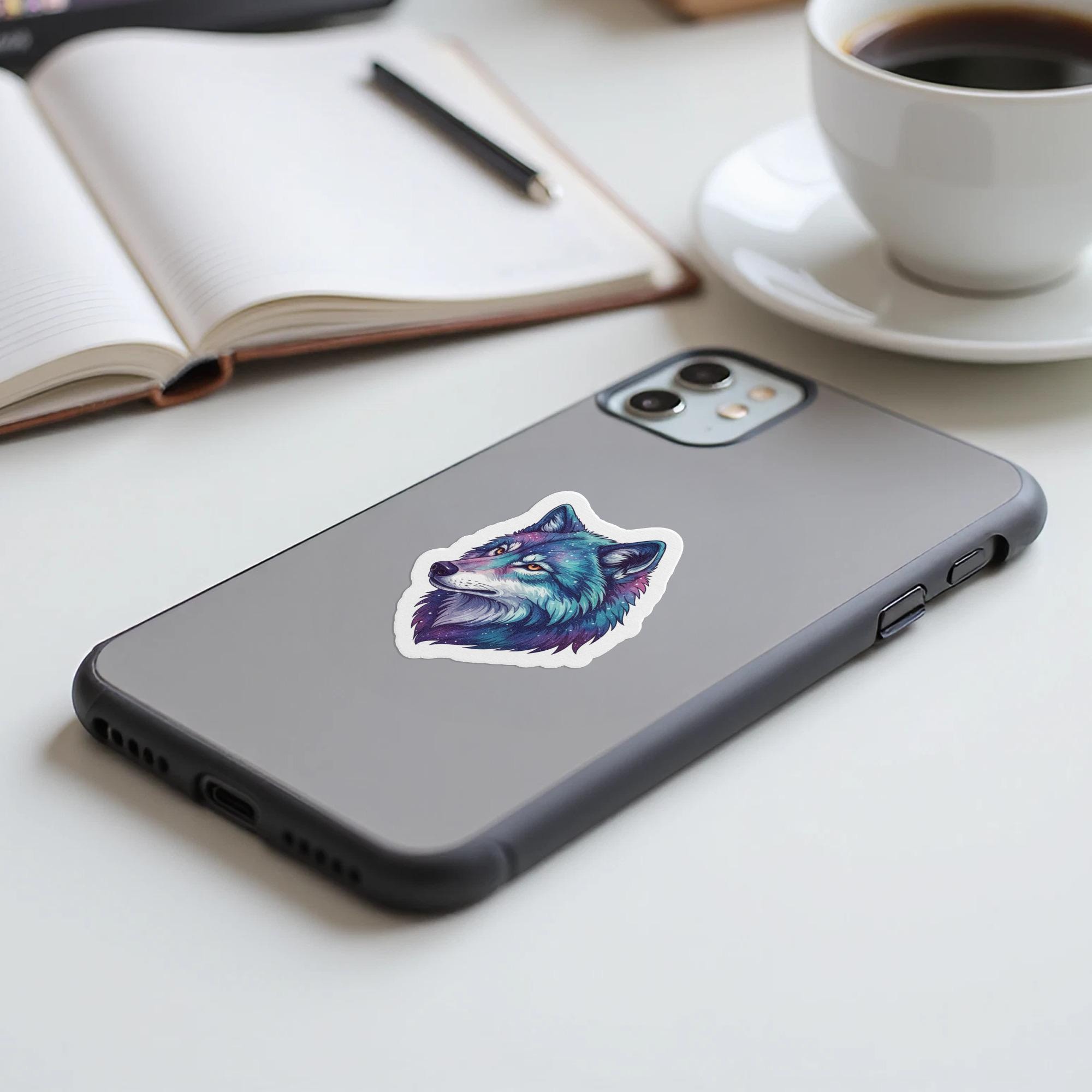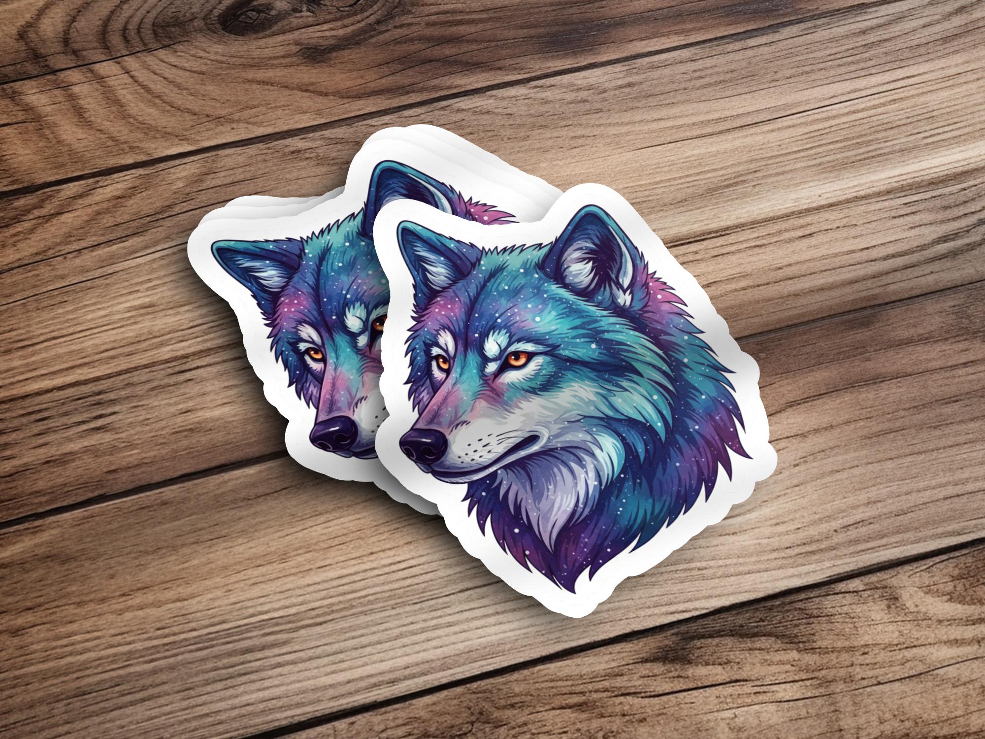 Add a touch of cosmic wonder to your belongings with this stunning Galaxy Wolf Sticker. Featuring a majestic wolf head filled with stars and nebulae, this sticker is perfect for anyone who loves animals, space, or fantasy art. It's a great way to personalize your laptop, water bottle, phone case, or any other smooth surface.