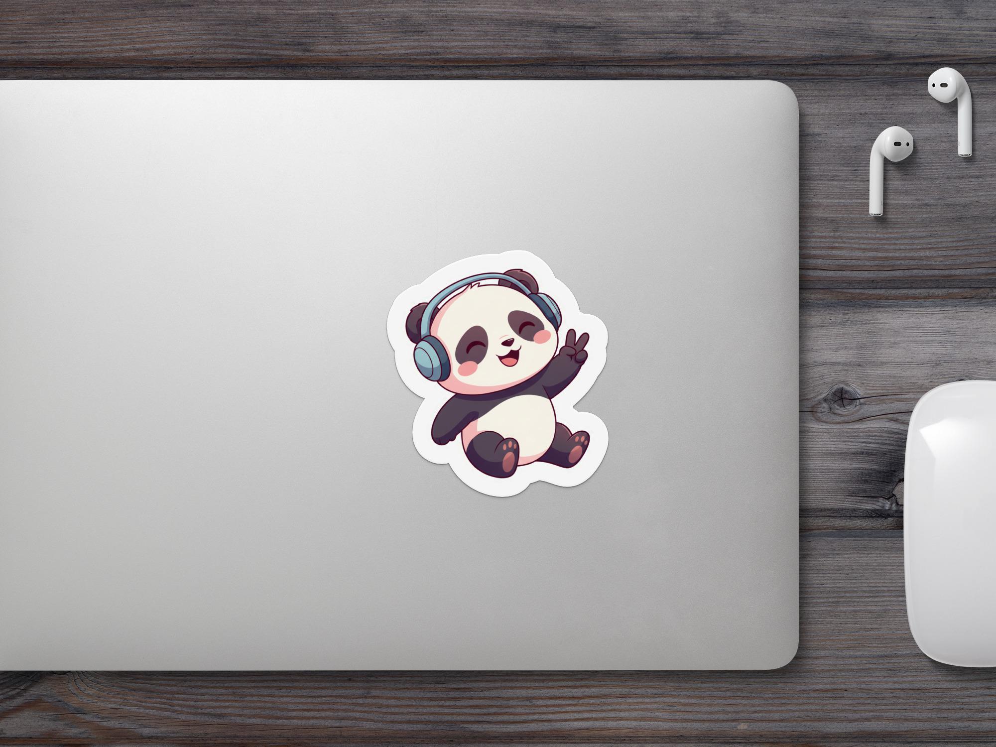 This glossy panda headphones vinyl die cut sticker brings instant joy to your laptop, water bottle, journal or tablet. The happy little panda, eyes closed and vibing with big headphones on, feels like a tiny reminder to relax, play your music and enjoy the moment.