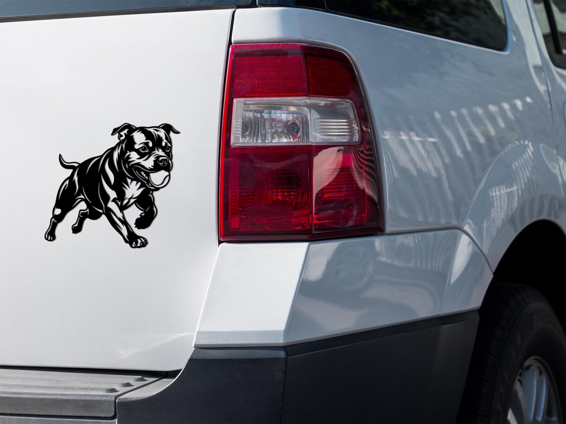 Bring bold personality to your space with this Staffordshire Bull Terrier vinyl decal, crafted in a crisp silhouette style that celebrates strength, loyalty, and charm. The durable adhesive vinyl gives you a clean, professional finish—perfect for car windows, laptops, tumblers, water bottles, or any smooth surface.