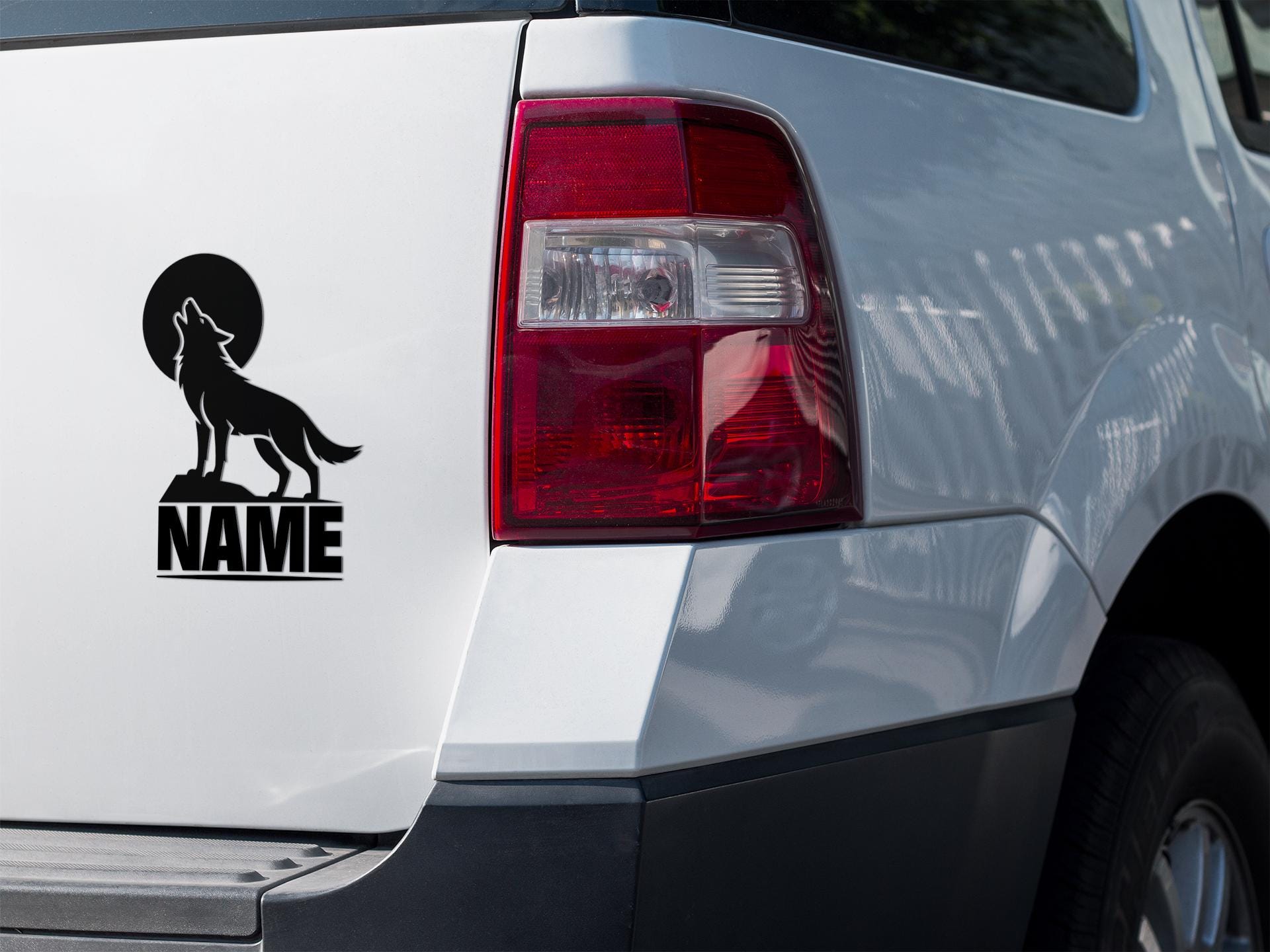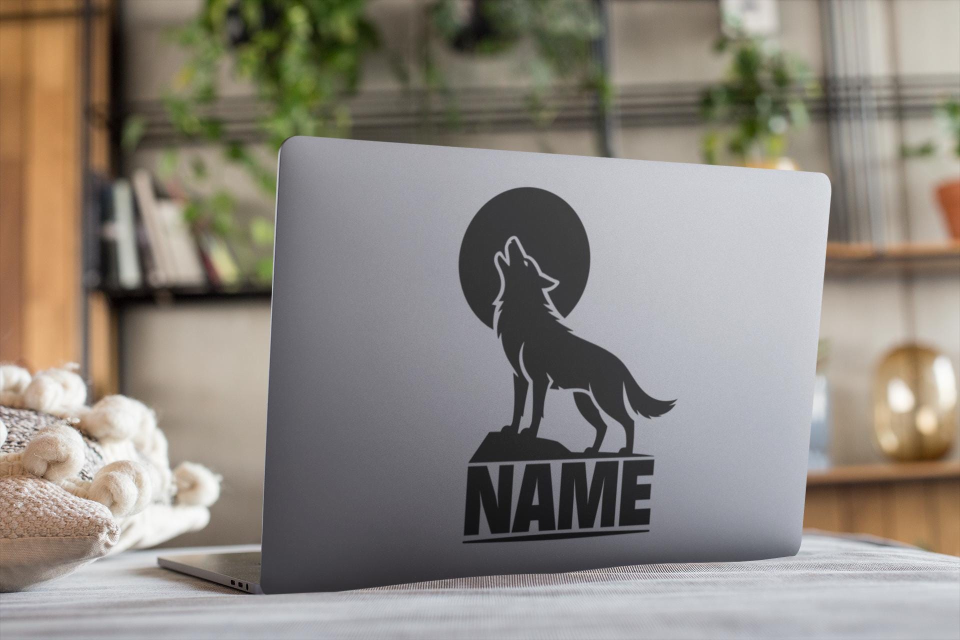Bring your device to life with this personalized wolf vinyl decal, crafted for those who feel connected to strength, wilderness, and raw independence. This custom name wolf sticker features a bold howling wolf silhouette under a full moon—designed to make your laptop, notebook, car, or water bottle feel uniquely yours.