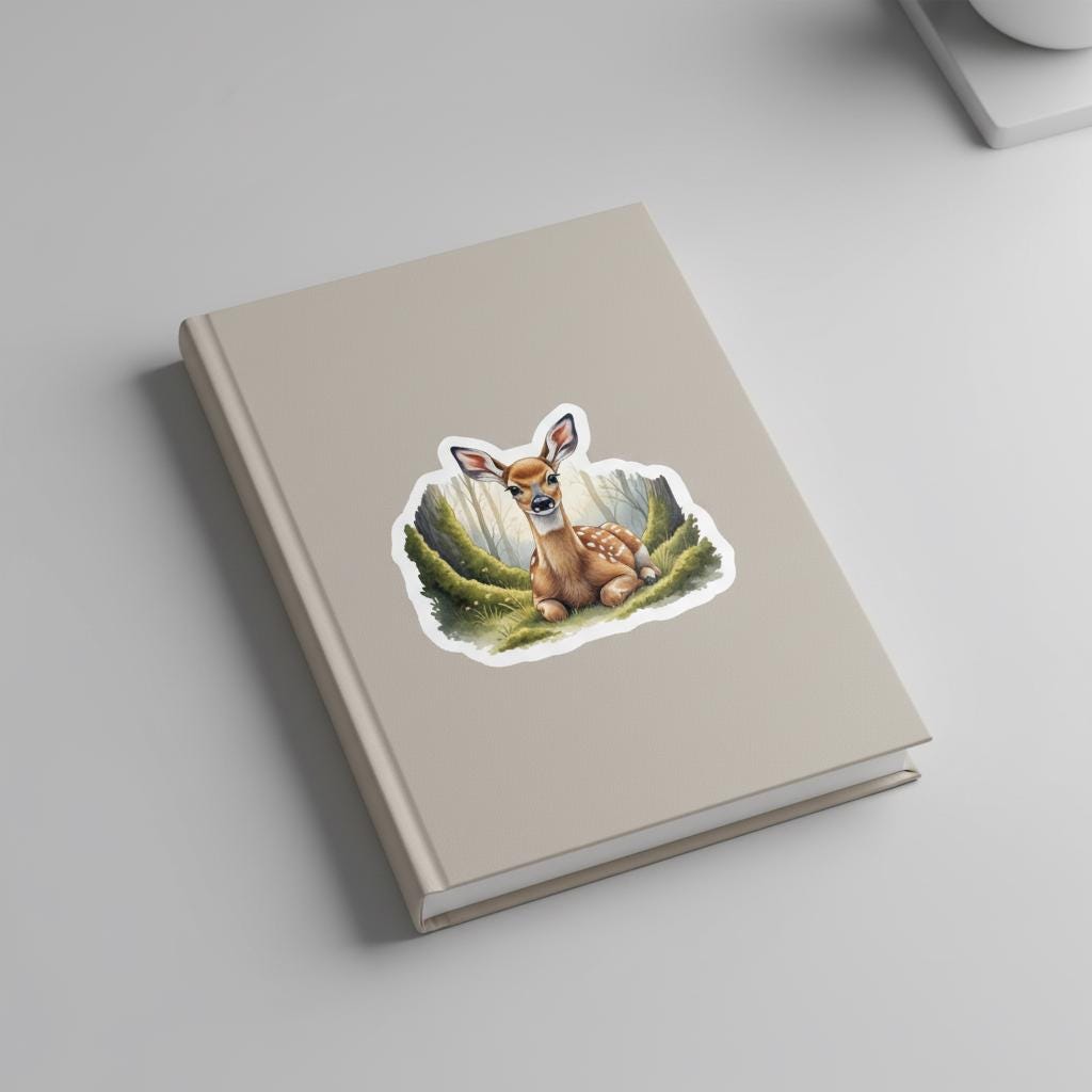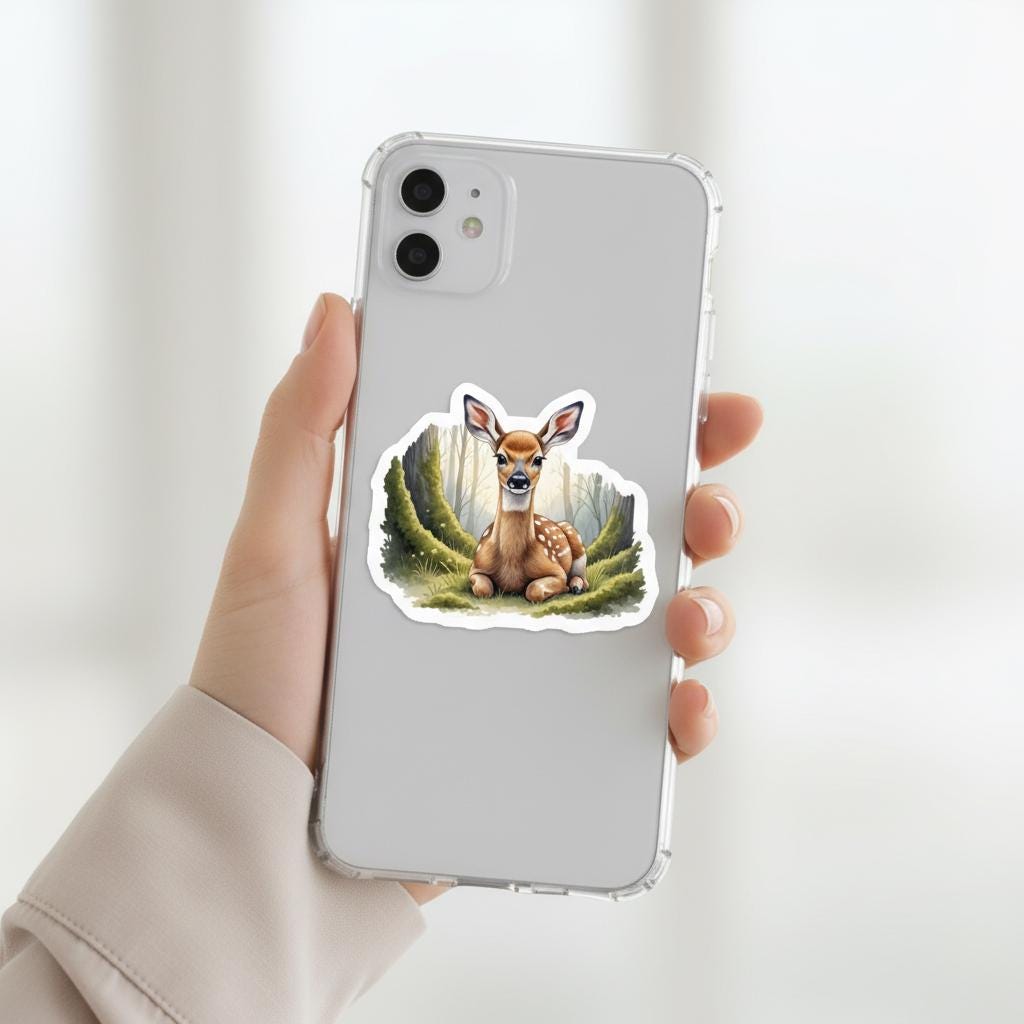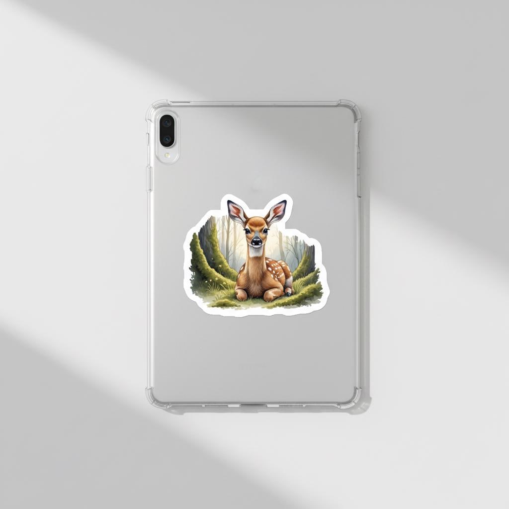 Bring a touch of woodland magic to your everyday essentials with this glossy fawn forest vinyl sticker, featuring a beautifully illustrated baby deer resting among soft moss and trees. Designed to feel warm, gentle, and nature-inspired, this sticker adds charm to laptops, water bottles, journals, sketchbooks, and more.