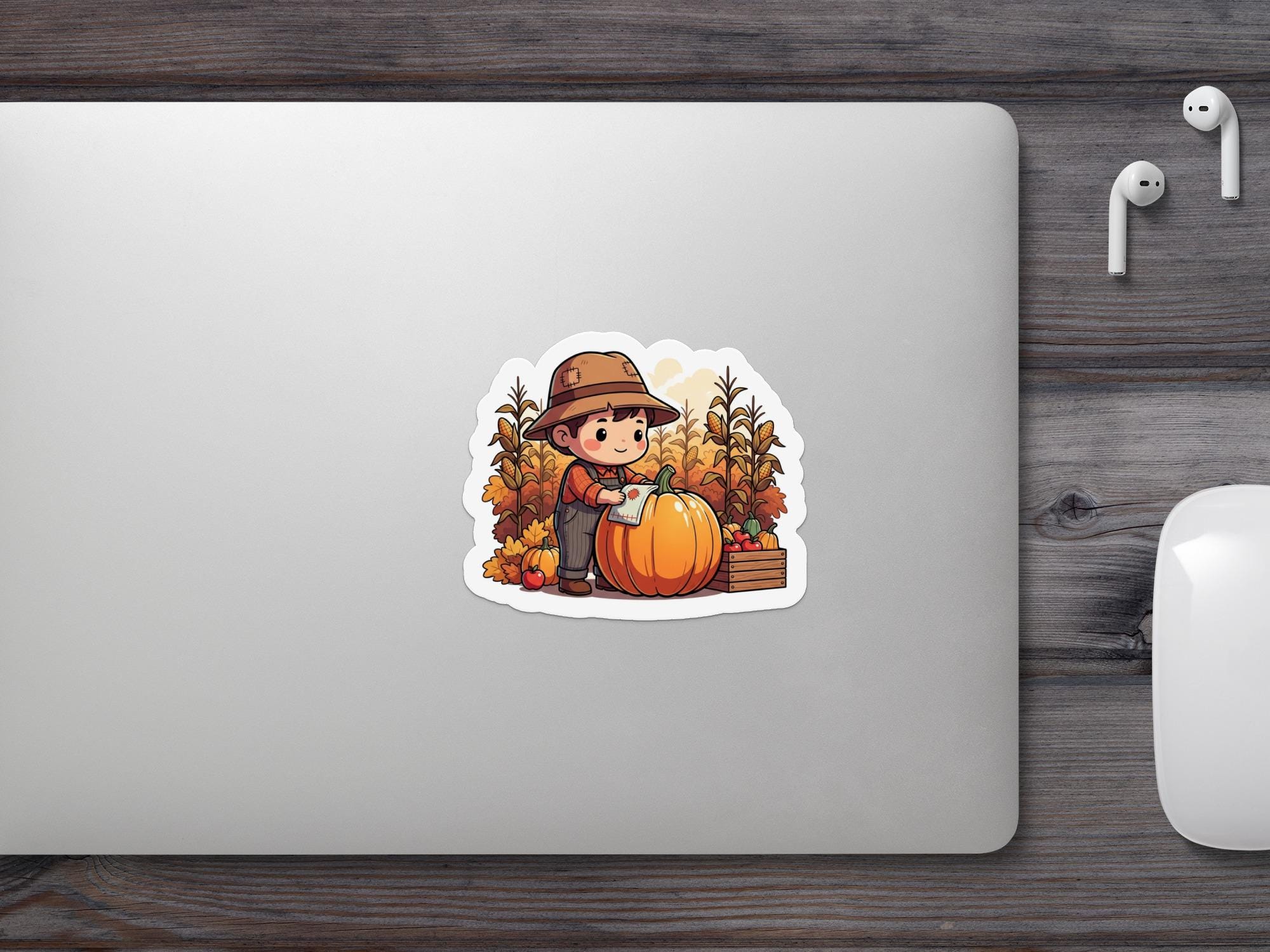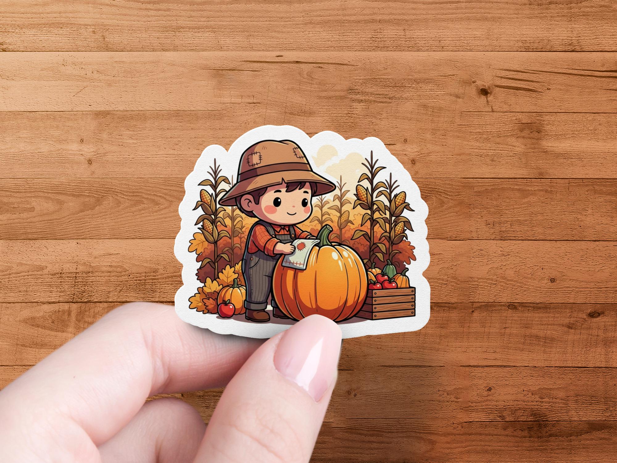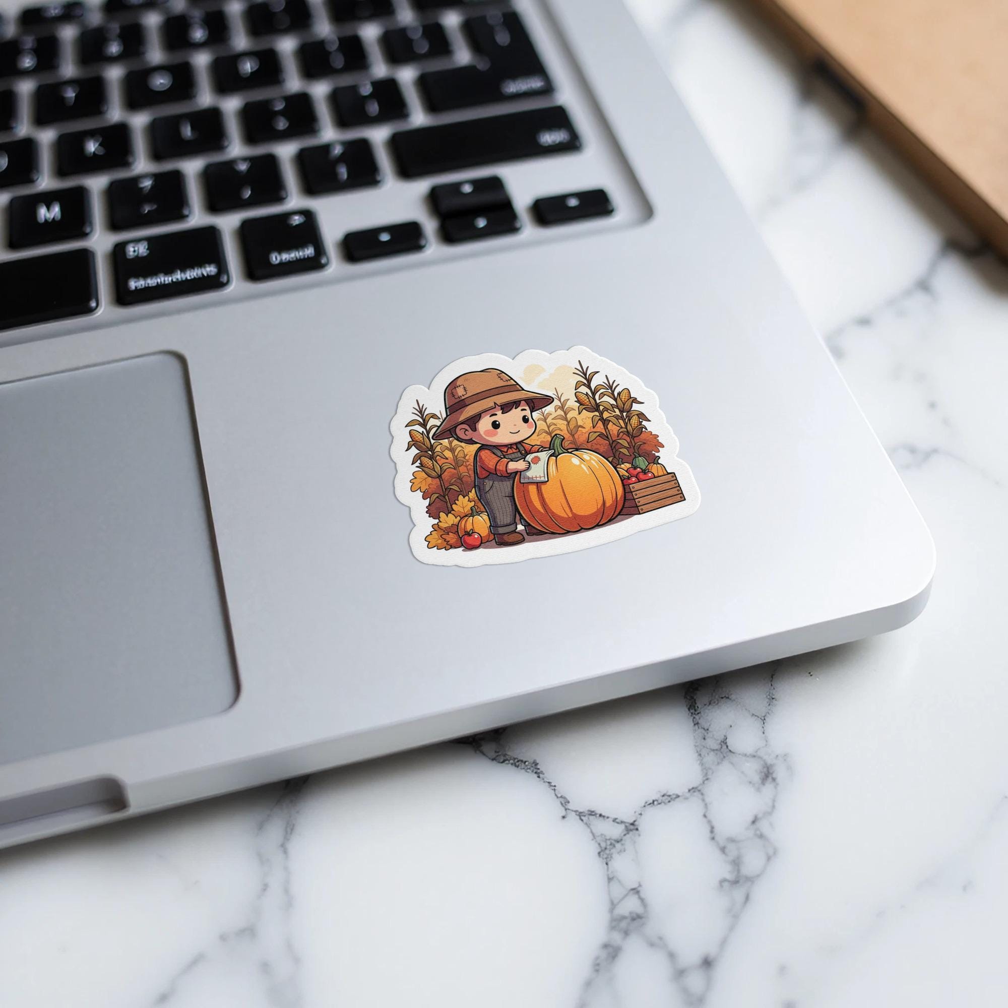 Celebrate the cozy magic of fall with this glossy die-cut sticker featuring a sweet autumn scene—complete with a pumpkin-loving kid and harvest backdrop. Whether you're journaling your favorite fall memories or decorating your laptop, this sticker brings warmth, charm, and nostalgia to every surface.