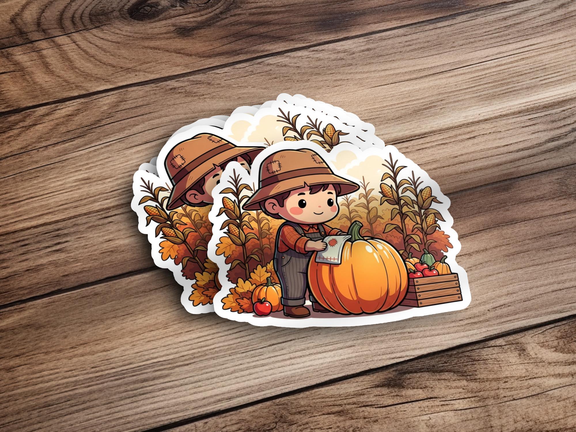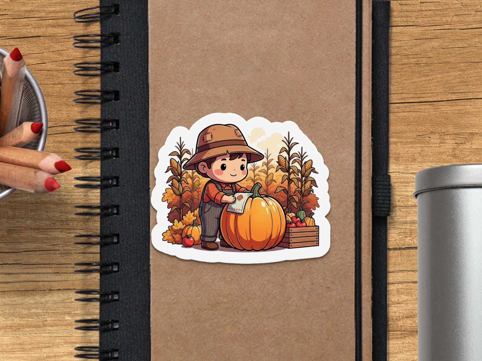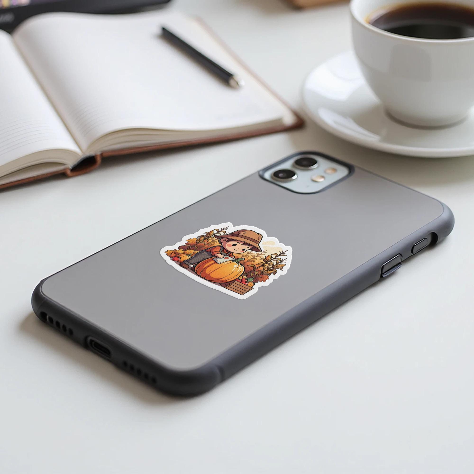 Celebrate the cozy magic of fall with this glossy die-cut sticker featuring a sweet autumn scene—complete with a pumpkin-loving kid and harvest backdrop. Whether you're journaling your favorite fall memories or decorating your laptop, this sticker brings warmth, charm, and nostalgia to every surface.