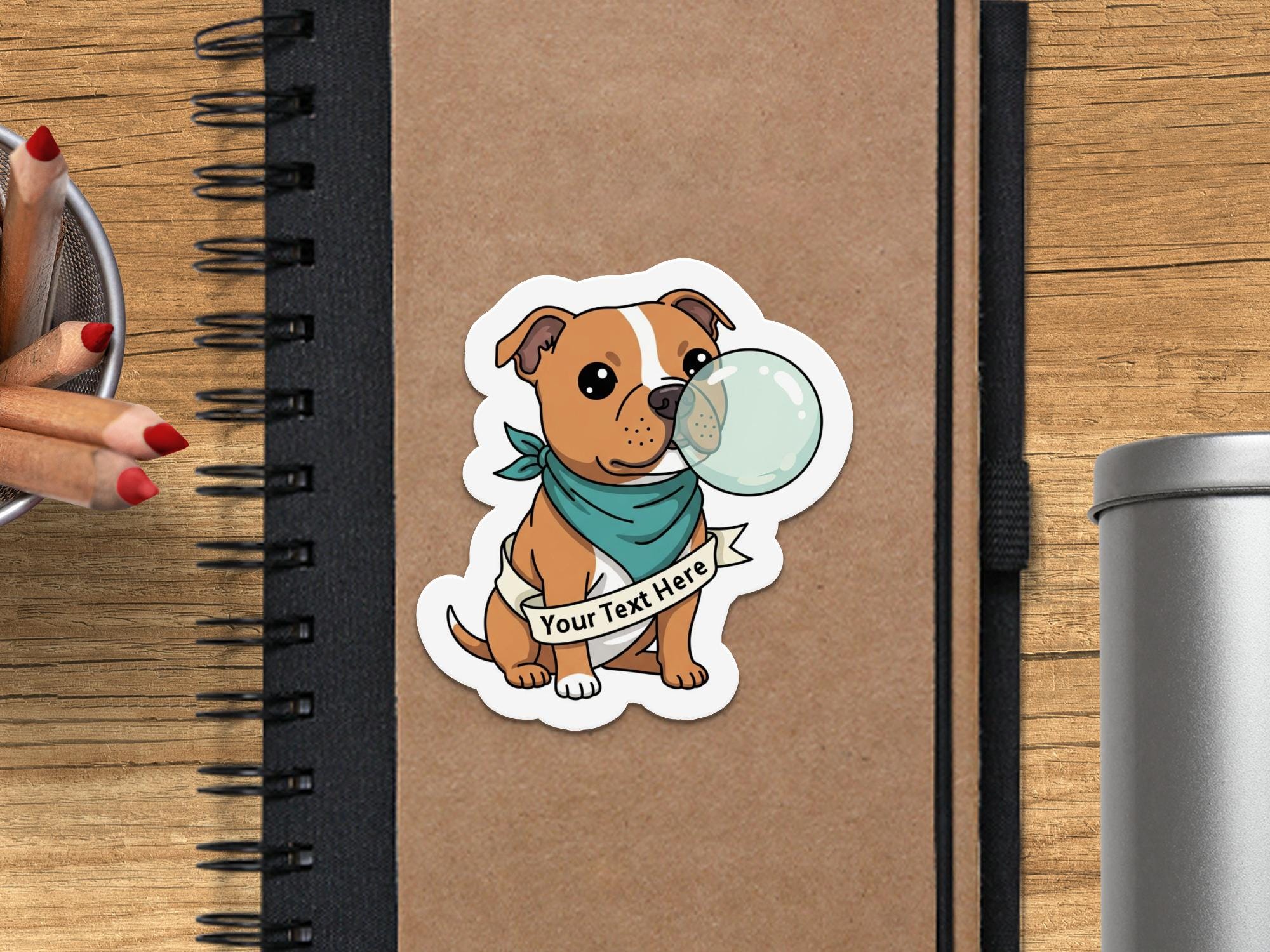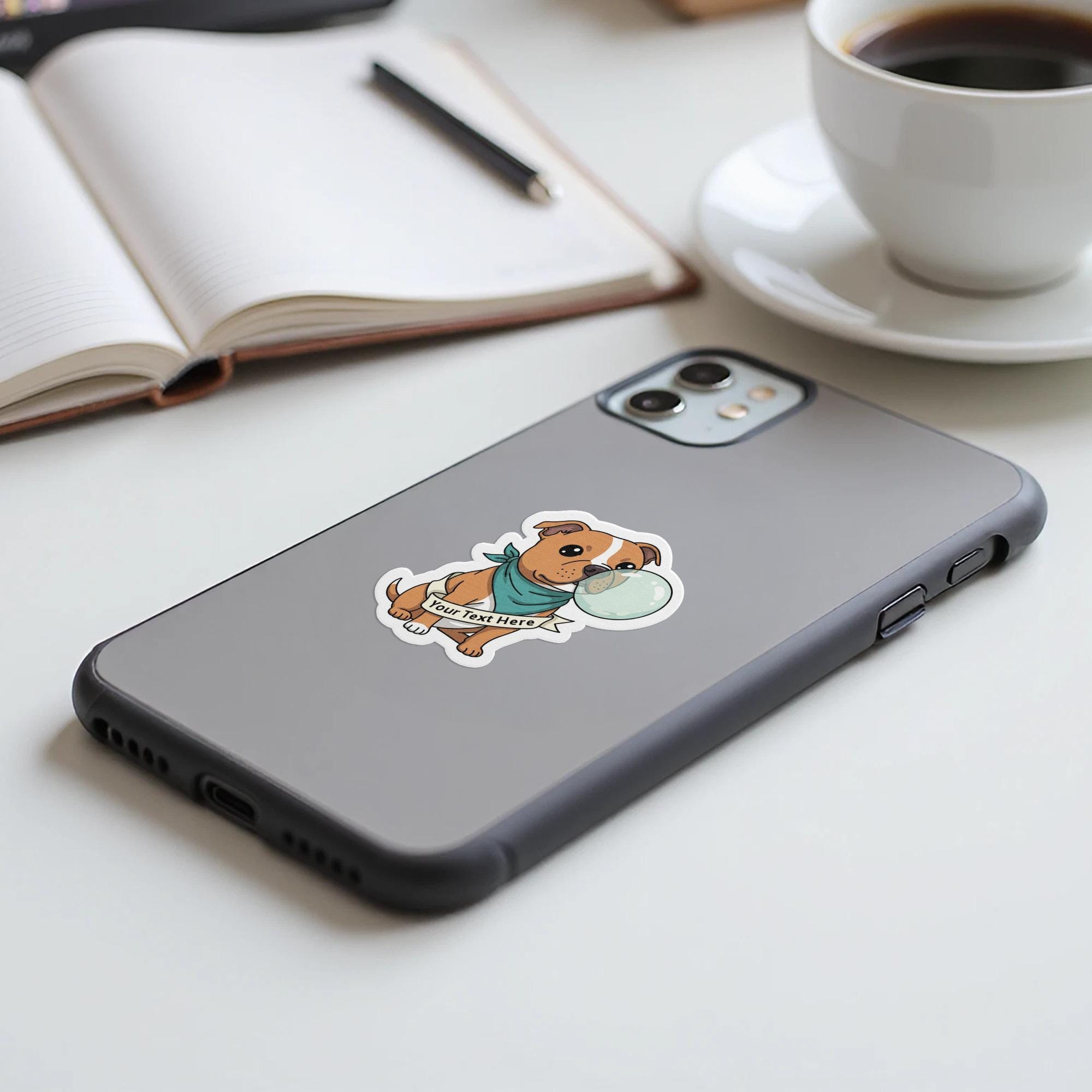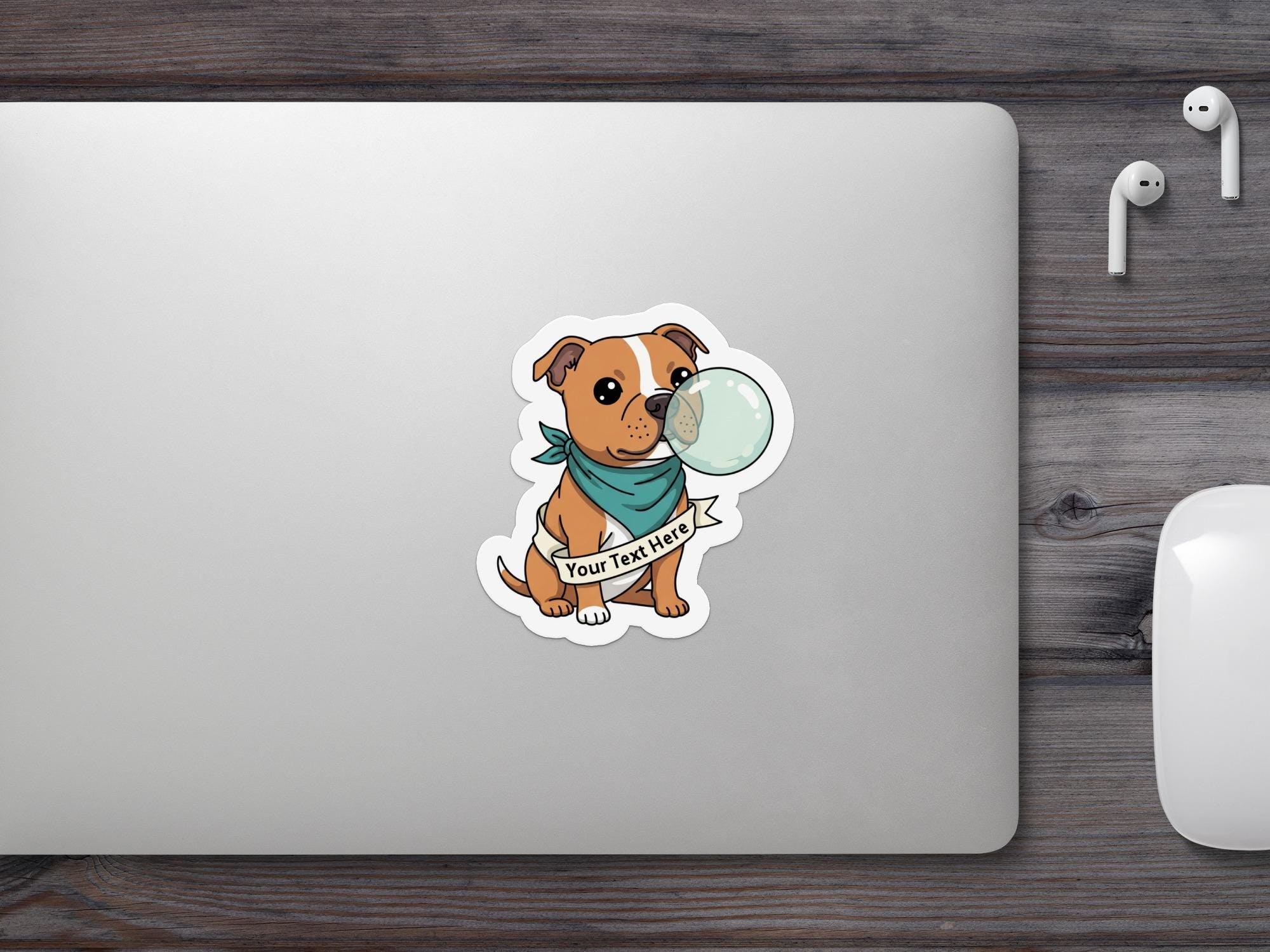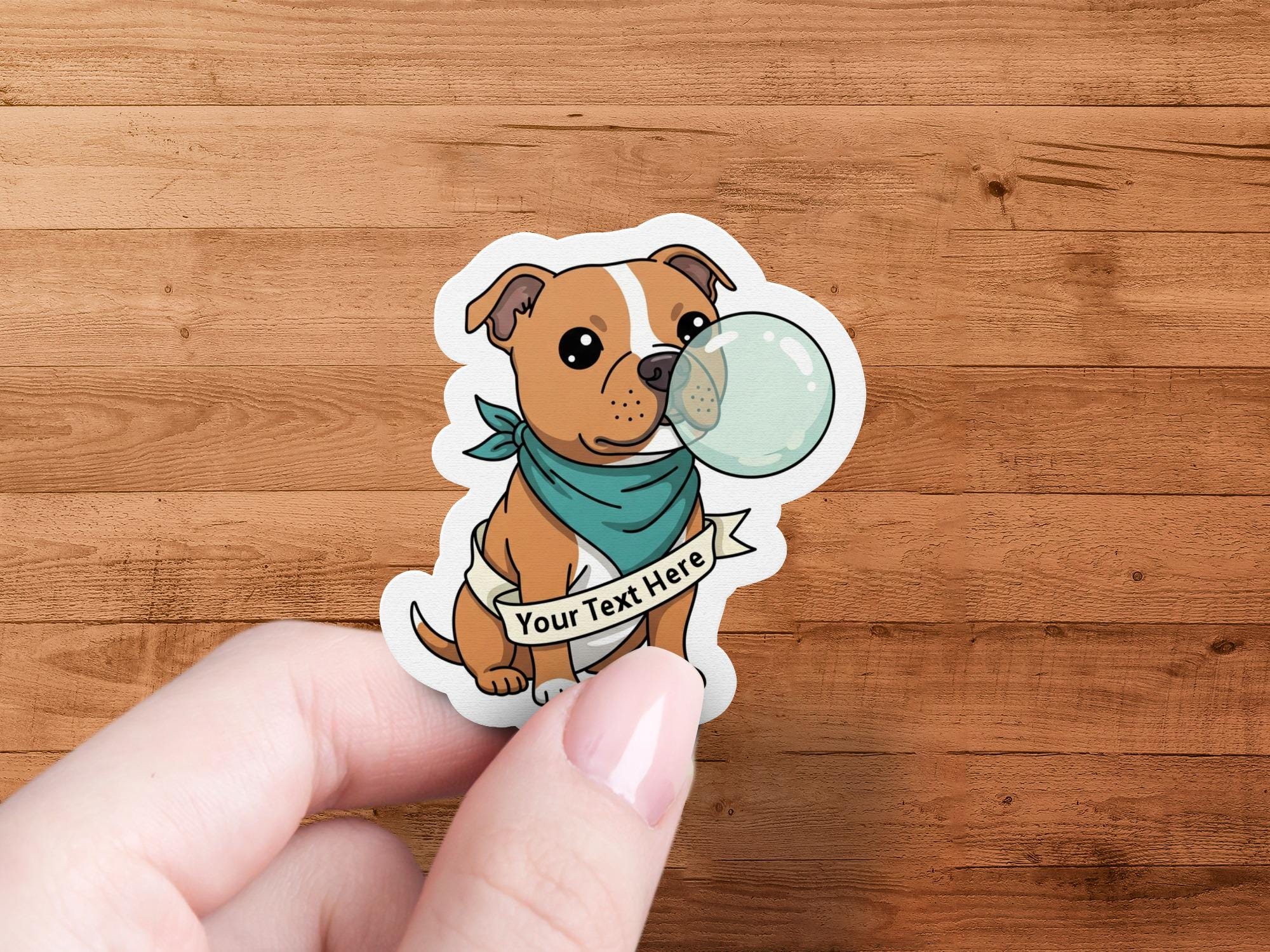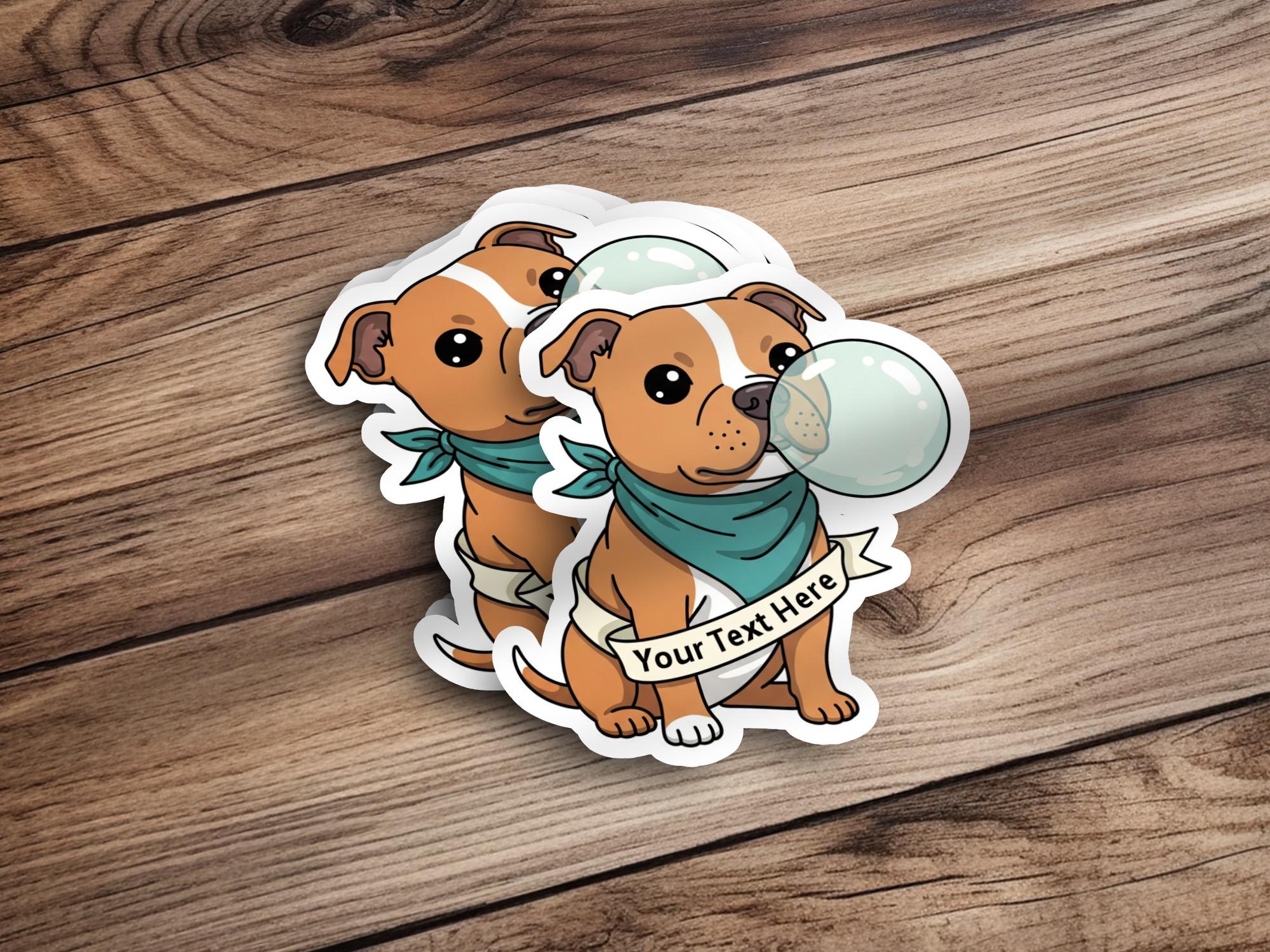 This adorable sticker features a cute pitbull blowing a bubble. The banner can be customized to add your own text, making it a great gift or a fun way to personalize your belongings.