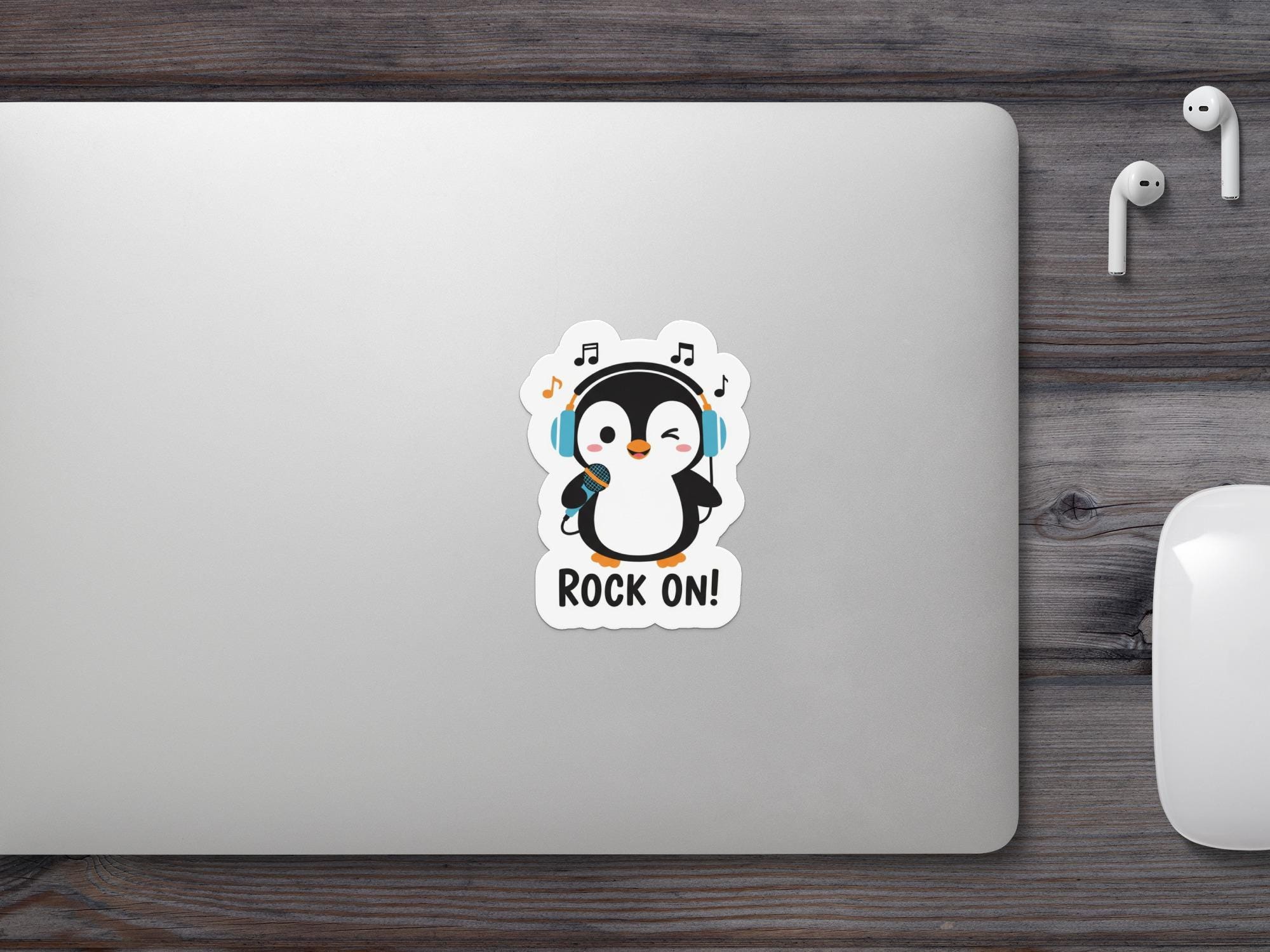 This music penguin vinyl sticker features a playful cartoon penguin rocking headphones and a microphone, designed to bring instant joy and personality wherever you stick it. With a smooth glossy finish and clean die-cut edges, this sticker is made to stand out while celebrating a love for music and fun self-expression.
