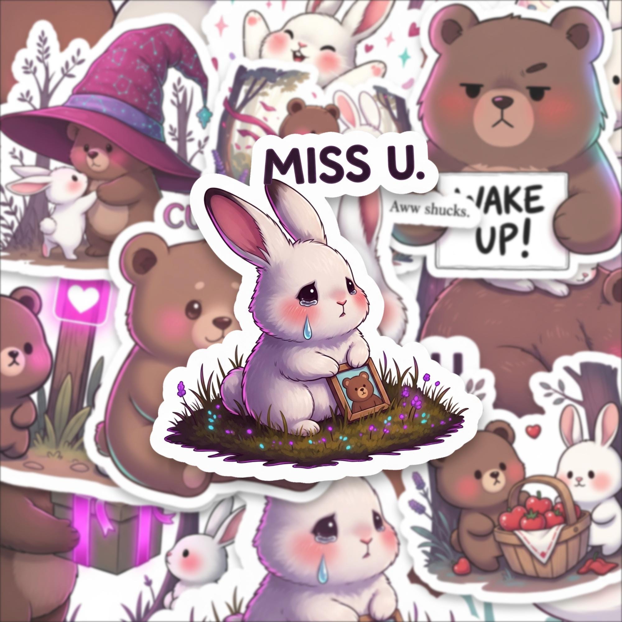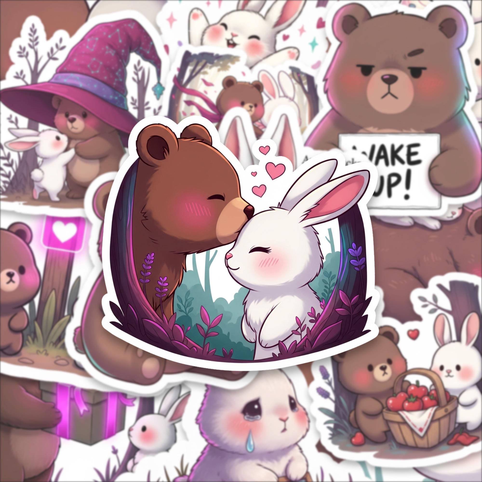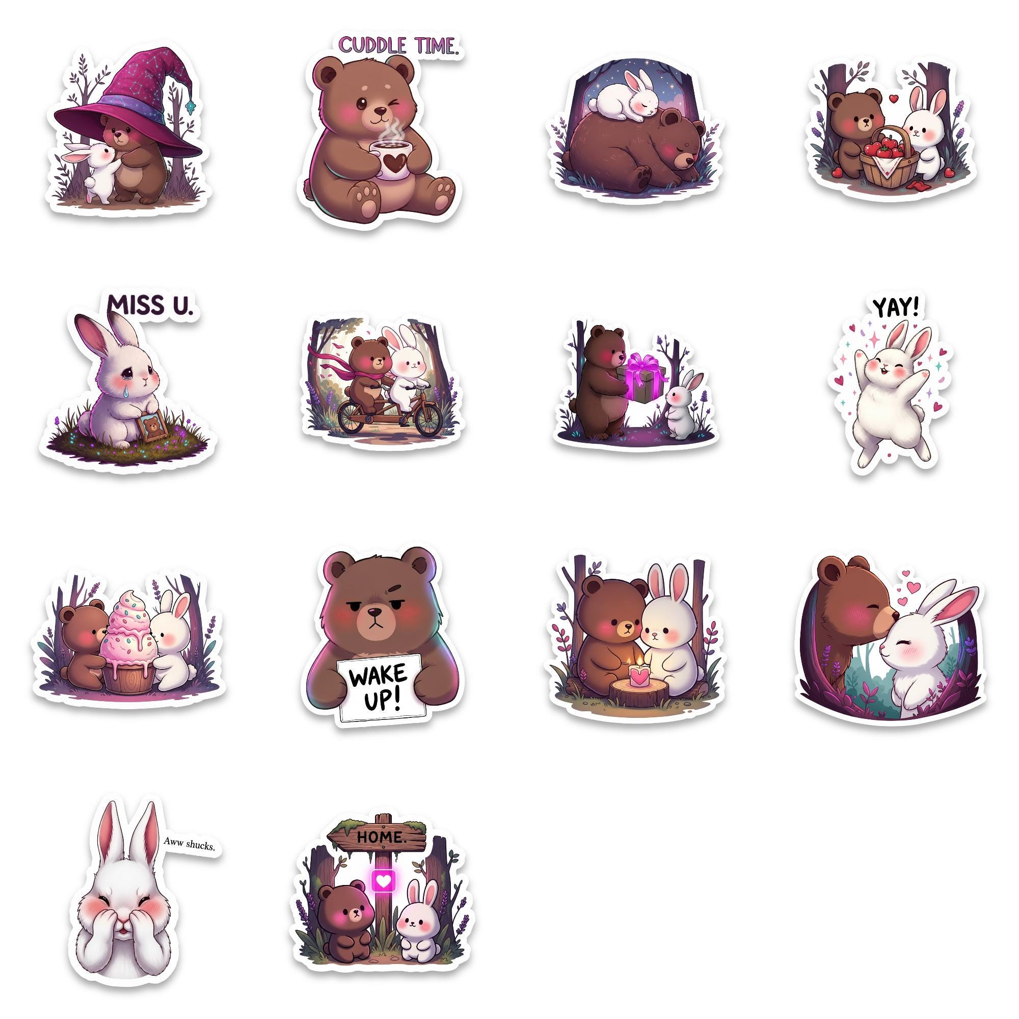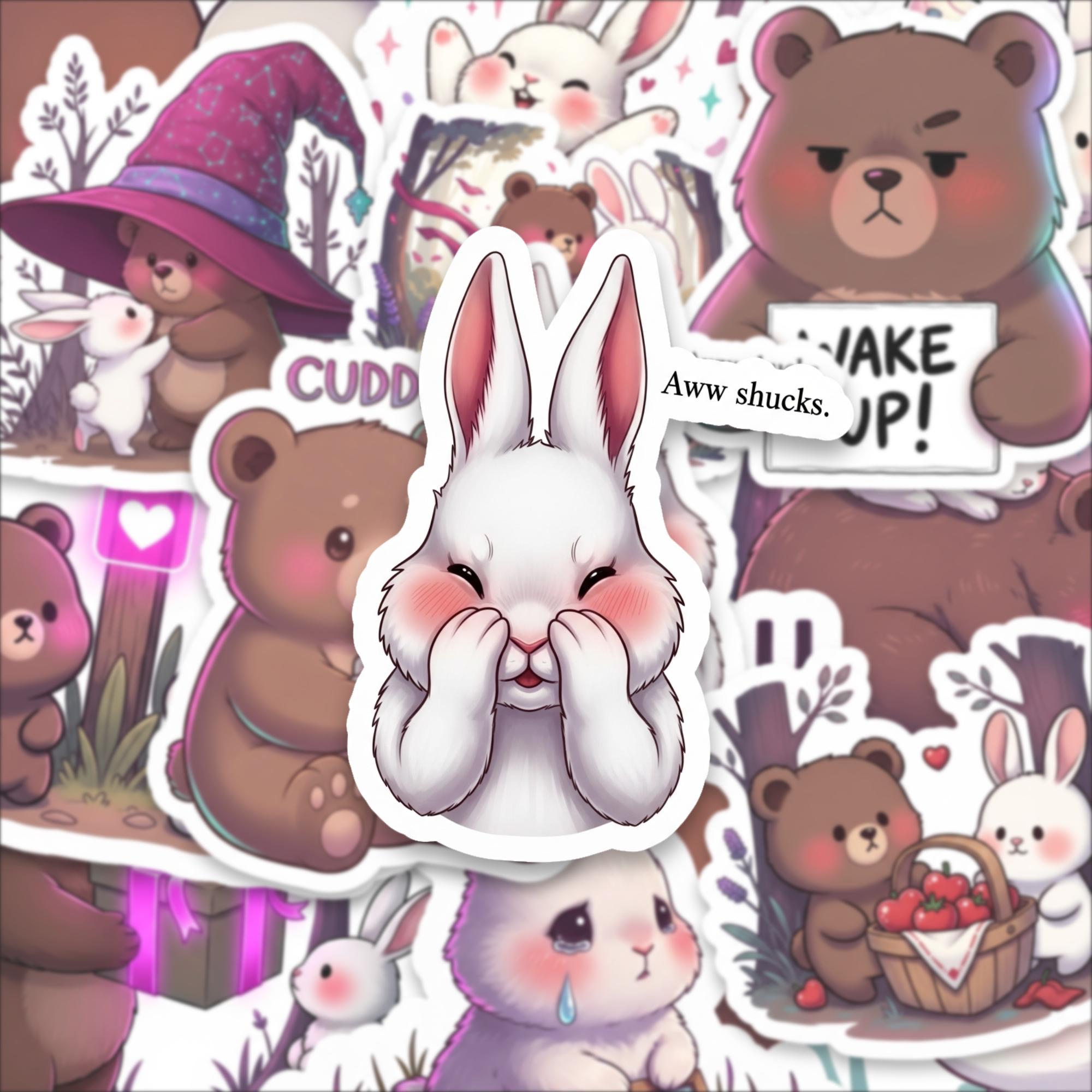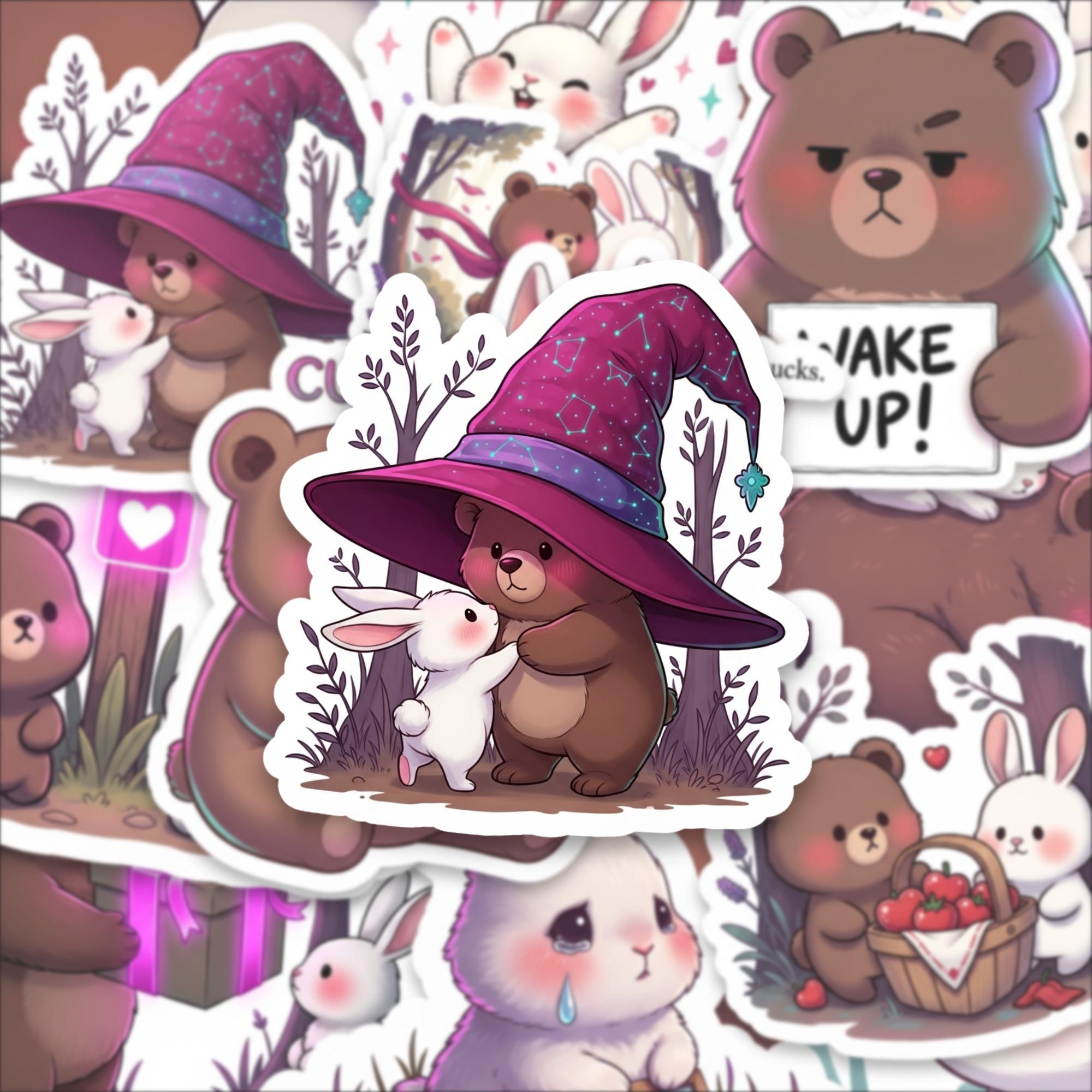 From cuddly bears holding mugs to sweet bunnies with rosy cheeks, this collection captures playful emotion and gentle storytelling in every design. The compact 2 inch size makes them perfect for layering on laptops, water bottles, journals, planners, phone cases, and scrapbooks without overwhelming your space.