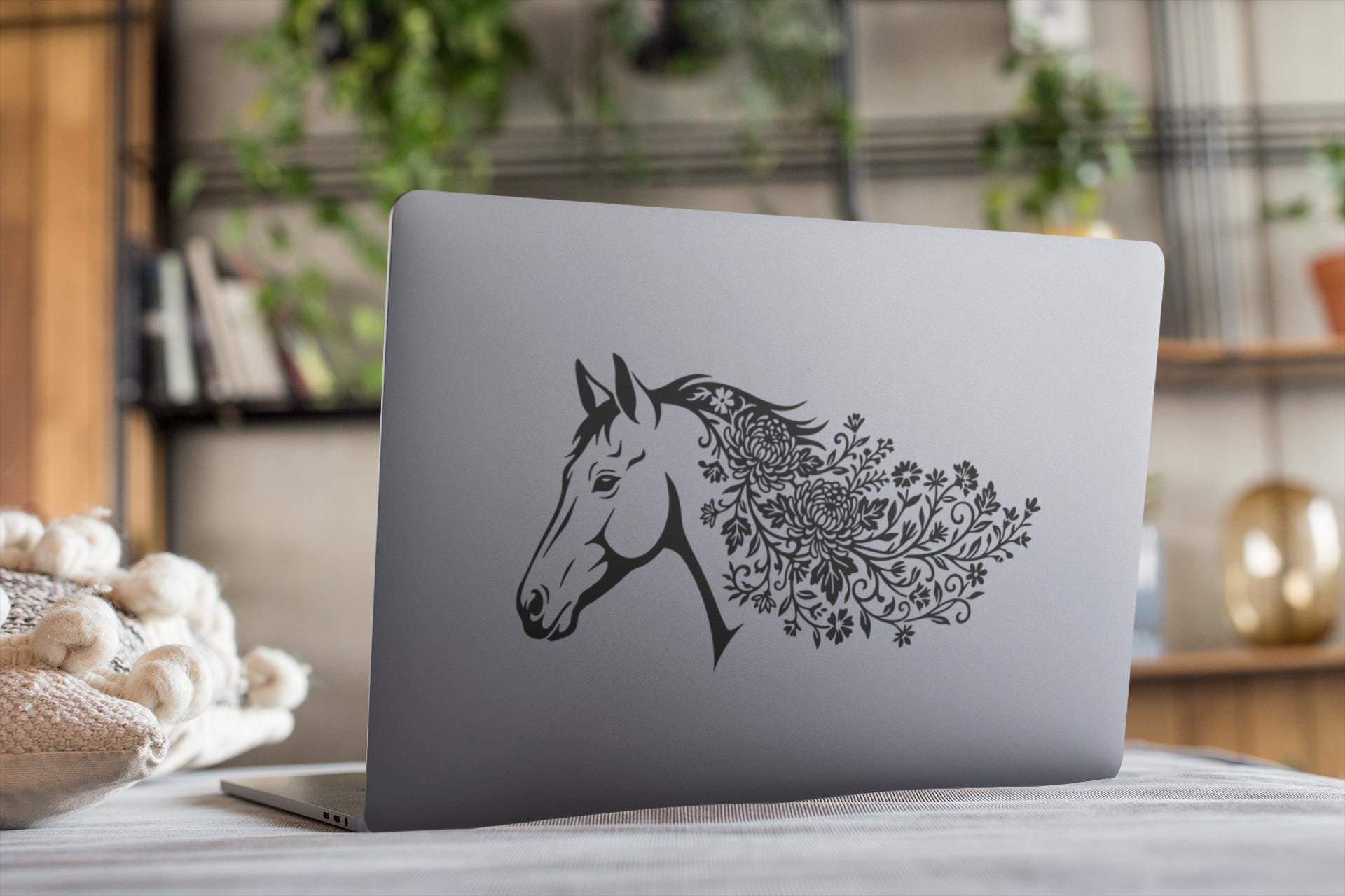 This floral horse head vinyl decal transforms any surface into a statement of freedom and strength. Designed with intricate botanical detailing, this horse decal blends equestrian elegance with modern boho style for a bold yet graceful look.