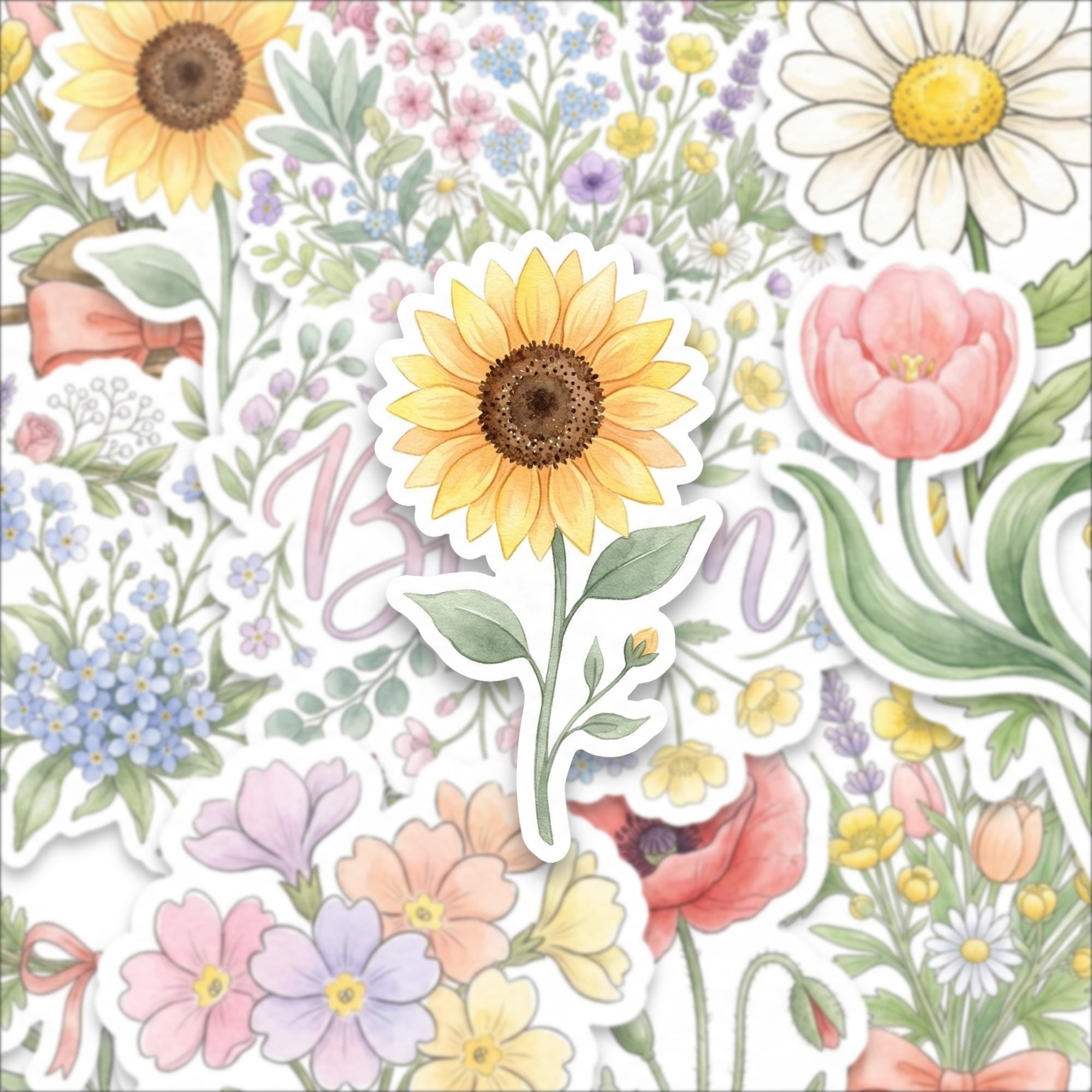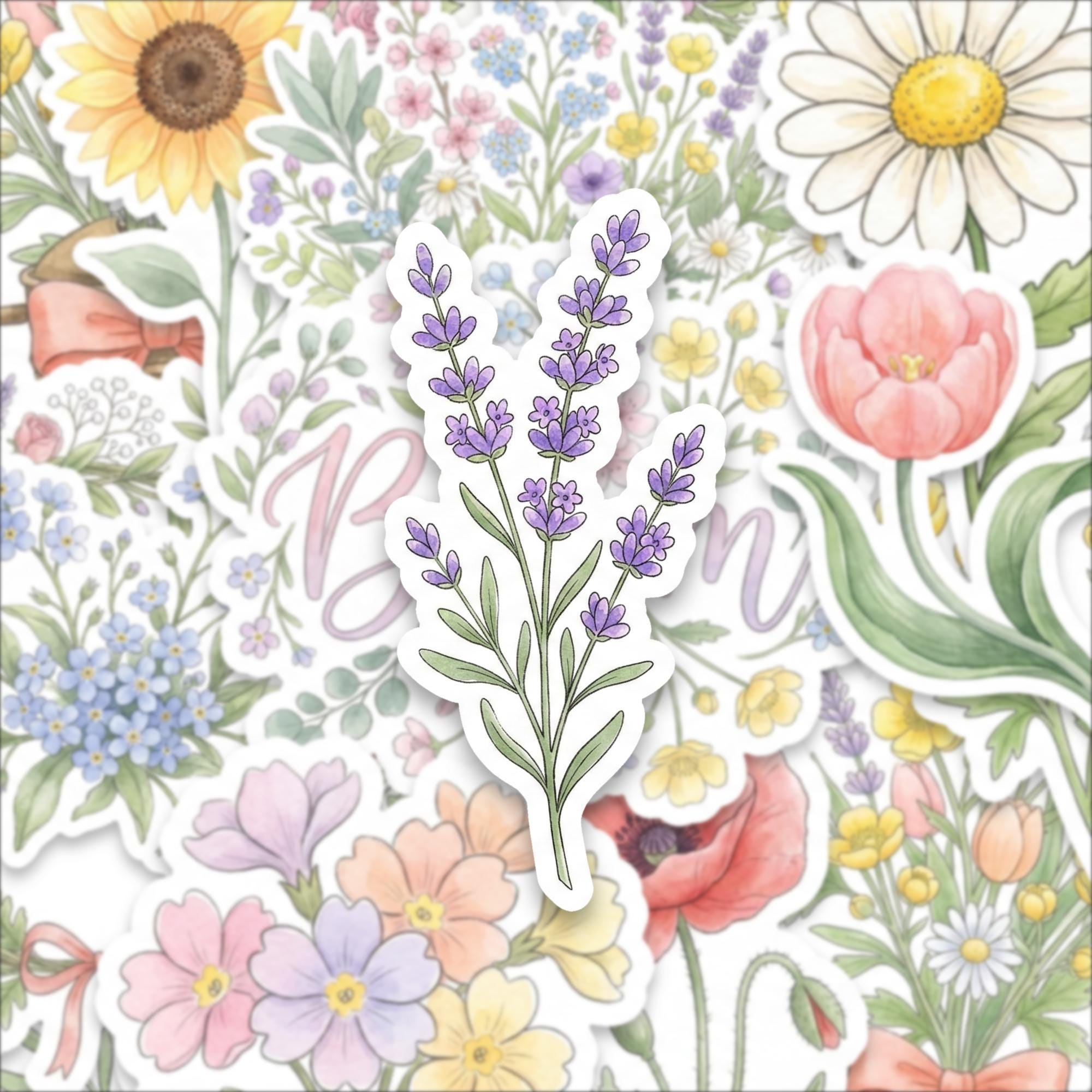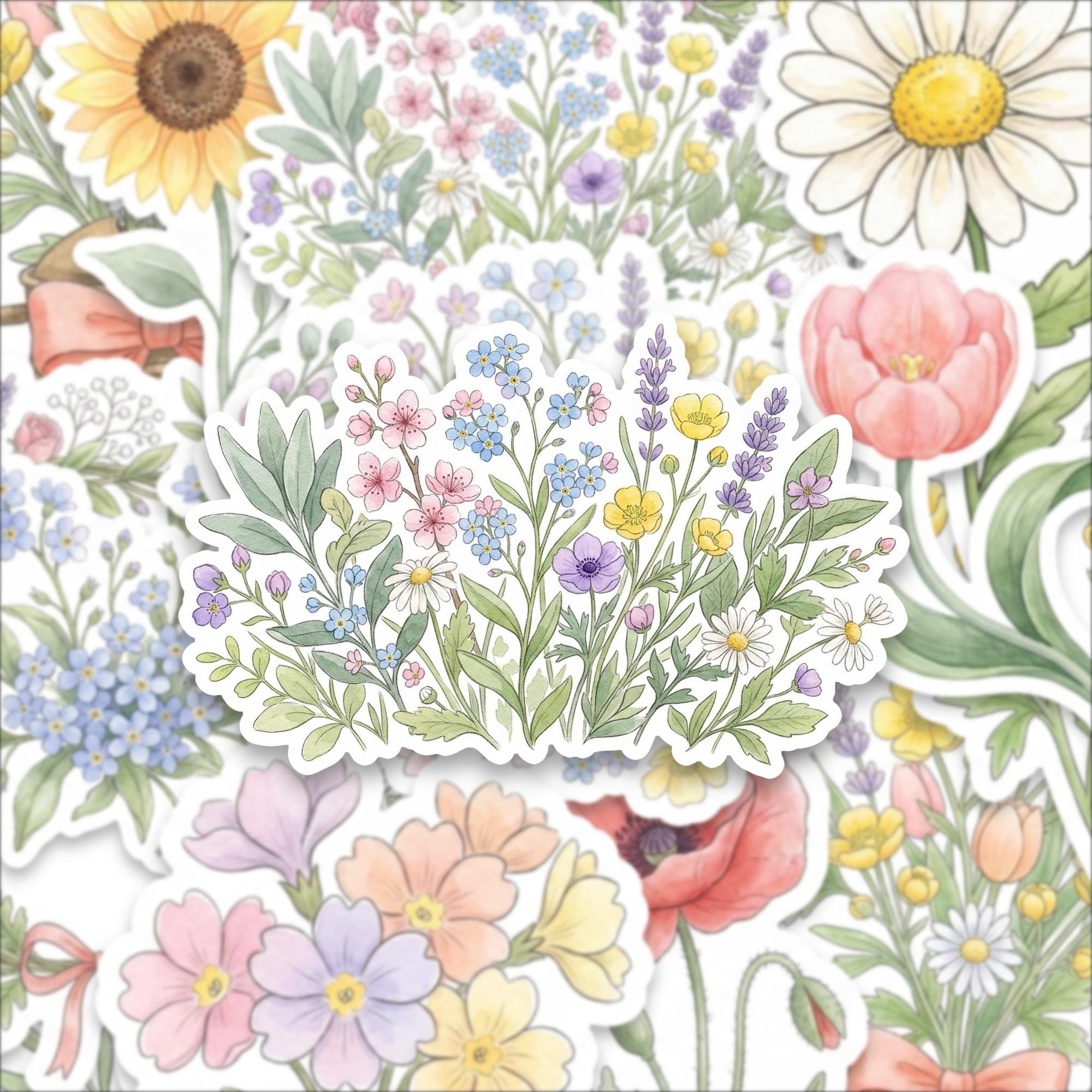 Bring the charm of nature into your everyday life with this watercolor spring flower sticker pack, featuring a beautiful collection of glossy botanical illustrations. Each sticker captures the delicate elegance of blooming flowers — from daisies and lavender to tulips and sunflowers — designed to add soft, cheerful beauty wherever you place them.