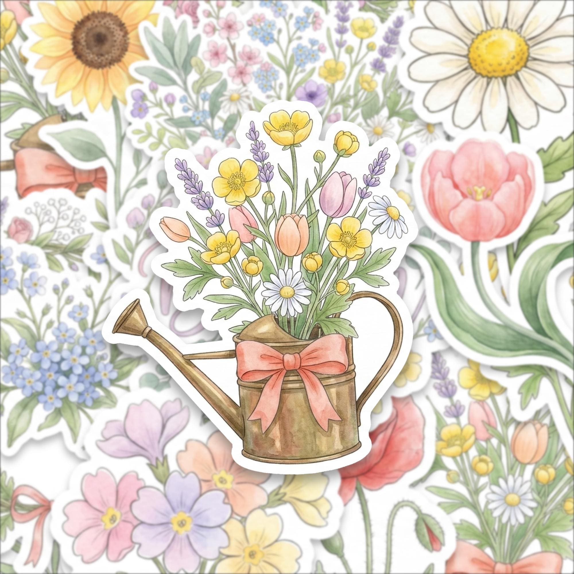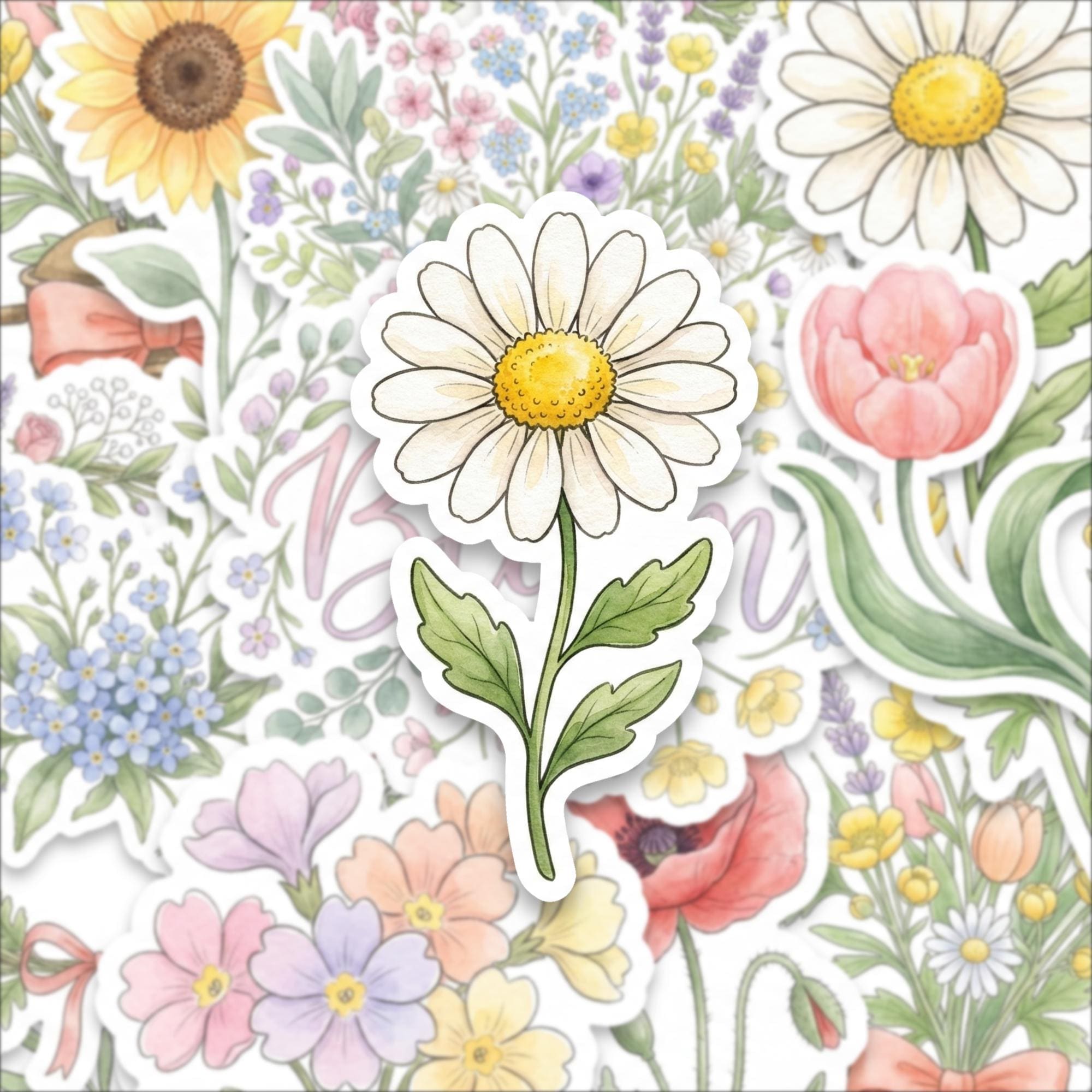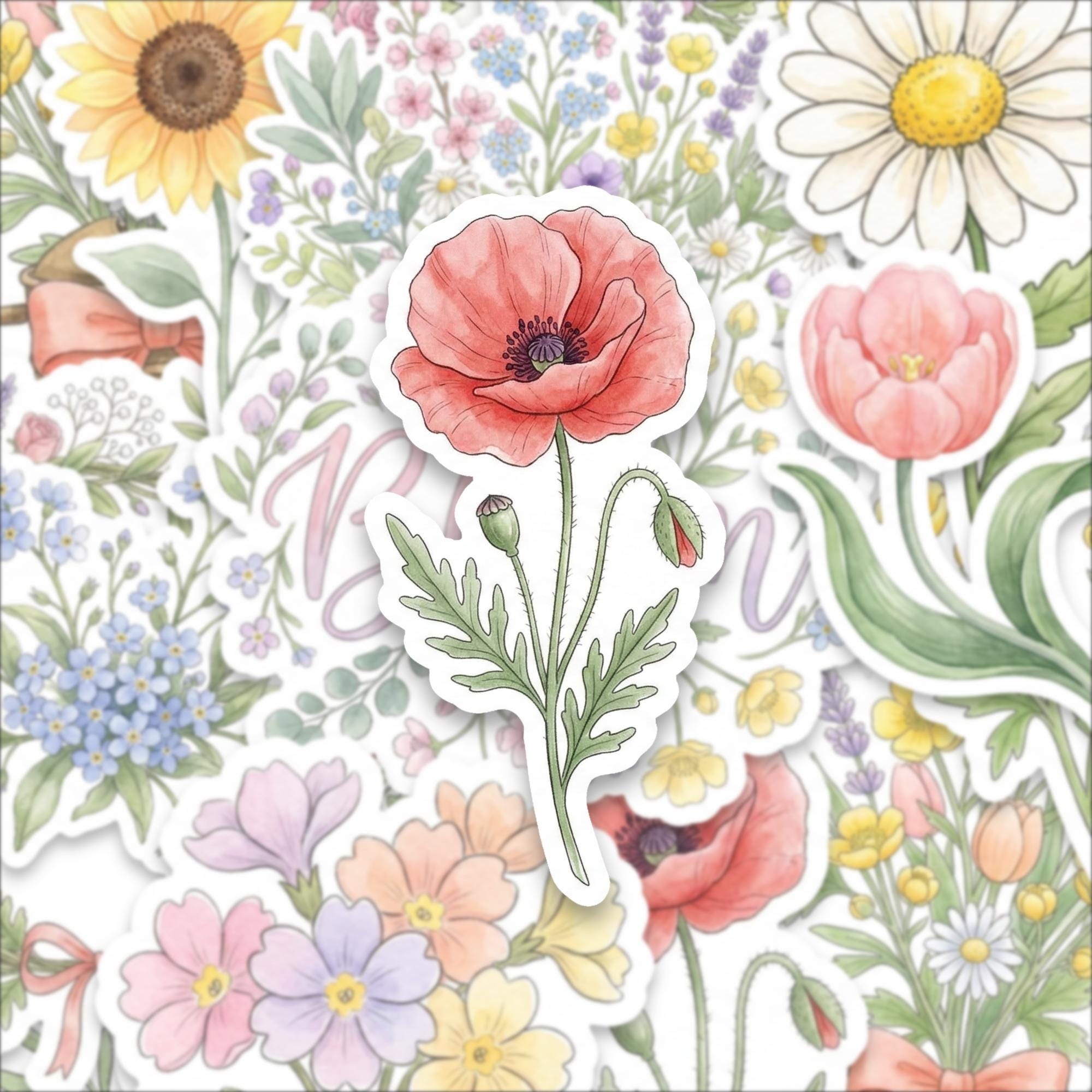 Bring the charm of nature into your everyday life with this watercolor spring flower sticker pack, featuring a beautiful collection of glossy botanical illustrations. Each sticker captures the delicate elegance of blooming flowers — from daisies and lavender to tulips and sunflowers — designed to add soft, cheerful beauty wherever you place them.