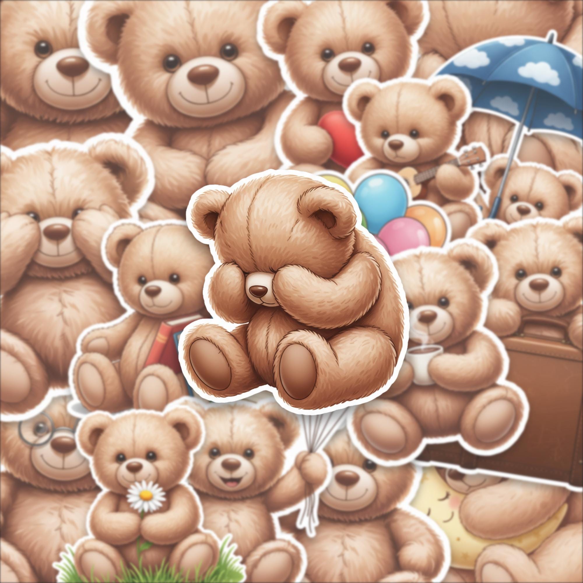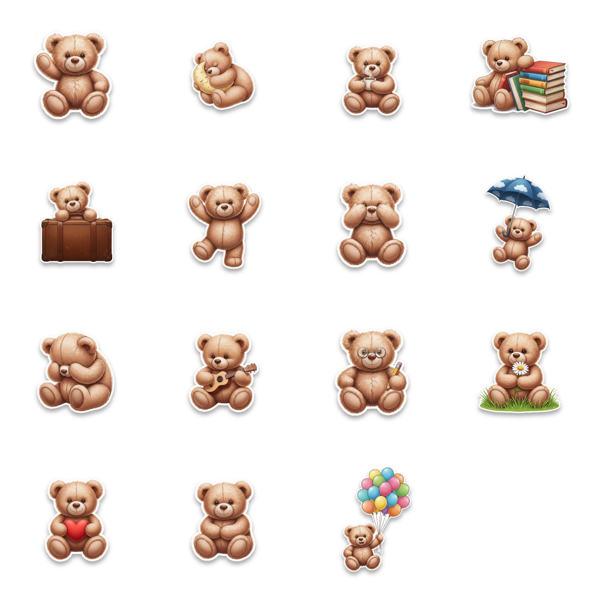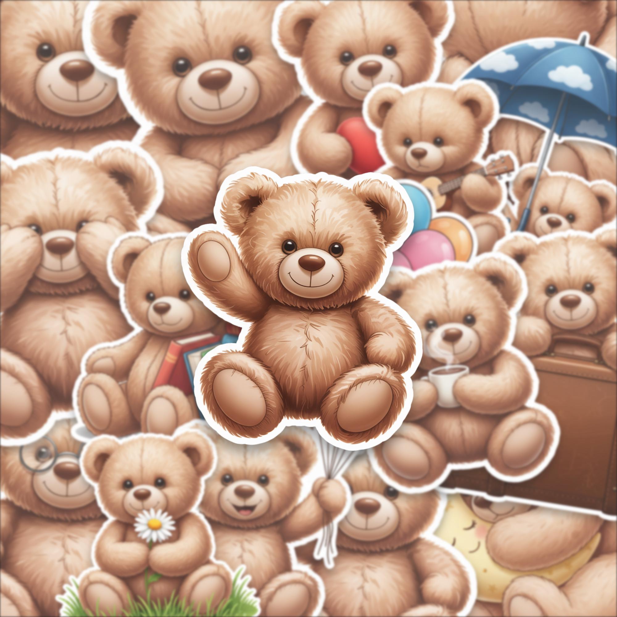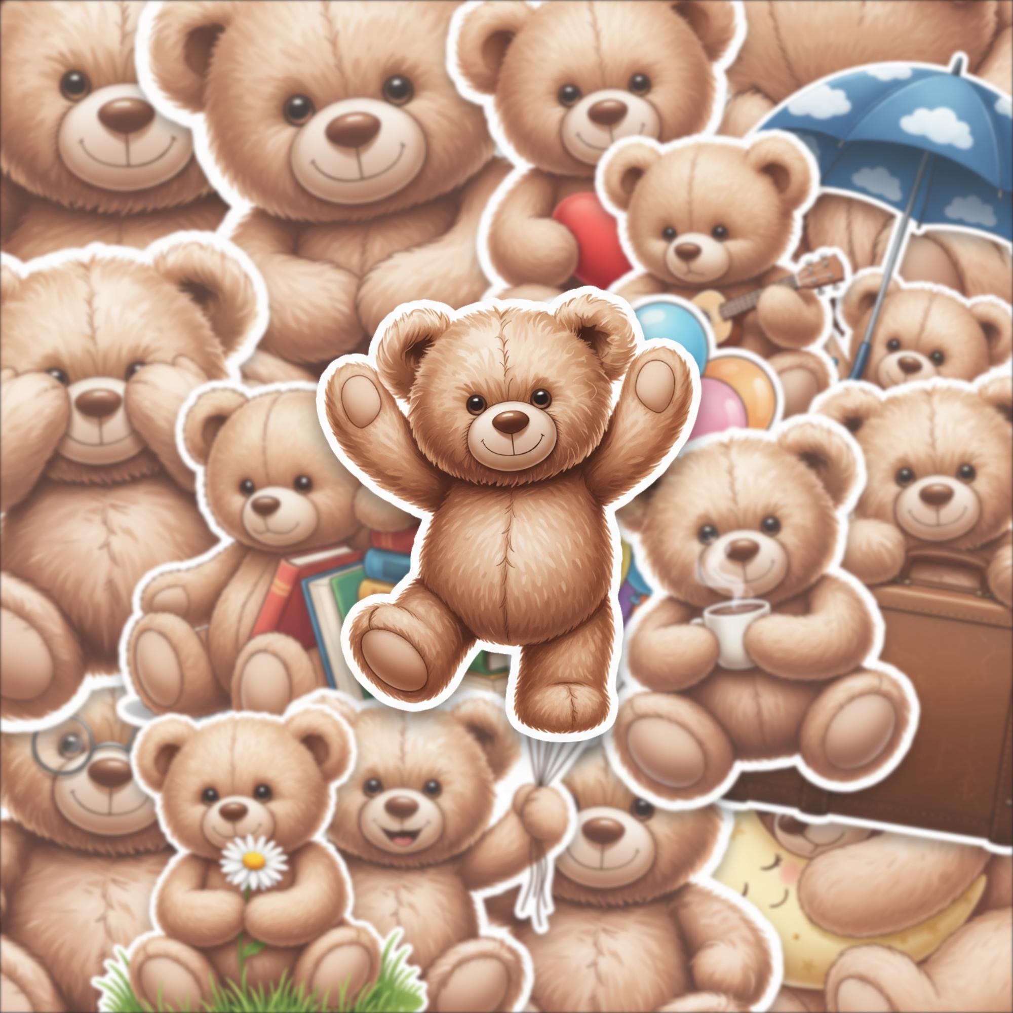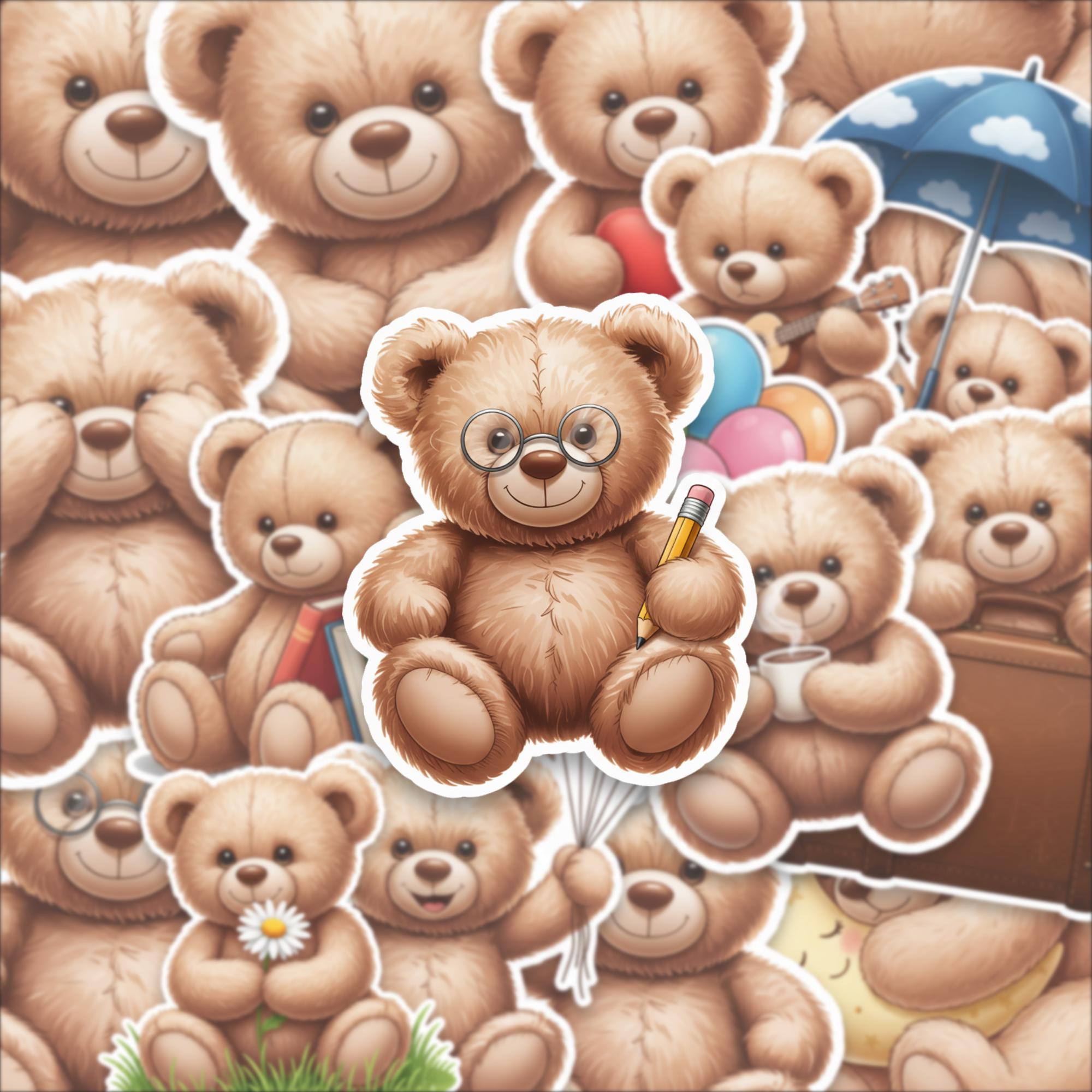Designed as a 15-piece glossy sticker set, these 2-inch teddy bear stickers feature adorable scenes—from cozy reading bears to playful balloon moments—making them perfect for decorating laptops, journals, scrapbooks, or gifting to someone special. The high-quality glossy finish enhances color vibrancy while giving each piece a smooth, premium feel.