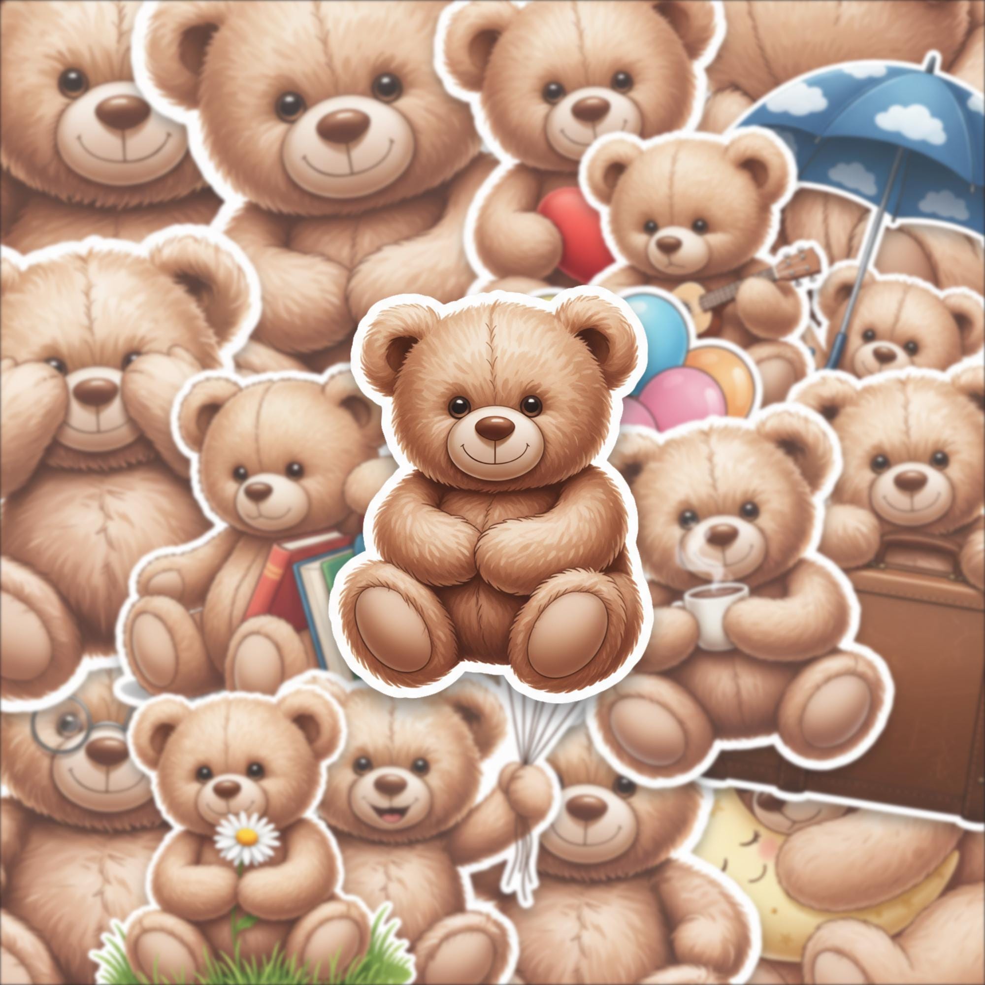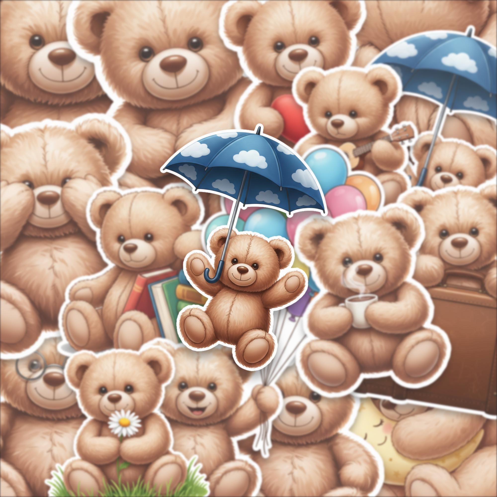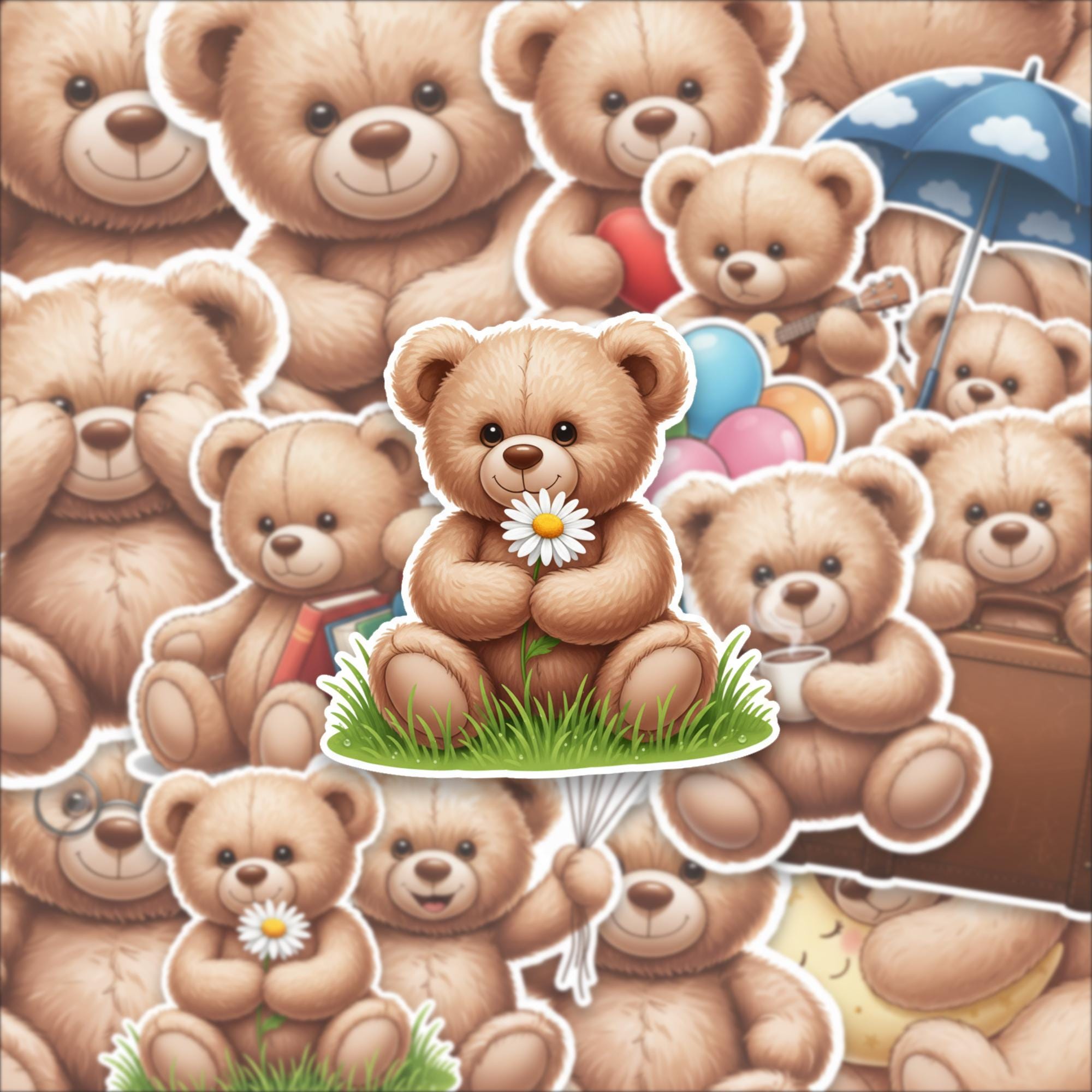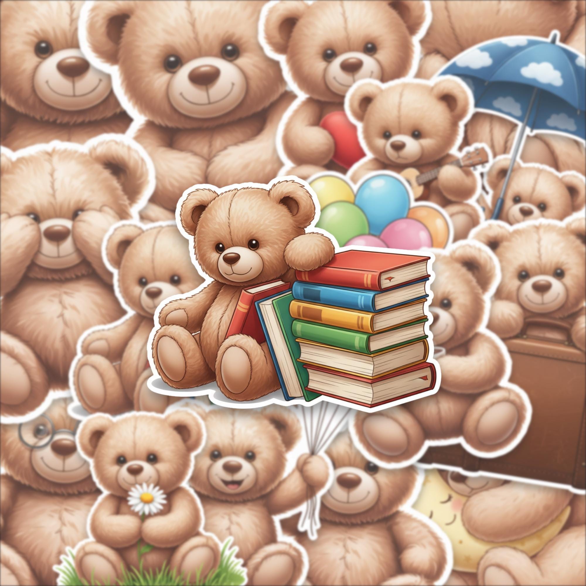 Designed as a 15-piece glossy sticker set, these 2-inch teddy bear stickers feature adorable scenes—from cozy reading bears to playful balloon moments—making them perfect for decorating laptops, journals, scrapbooks, or gifting to someone special. The high-quality glossy finish enhances color vibrancy while giving each piece a smooth, premium feel.