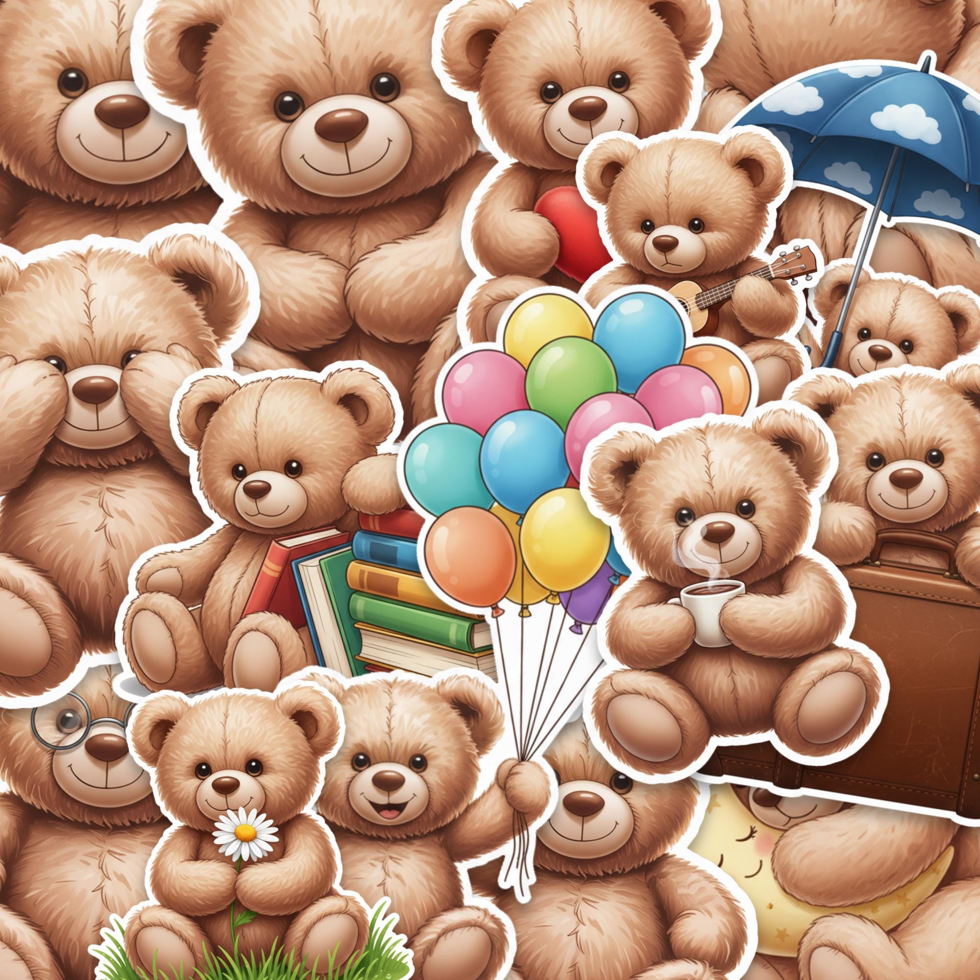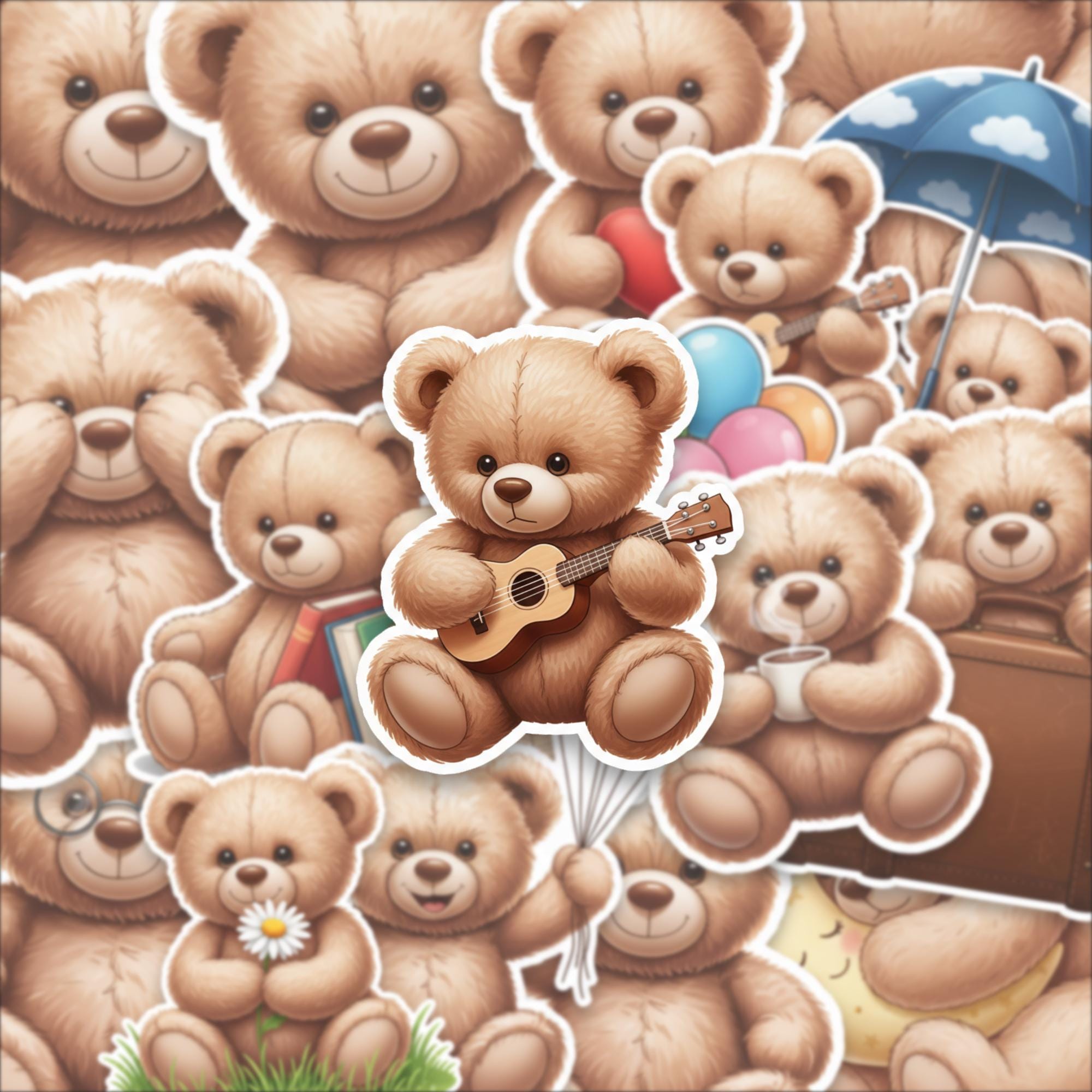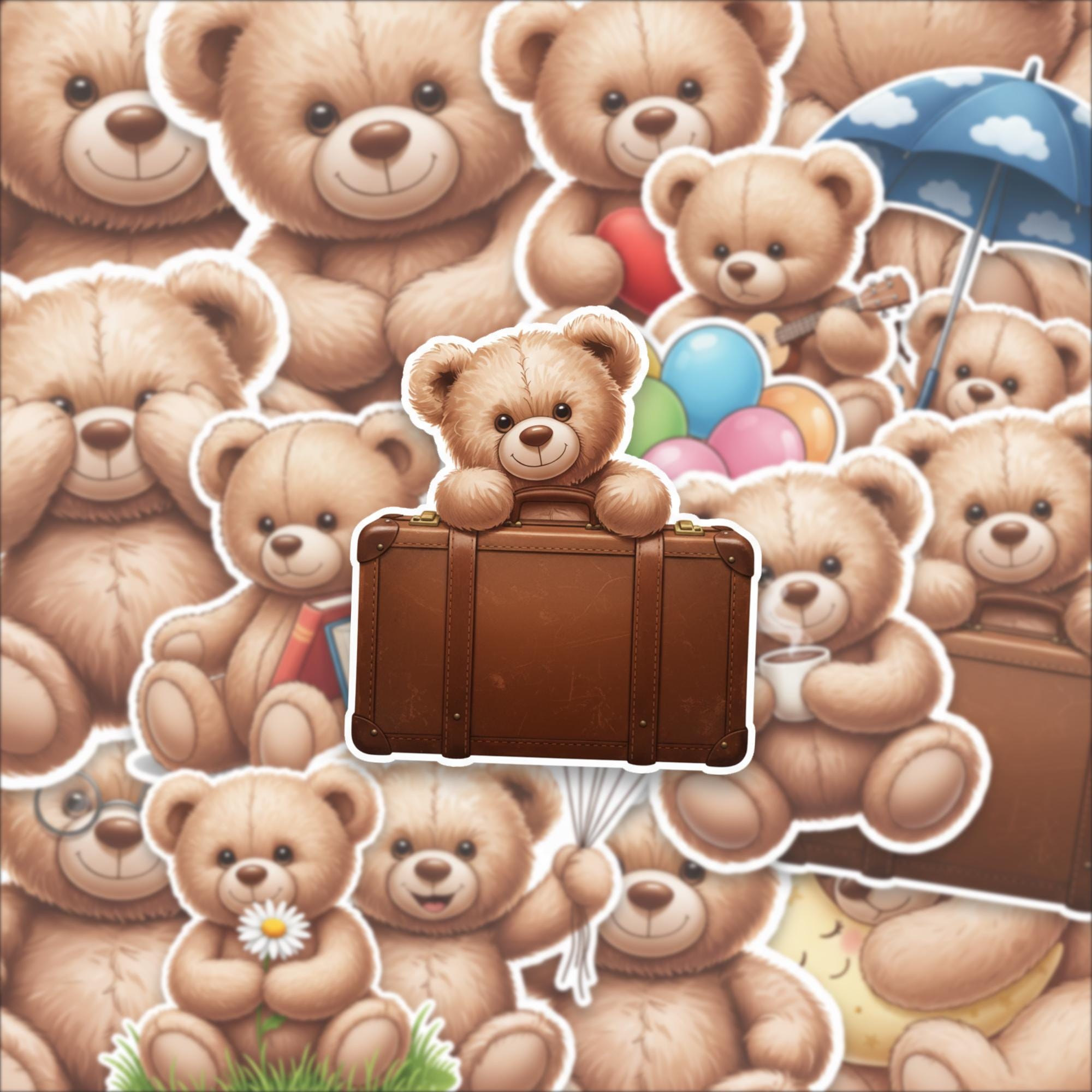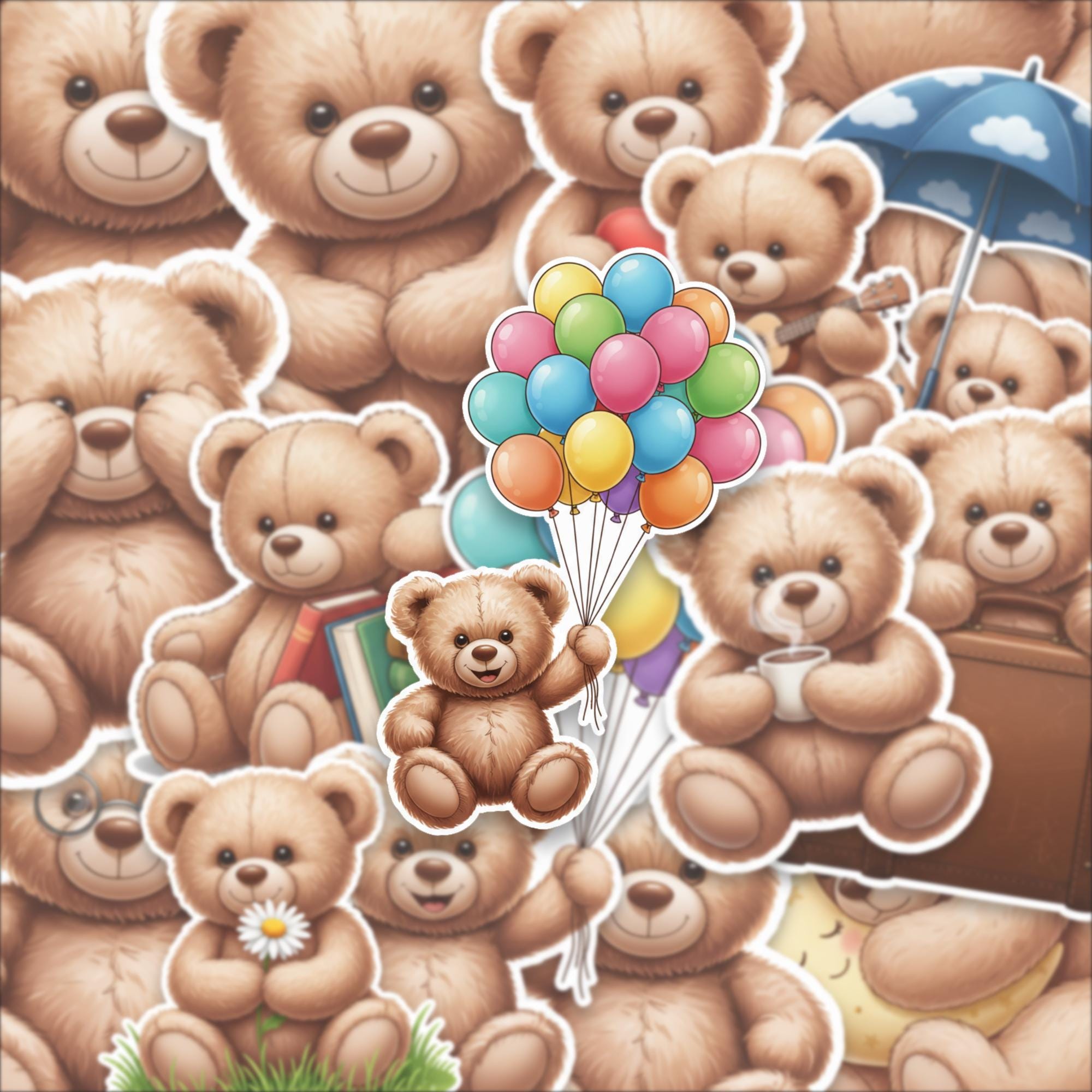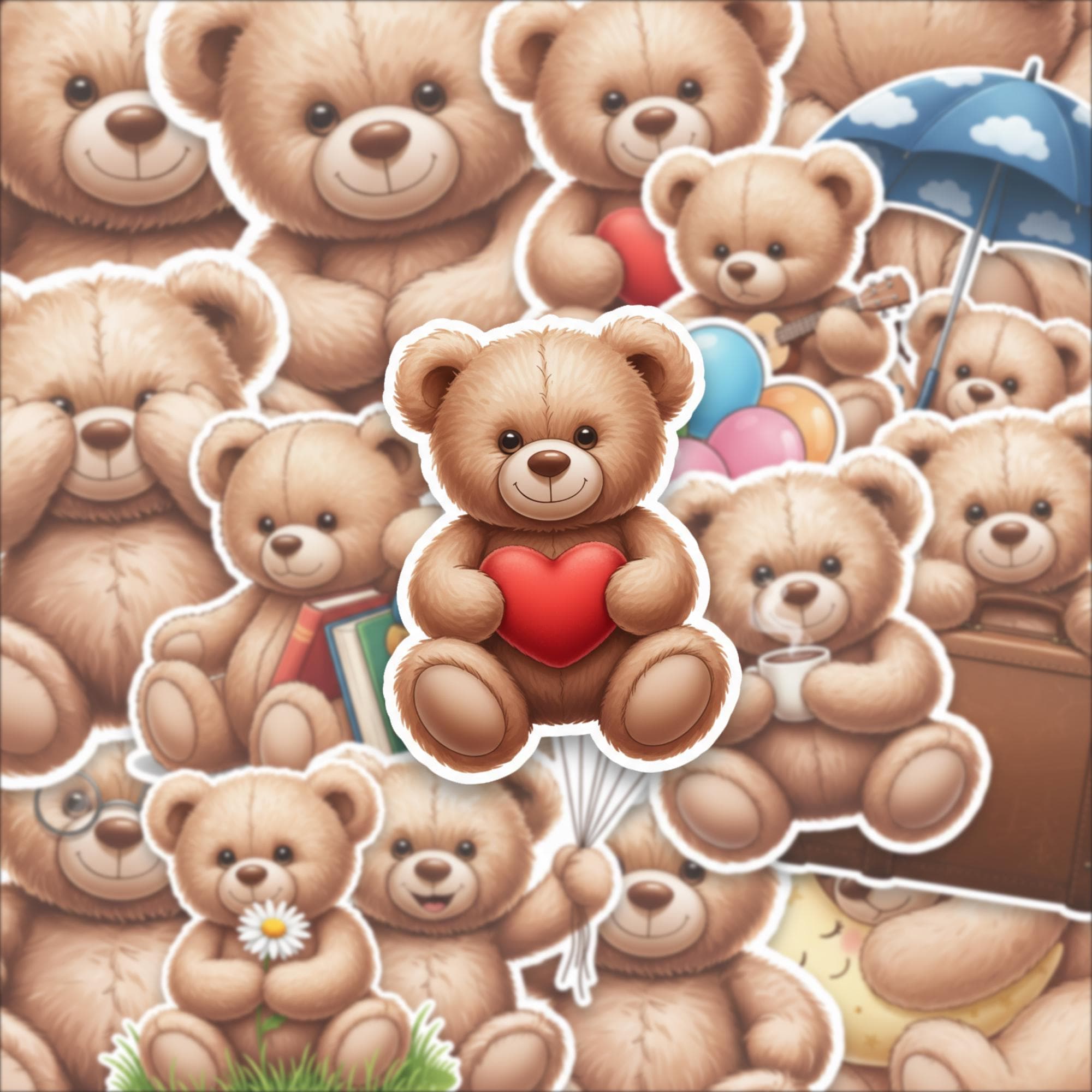 Designed as a 15-piece glossy sticker set, these 2-inch teddy bear stickers feature adorable scenes—from cozy reading bears to playful balloon moments—making them perfect for decorating laptops, journals, scrapbooks, or gifting to someone special. The high-quality glossy finish enhances color vibrancy while giving each piece a smooth, premium feel.