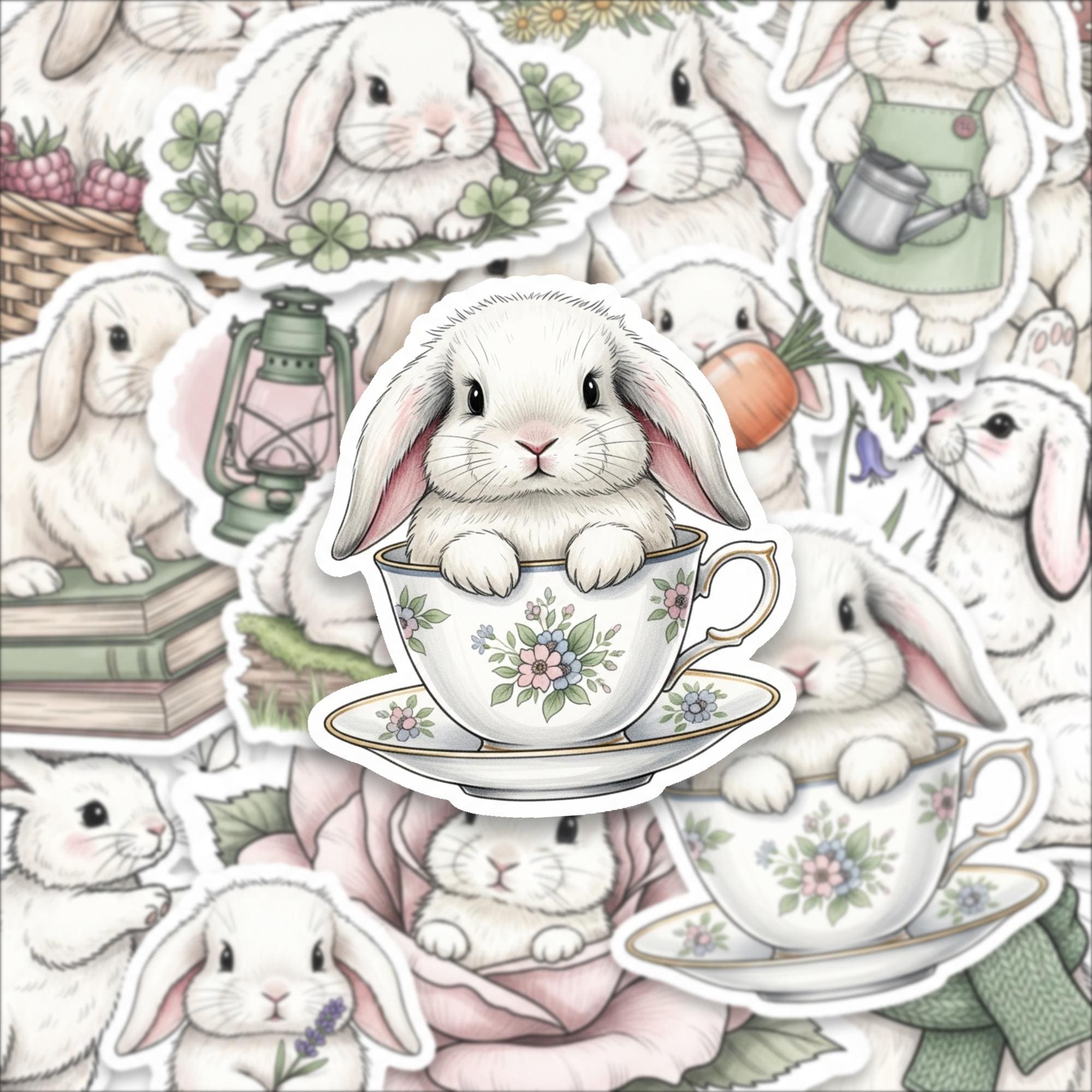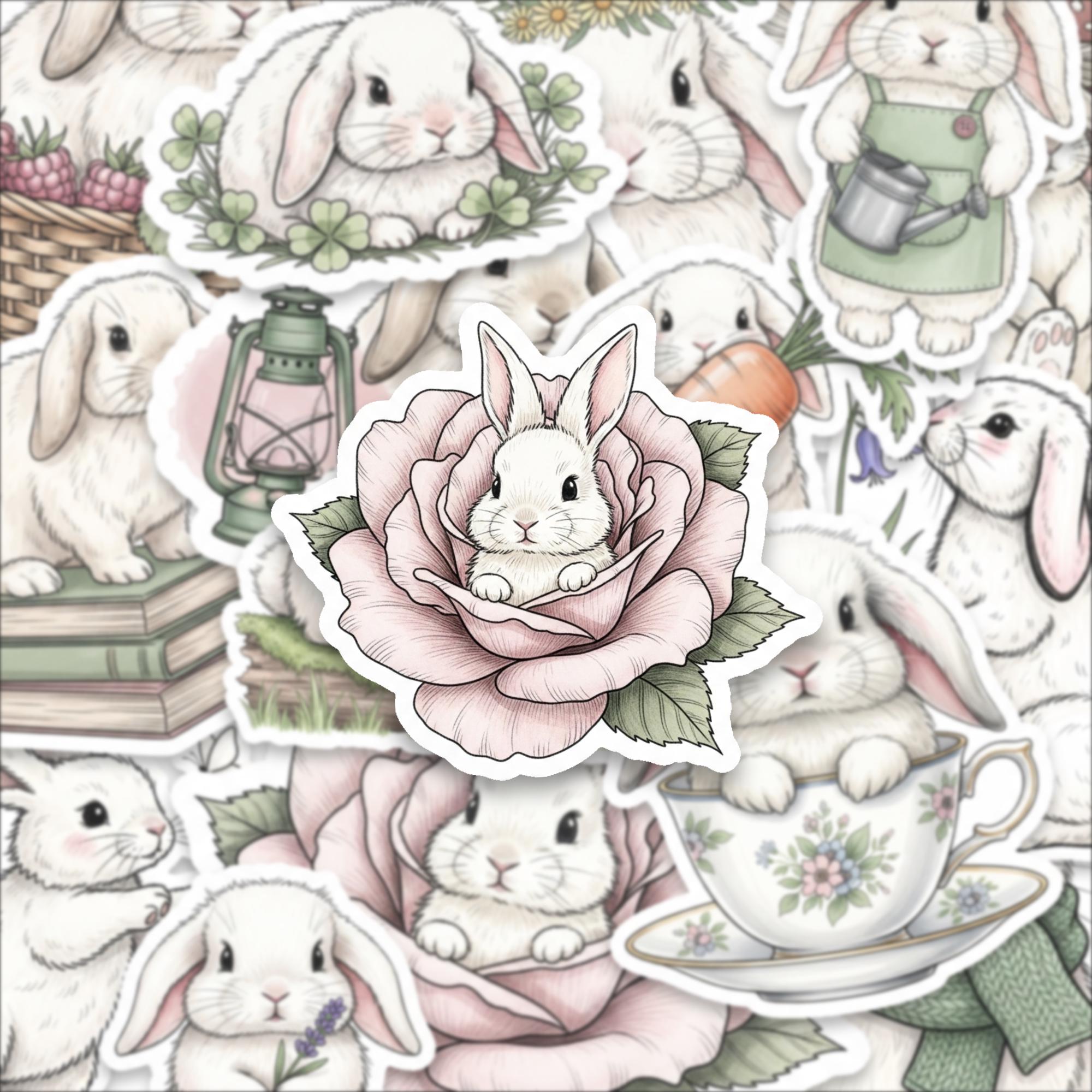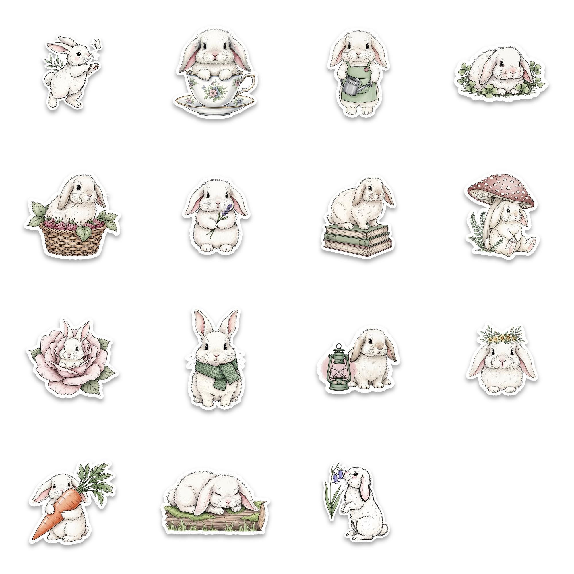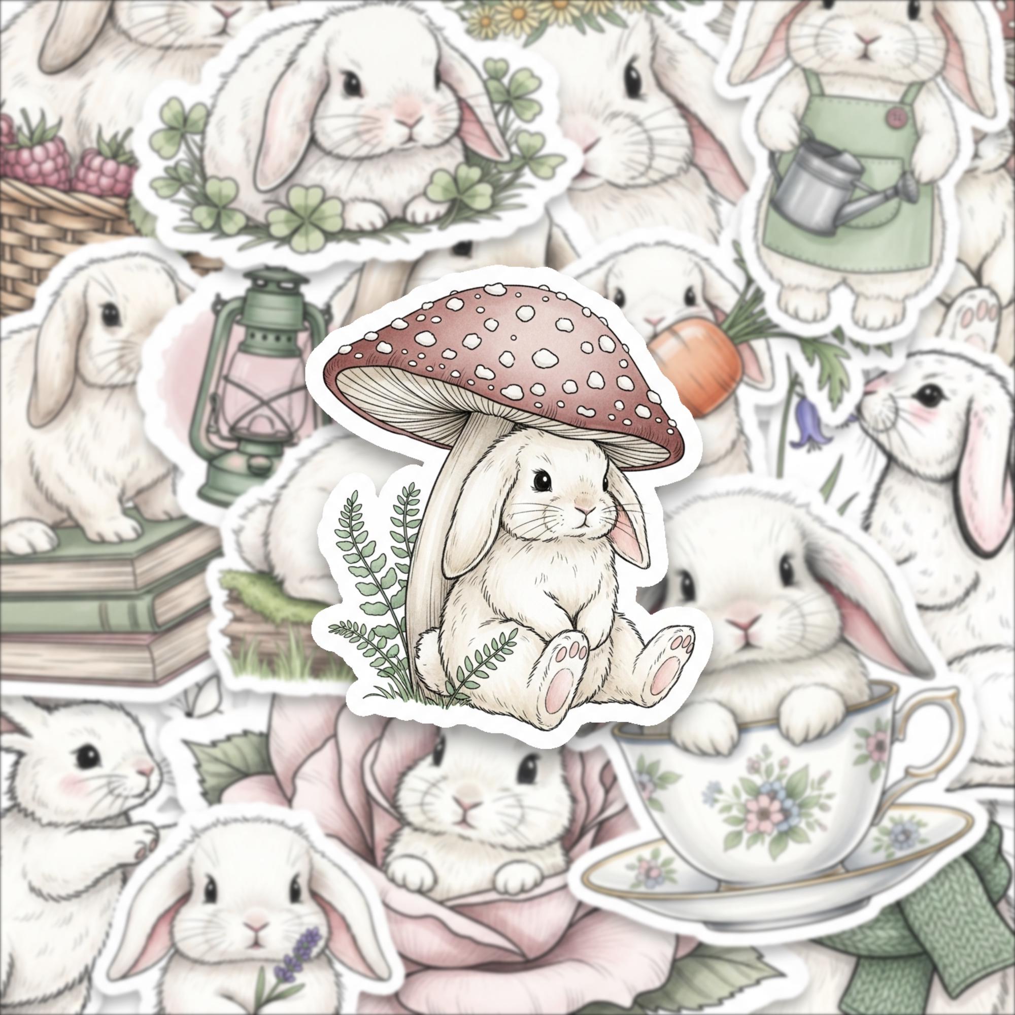 Designed for shoppers who love gentle woodland style, these rabbit decals capture a calm, whimsical mood with floral, mushroom, teacup, bookish, and garden-inspired scenes. The mix feels thoughtful and premium, so every sticker adds a delicate artistic touch whether you are decorating your planner, curating a spring aesthetic, or building a cute animal sticker collection.