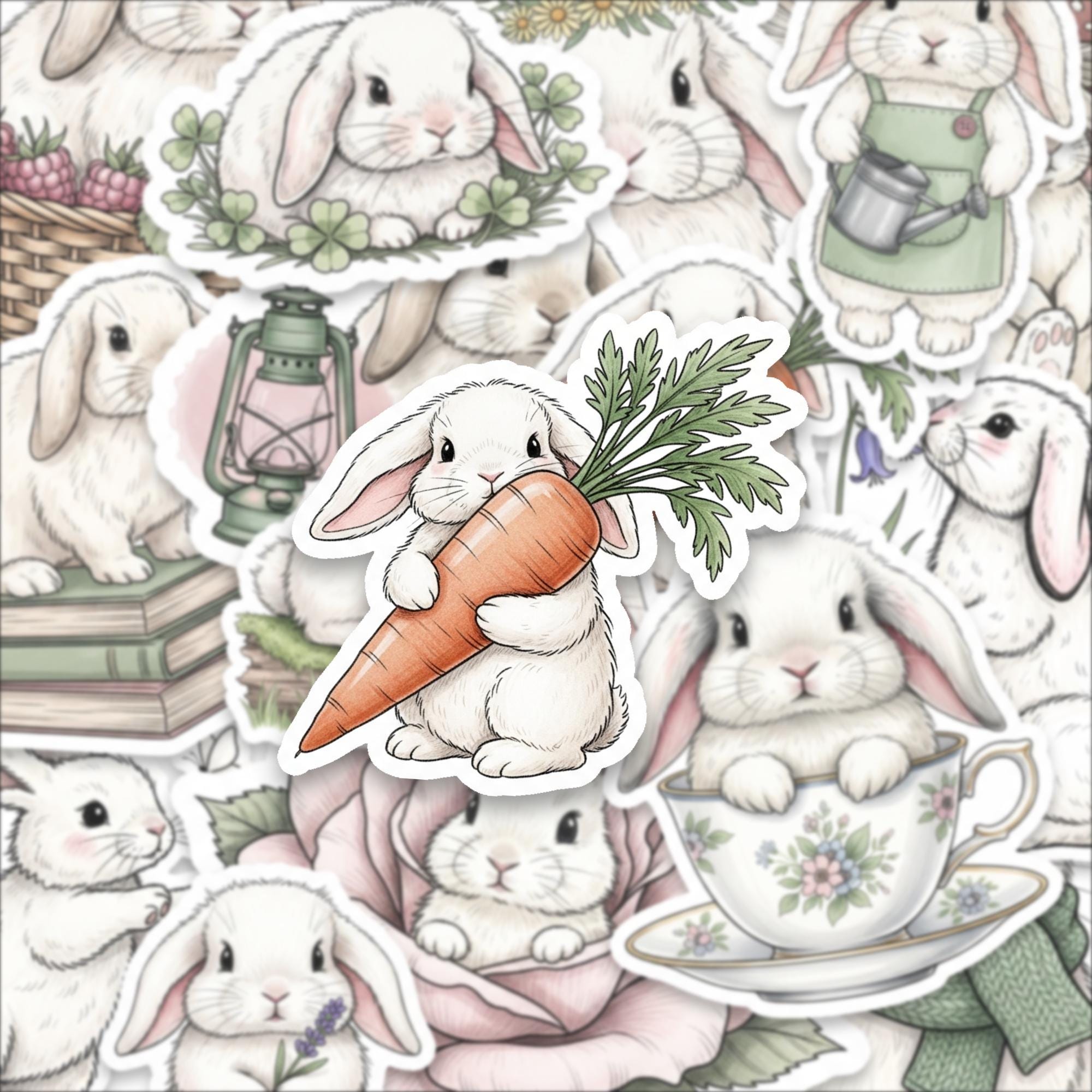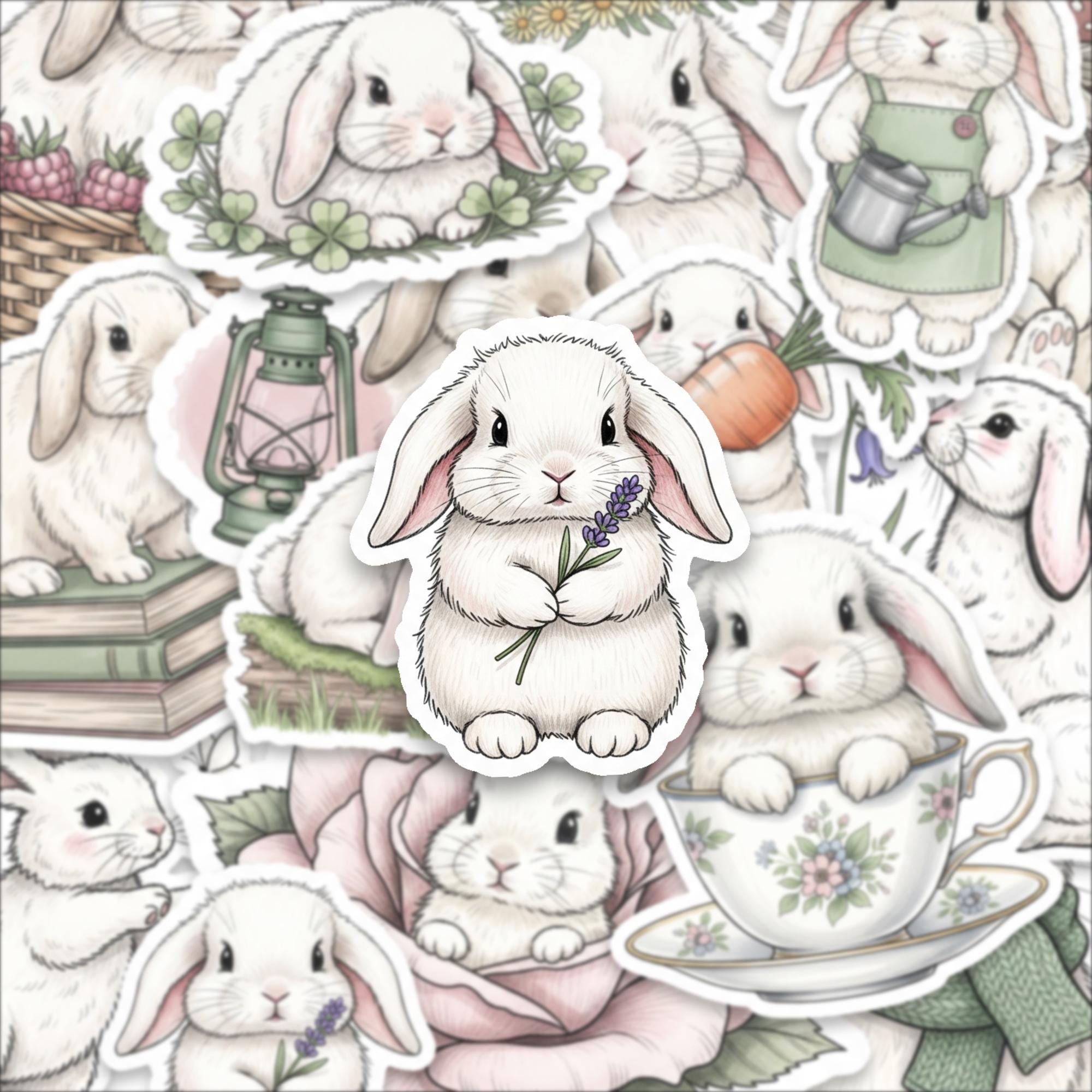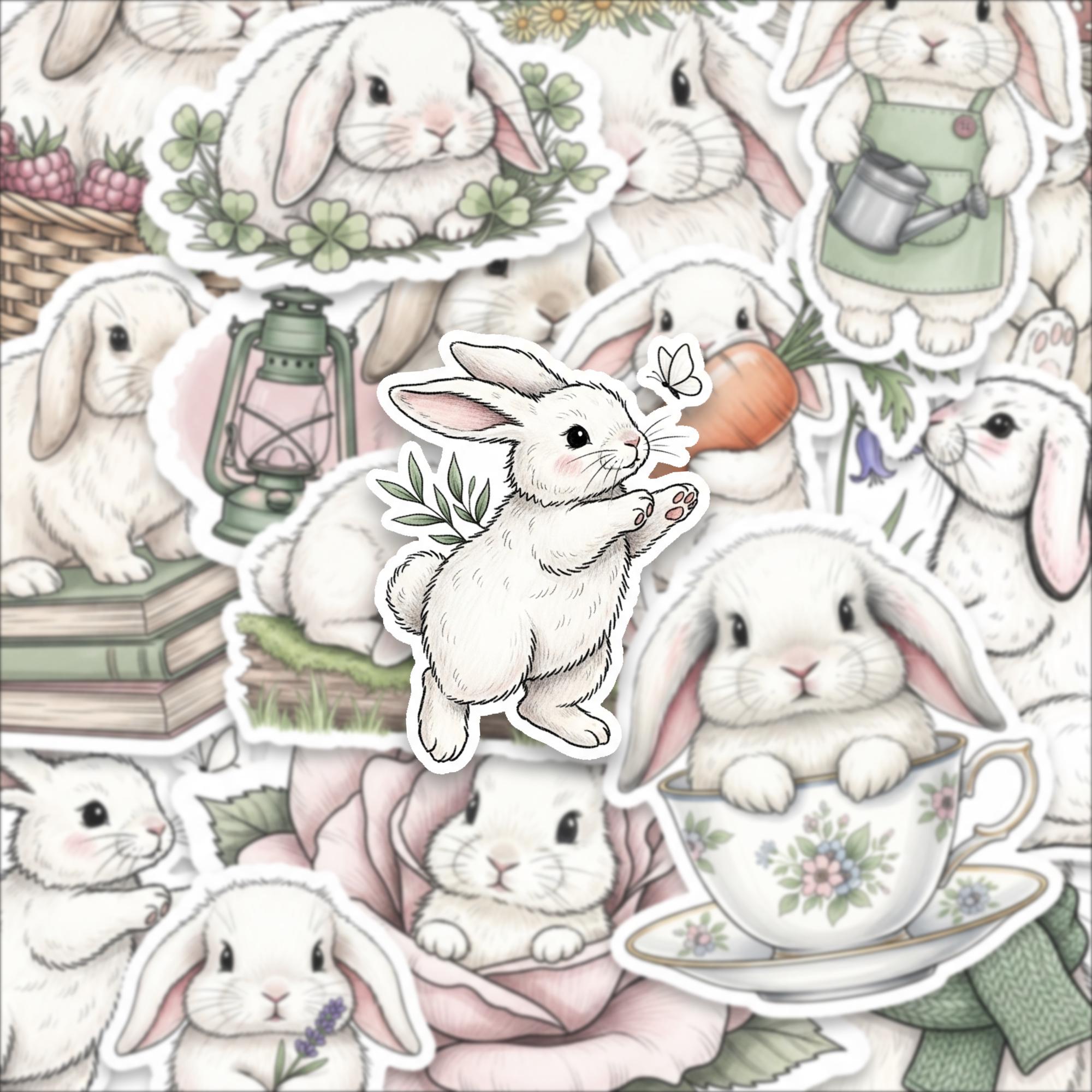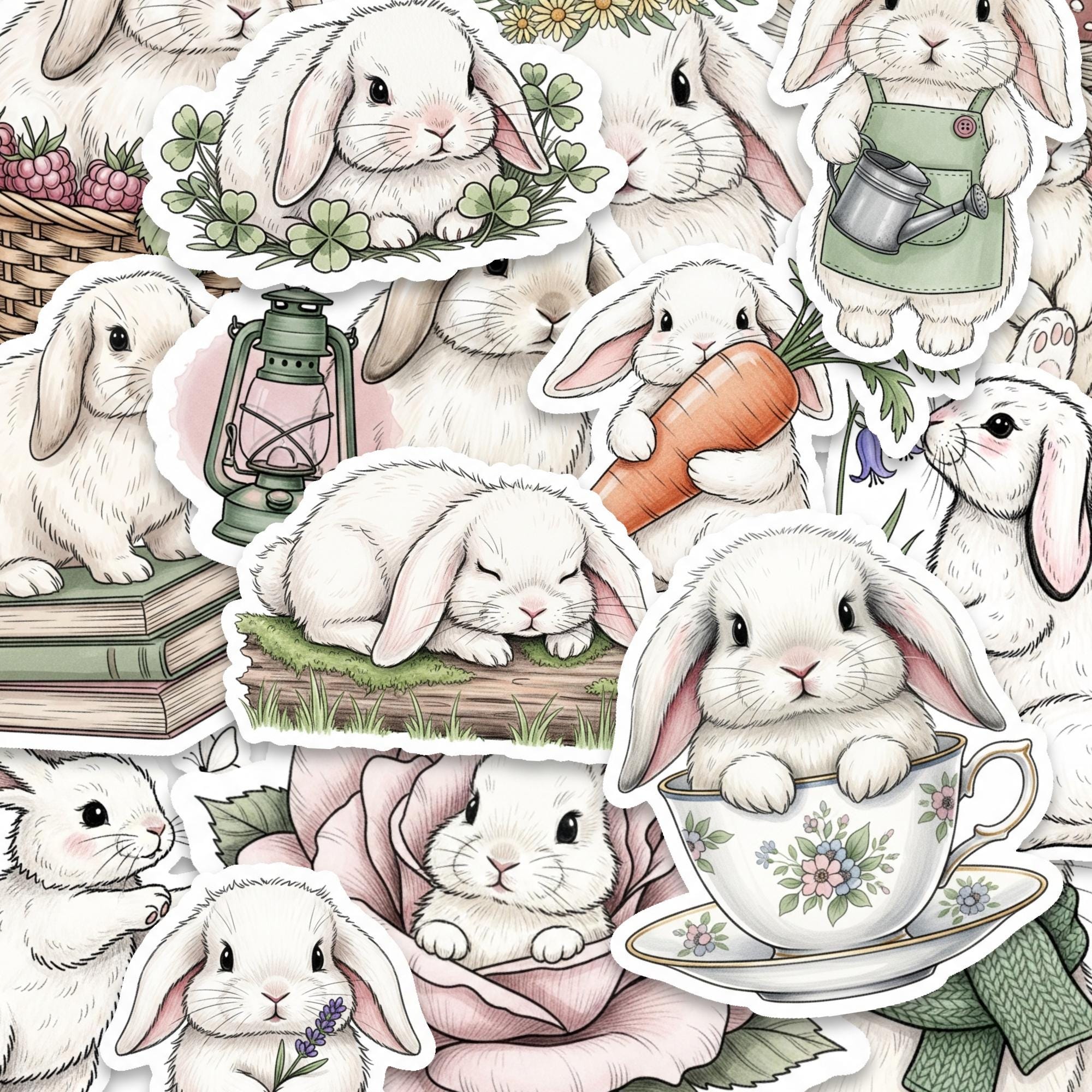 Designed for shoppers who love gentle woodland style, these rabbit decals capture a calm, whimsical mood with floral, mushroom, teacup, bookish, and garden-inspired scenes. The mix feels thoughtful and premium, so every sticker adds a delicate artistic touch whether you are decorating your planner, curating a spring aesthetic, or building a cute animal sticker collection.