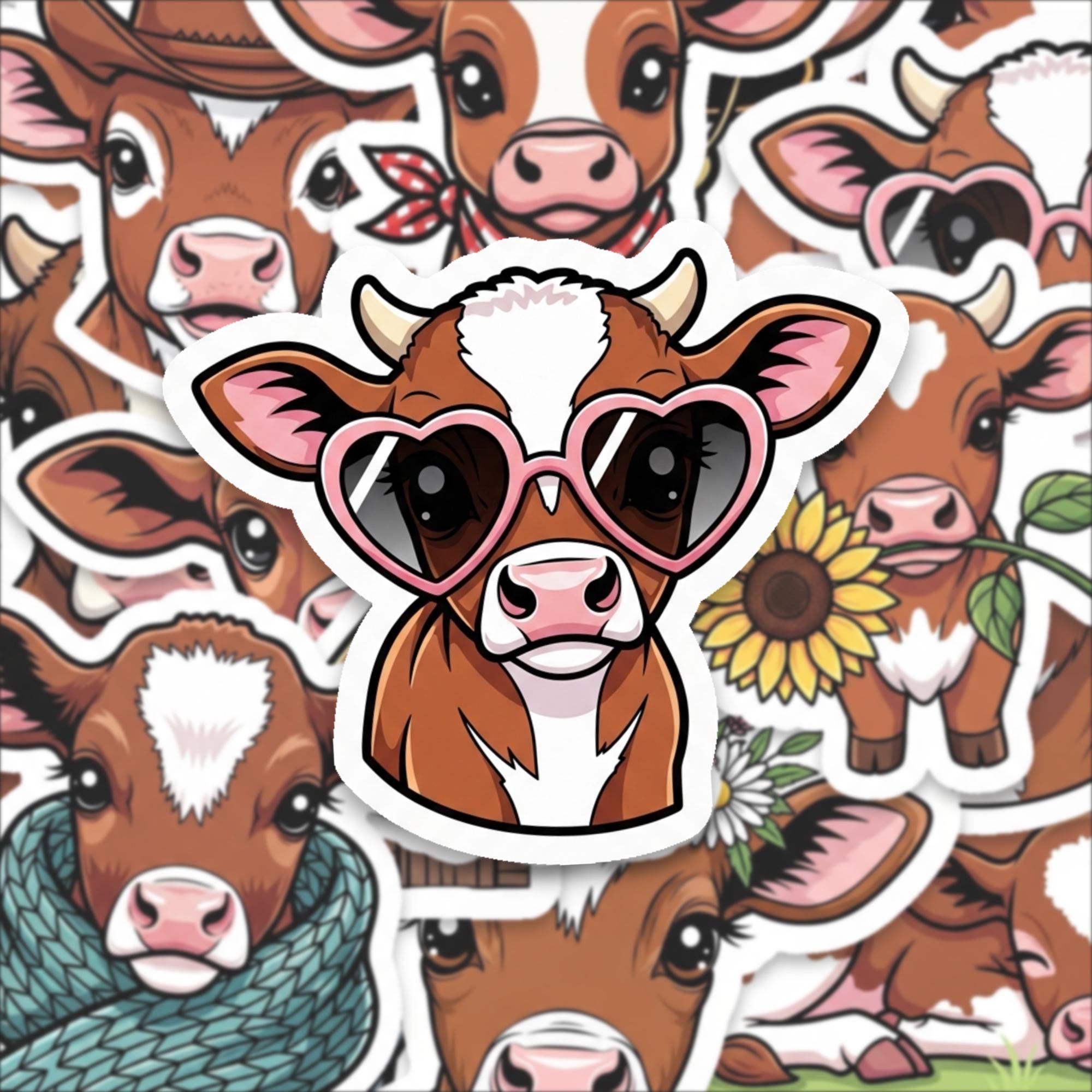 Bring personality to your everyday essentials with this cute cow sticker pack, designed to turn simple surfaces into joyful, expressive spaces. Each glossy vinyl decal captures adorable kawaii-style cows in playful outfits and charming moods—perfect for adding warmth, humor, and individuality to your world.