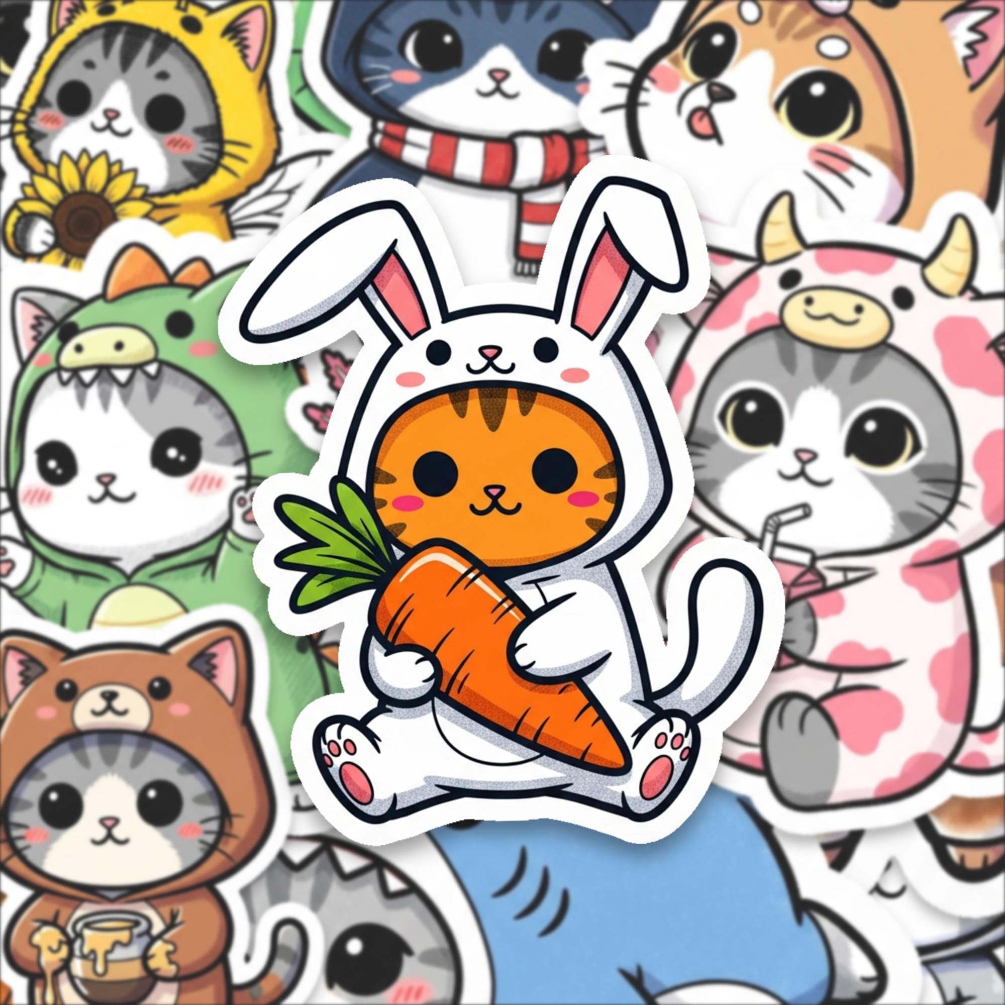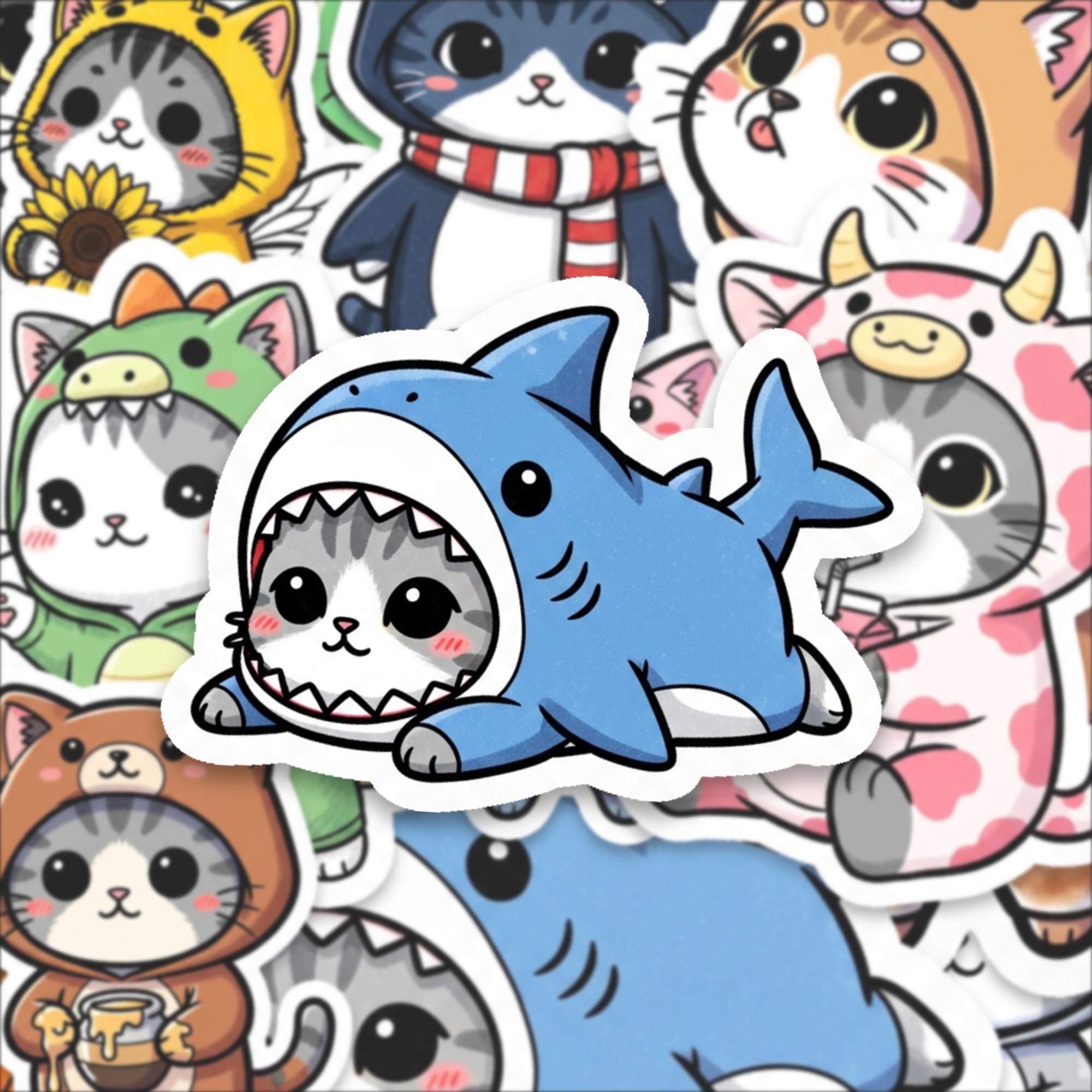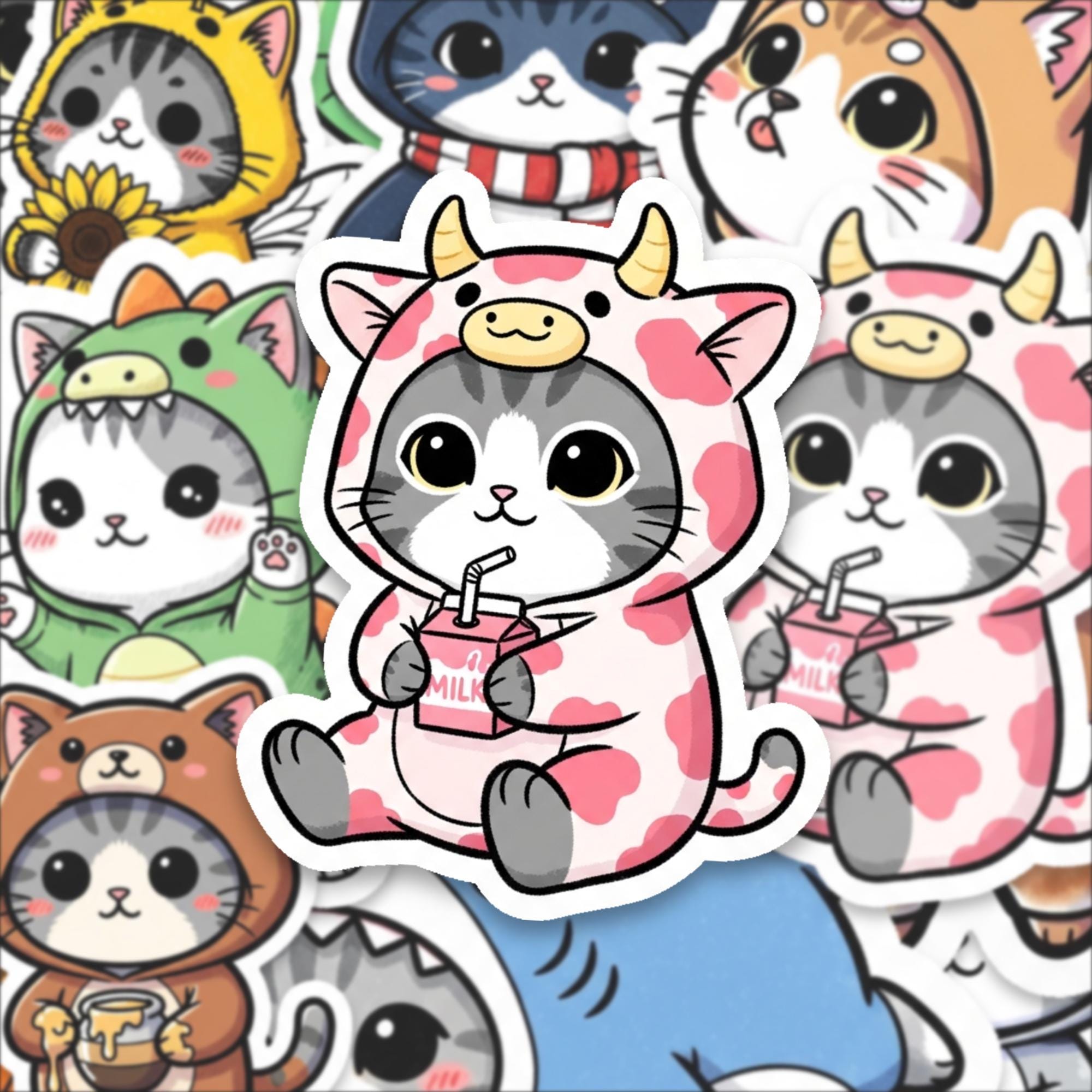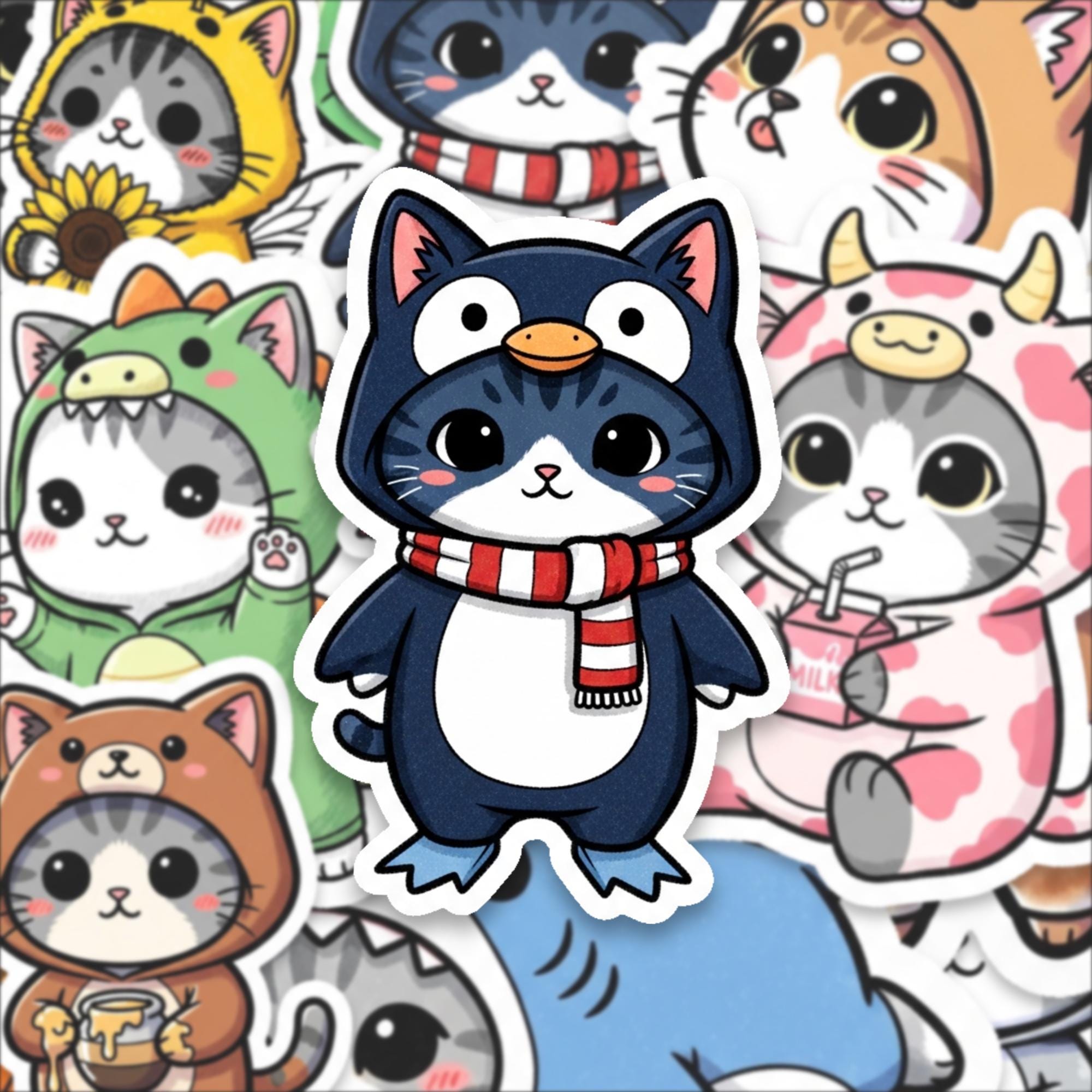 This cute cat costume sticker pack blends playful kawaii charm with glossy vinyl quality, turning everyday items into joyful expressions of personality. Each adorable cat dressed in animal outfits brings a sense of fun, warmth, and creativity to your space.