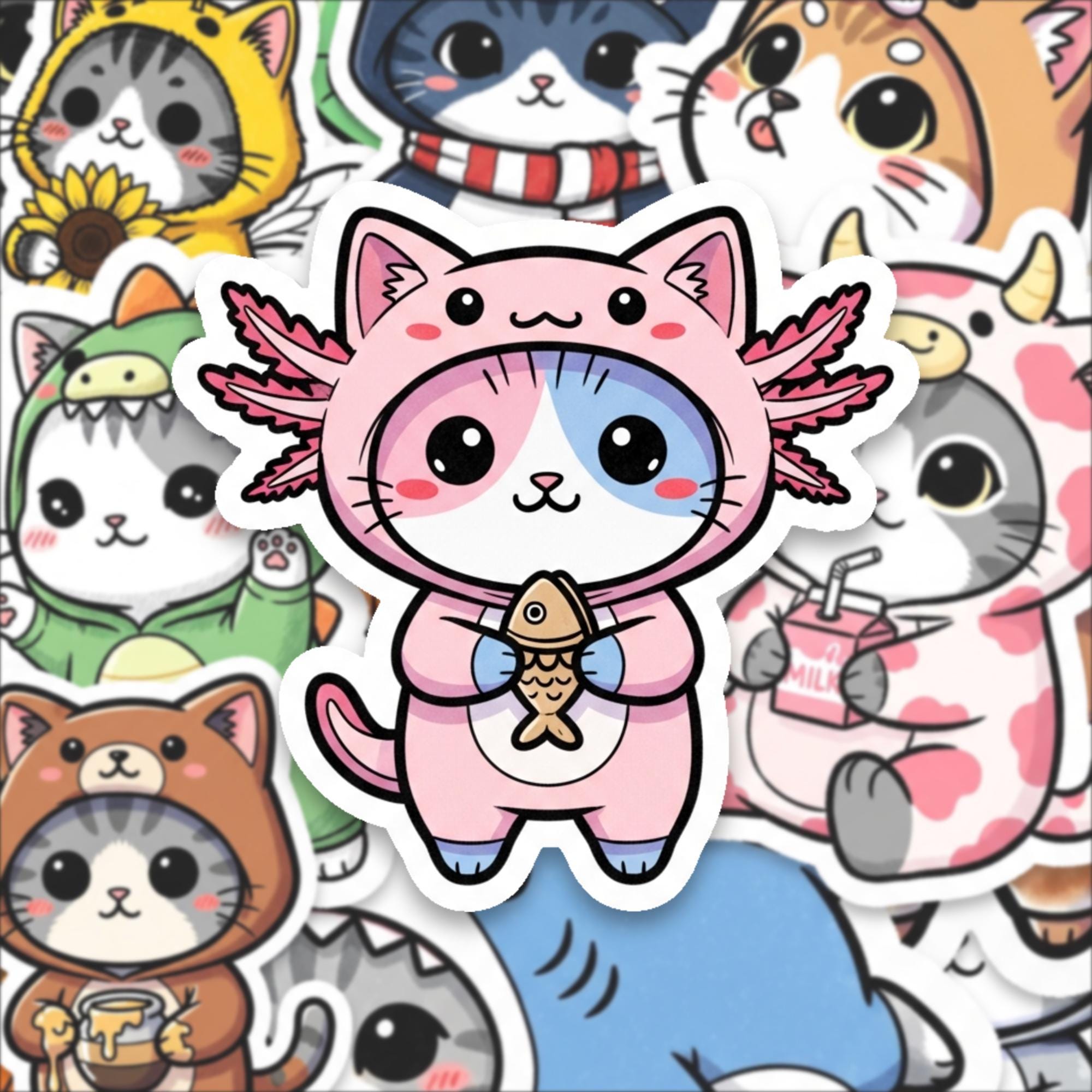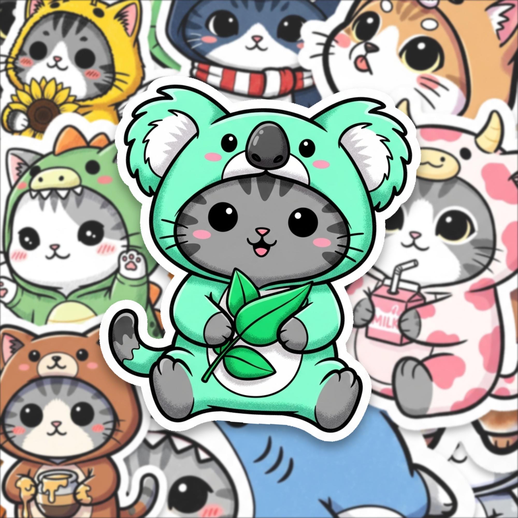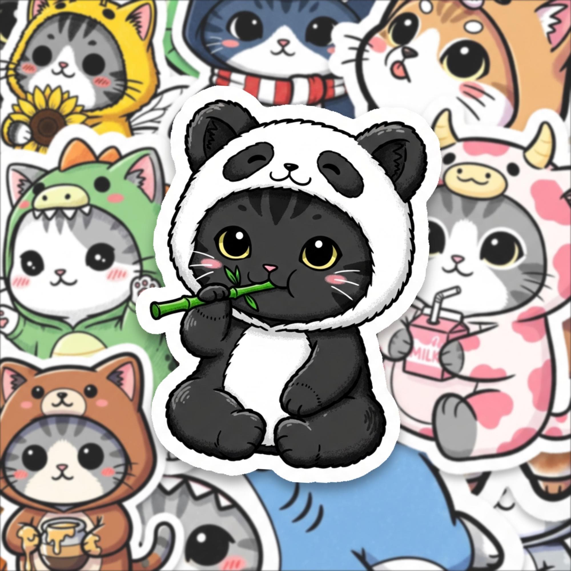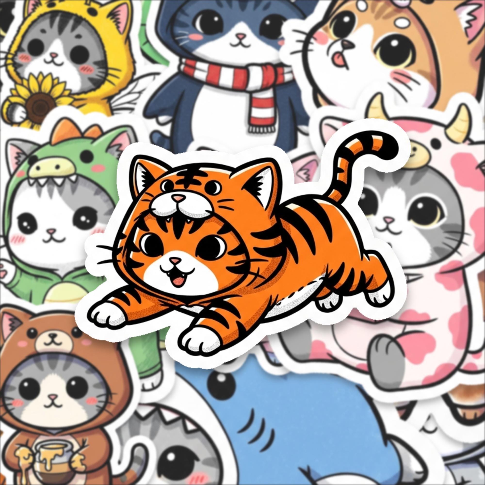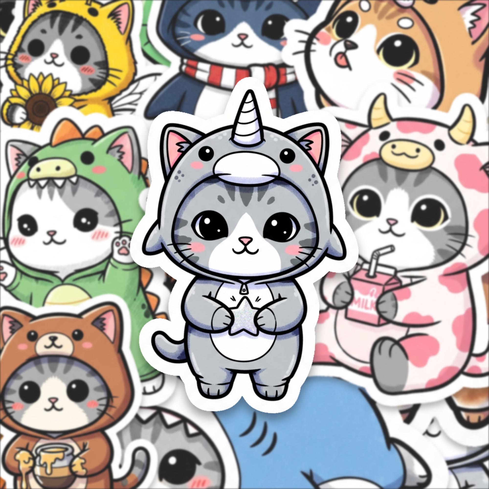 This cute cat costume sticker pack blends playful kawaii charm with glossy vinyl quality, turning everyday items into joyful expressions of personality. Each adorable cat dressed in animal outfits brings a sense of fun, warmth, and creativity to your space.