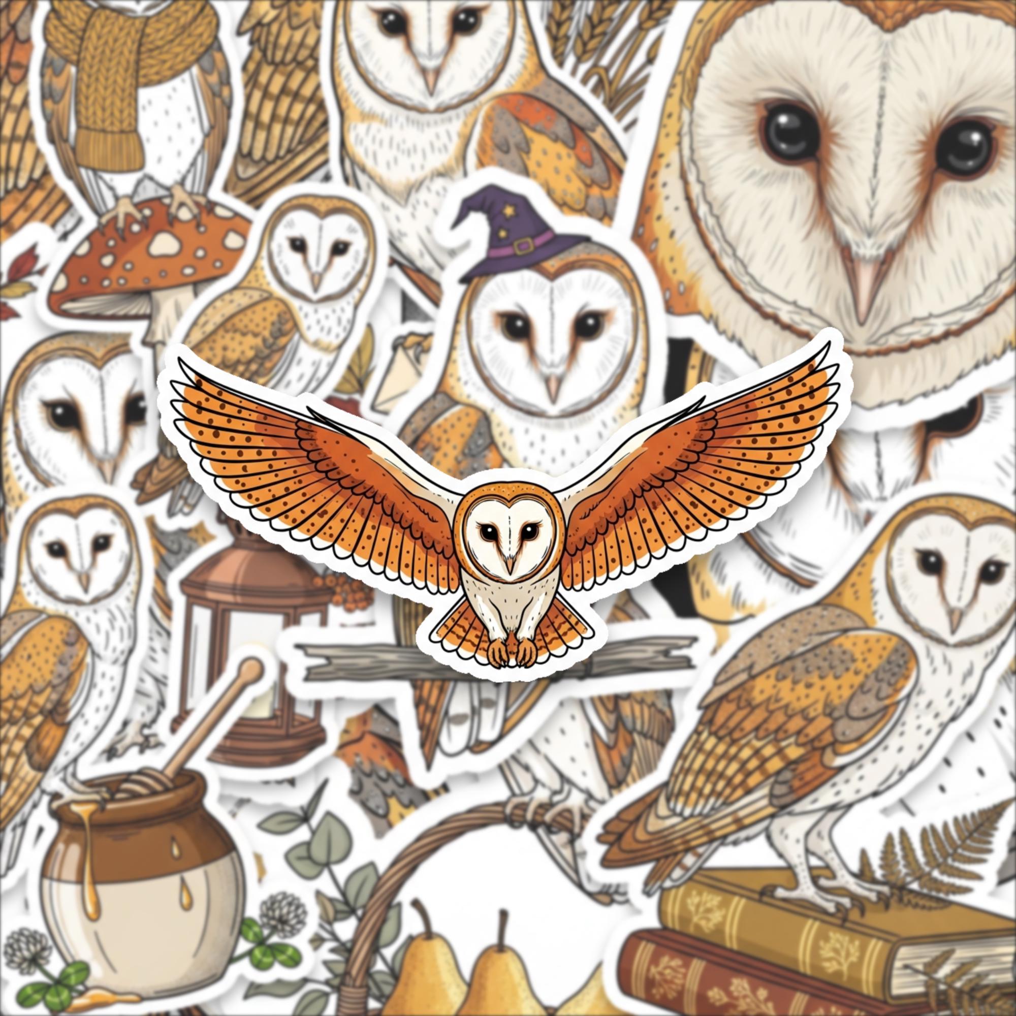 This barn owl sticker pack brings a warm, storybook charm to your everyday essentials, blending cozy cottagecore aesthetics with beautifully detailed wildlife illustrations. Each glossy vinyl sticker captures the gentle elegance of owls, turning simple surfaces into expressive, personality-filled spaces.