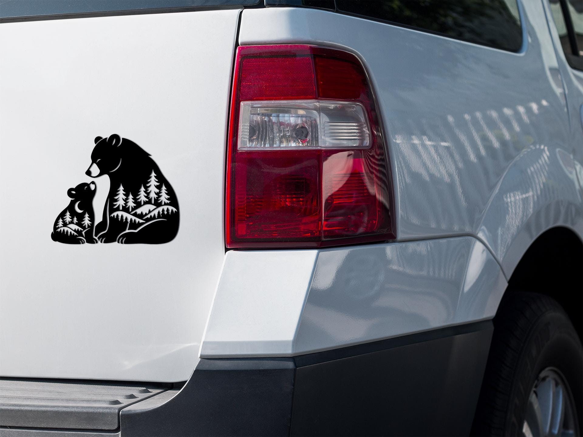 Bring the quiet strength of nature into your everyday life with this bear family forest vinyl decal, designed to symbolize protection, connection, and the beauty of the wild. The intricate silhouette of a mother and cub filled with pine forest detail transforms any surface into a meaningful story of love and wilderness.